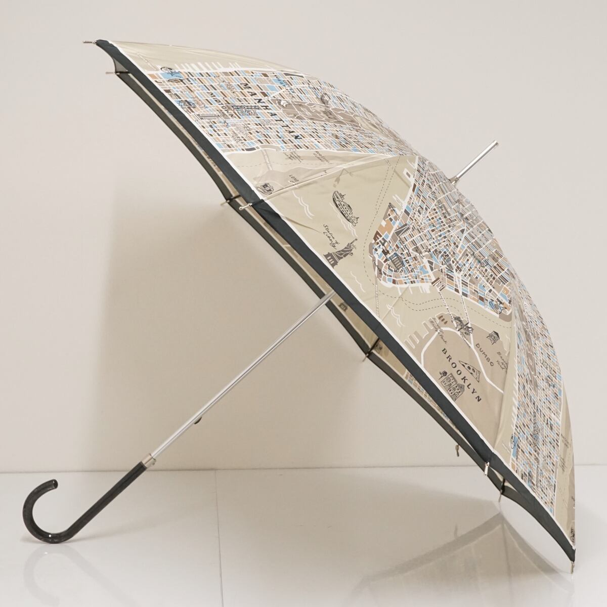 傘 kate spade NEW YORK ケイトスペード USED美品 ベージュ ニューヨークマップ グラスファイバーフレーム 60cm S1882