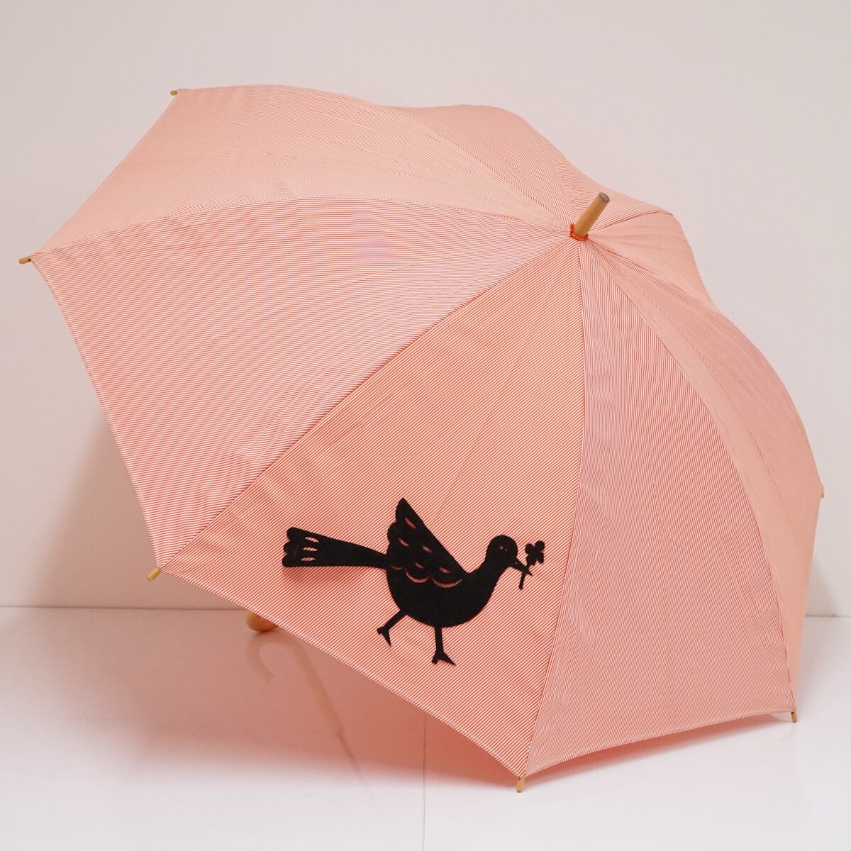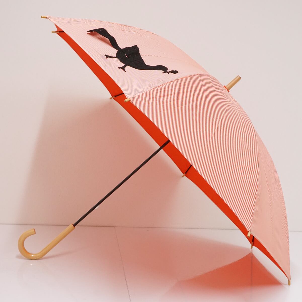 傘 尻尾傘店 USED美品 オレンジ ストライプ 動物 鳥 かわいい 個性的 木製手元 グラス骨 軽量 60cm A1894