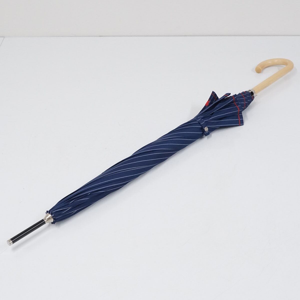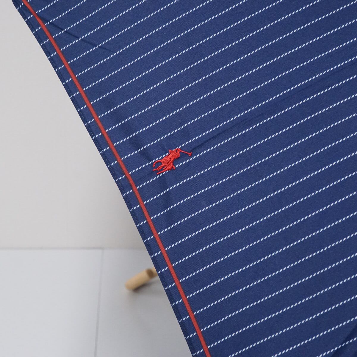傘 Polo Ralph Lauren ポロラルフローレン USED美品 ネイビー ストライプ ポロ ブランド 木製手元 60cm S2259