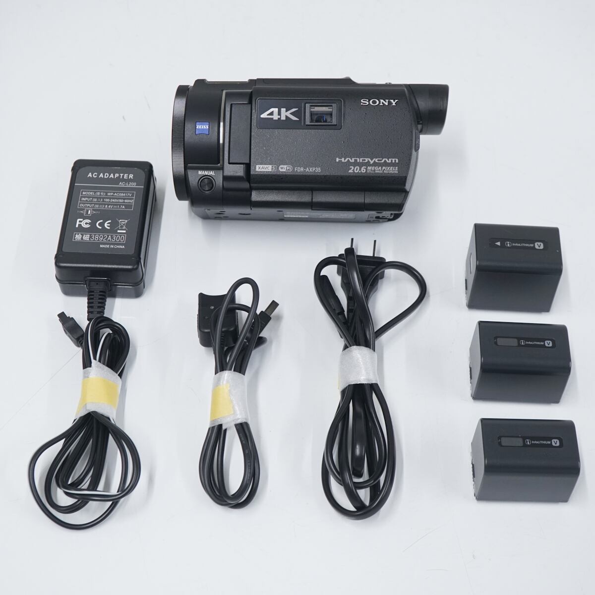 SONY ハンディカム デジタルビデオカメラ USED超美品 本体+バッテリー FDR-AXP35 ブラック 4K ZEISS 空間光学手ブレ補正 完動品 中古 X6006