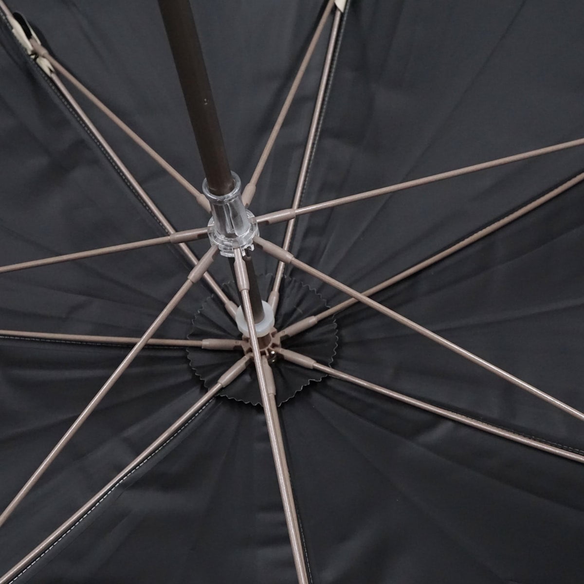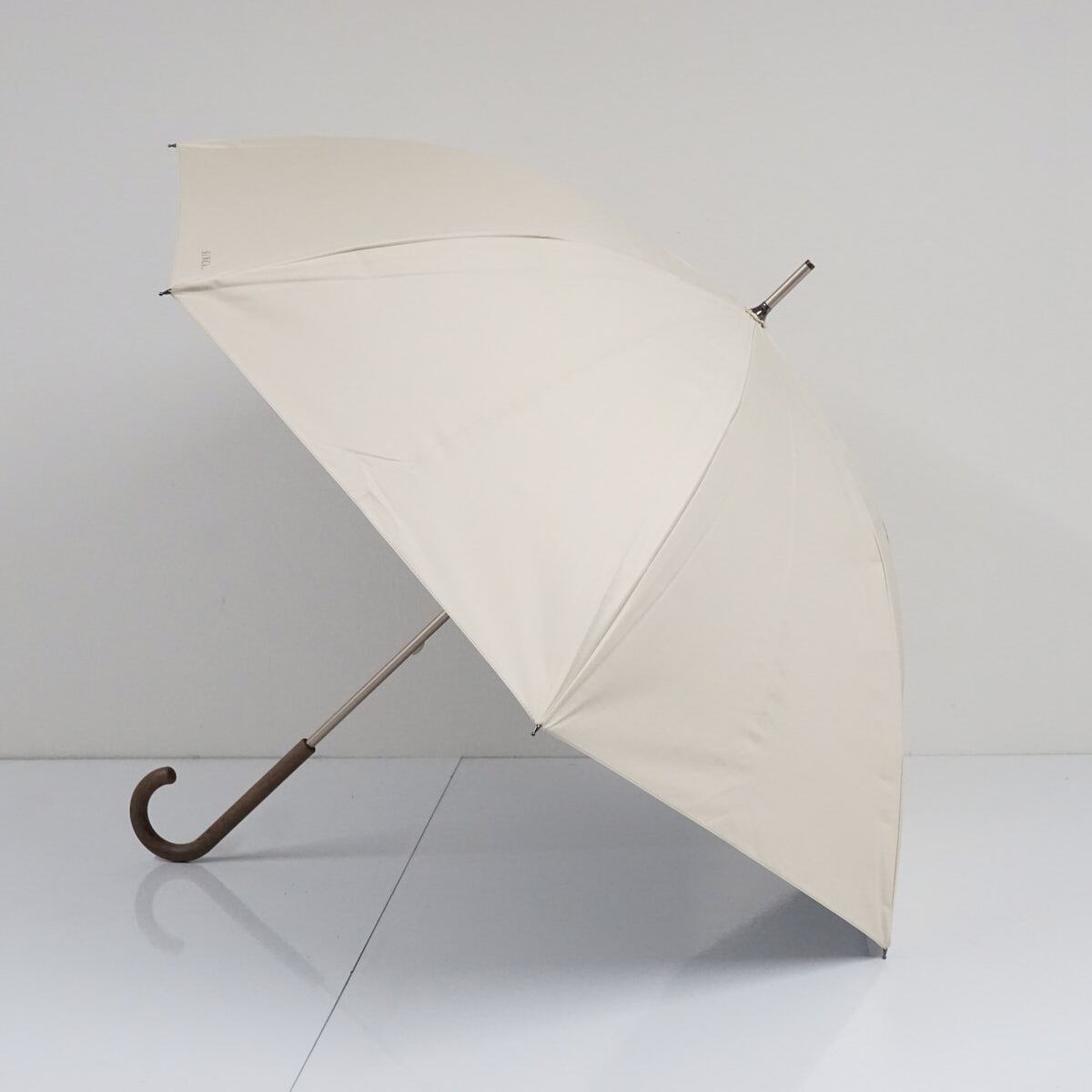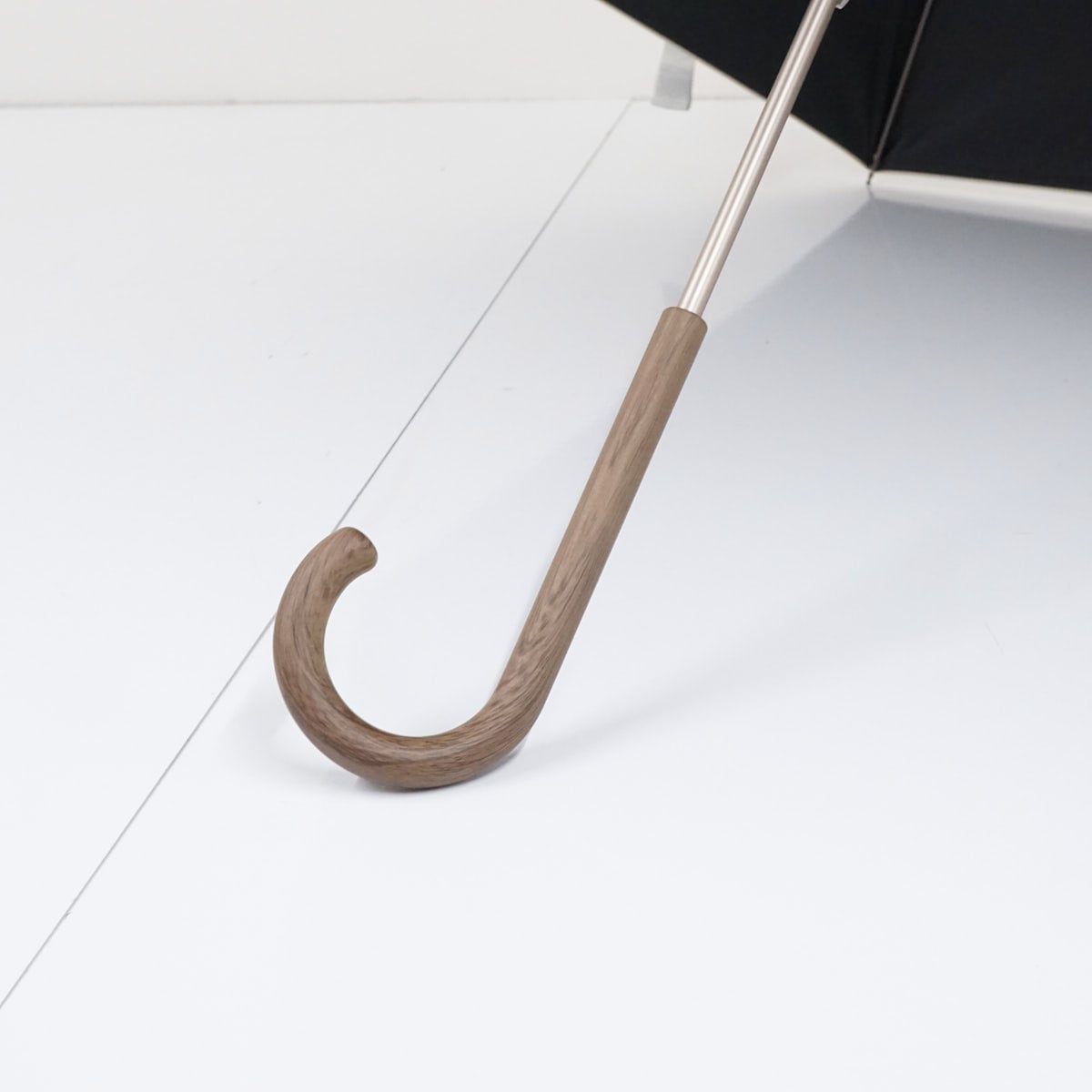 持つだけでコーディネートがワンランク上がるような、美しいカラーと木目調の手元が魅力の長傘。