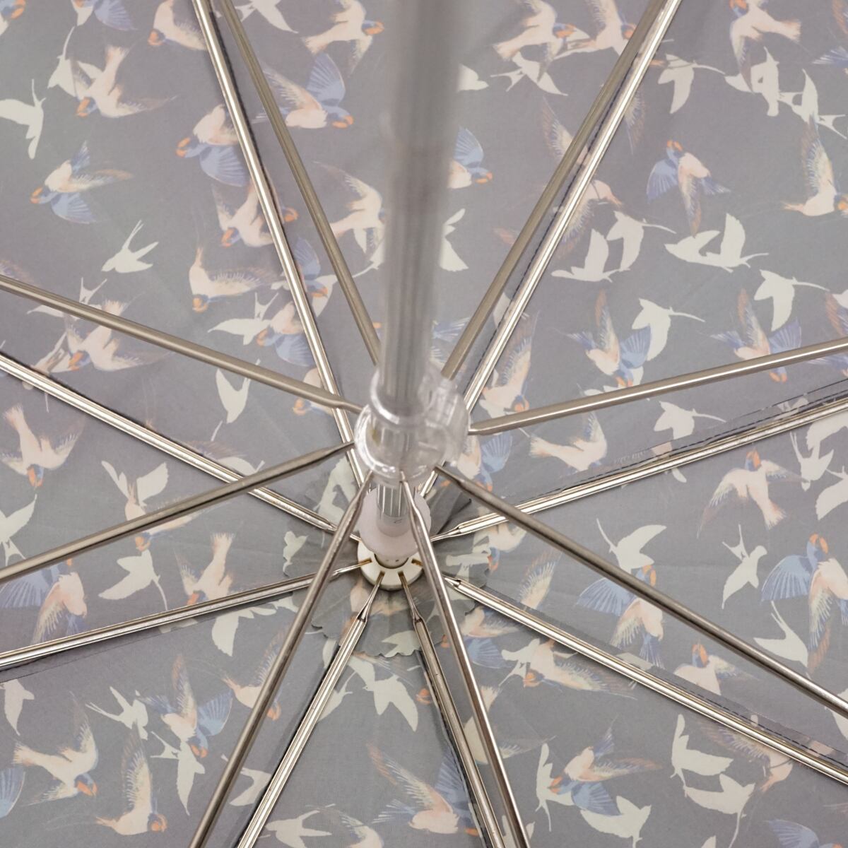 空を自由に羽ばたく可愛らしいツバメが全体に広がる、総柄の長傘です。