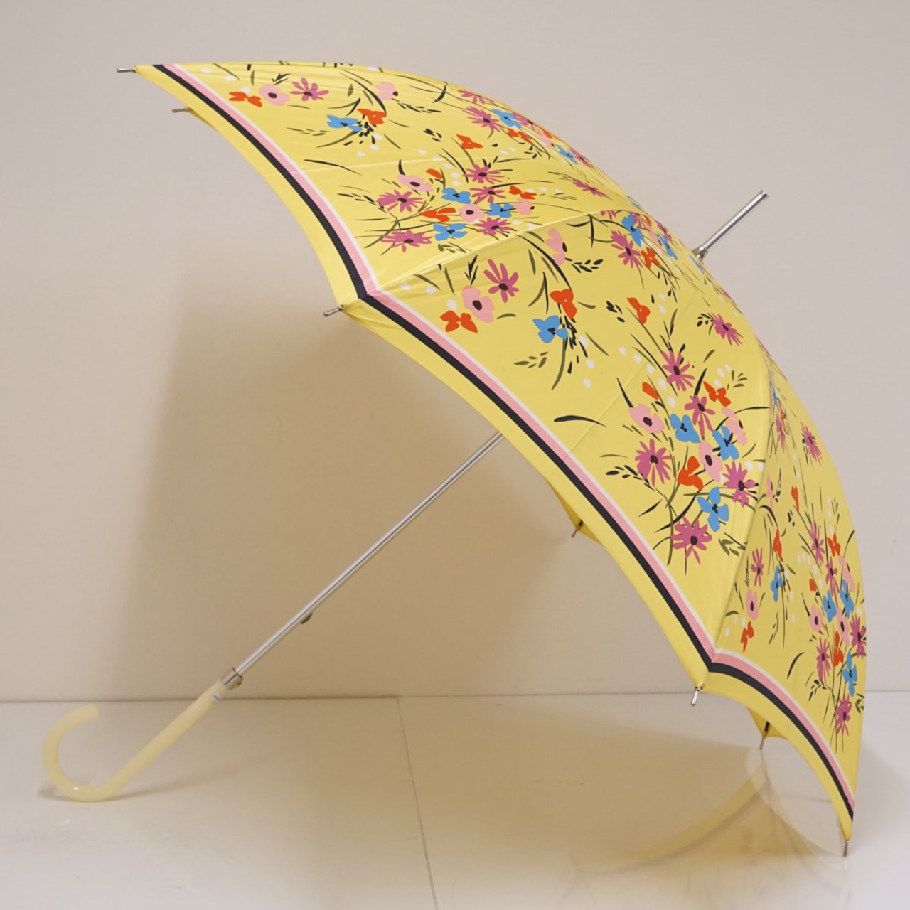 傘 Kate spade new york ケイトスペード USED美品 イエロー フラワープリント 花柄 ロゴ グラス骨 日本製 軽量 60cm S1915