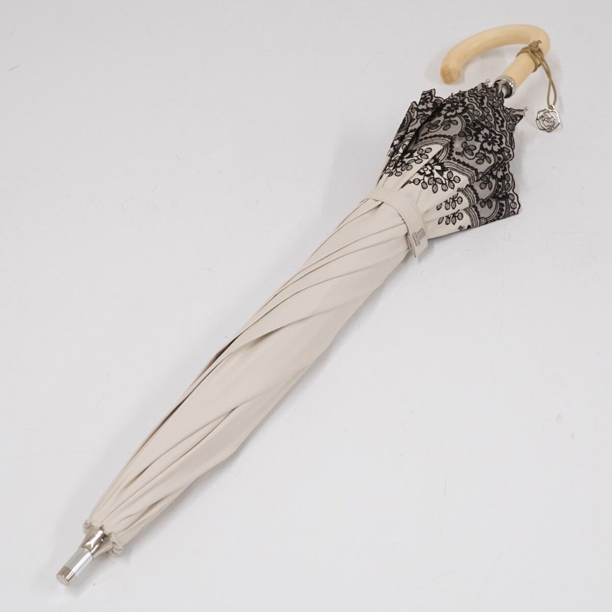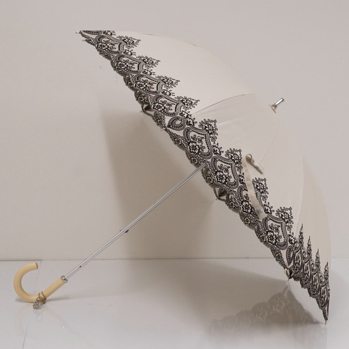 晴雨兼用日傘 LANVIN COLLECTION ランバンコレクション USED美品 ホワイトベージュ 刺繍 チャーム付 グラス骨 UV 50cm S1918