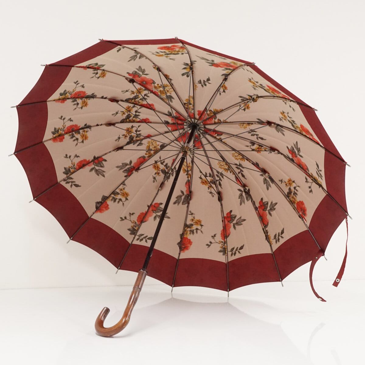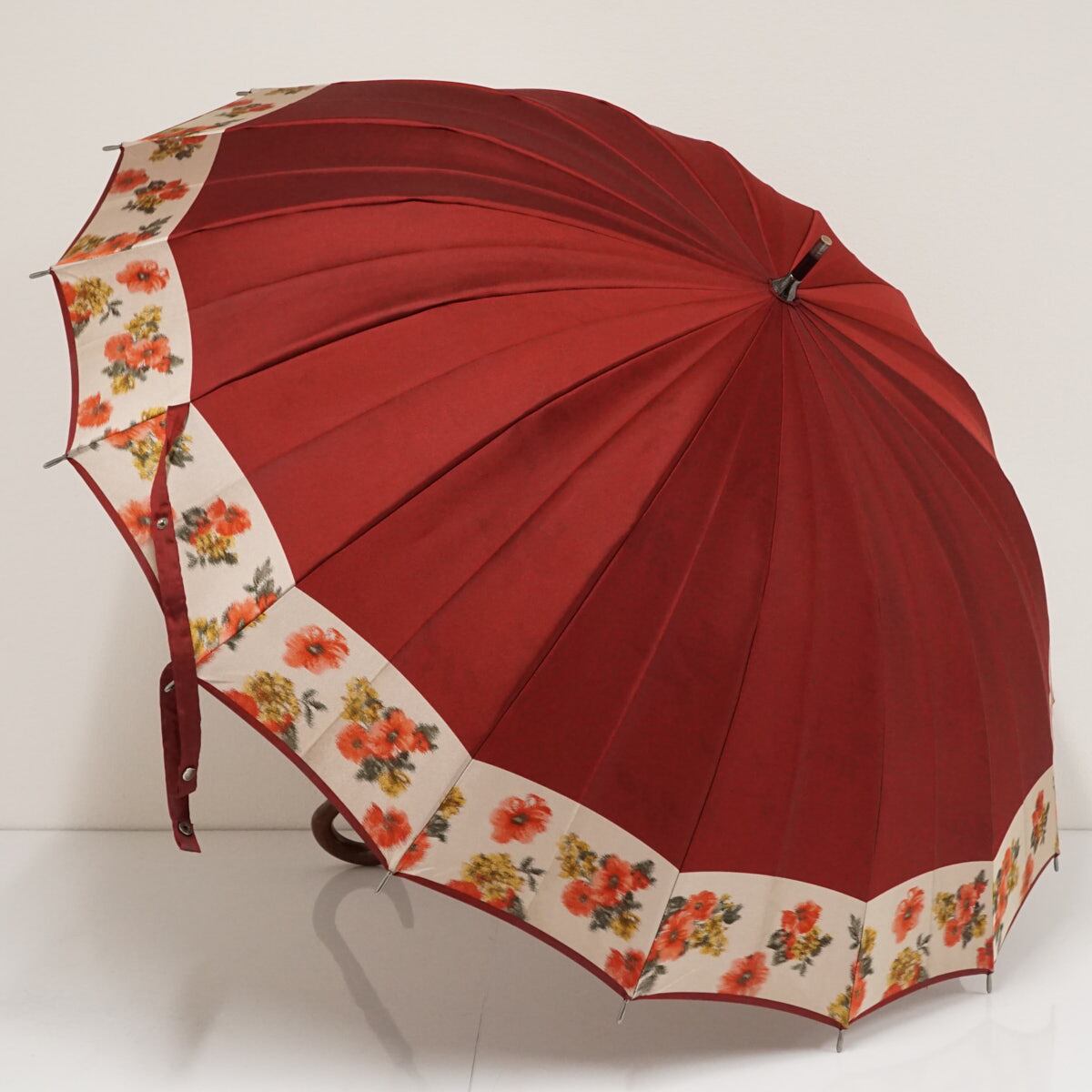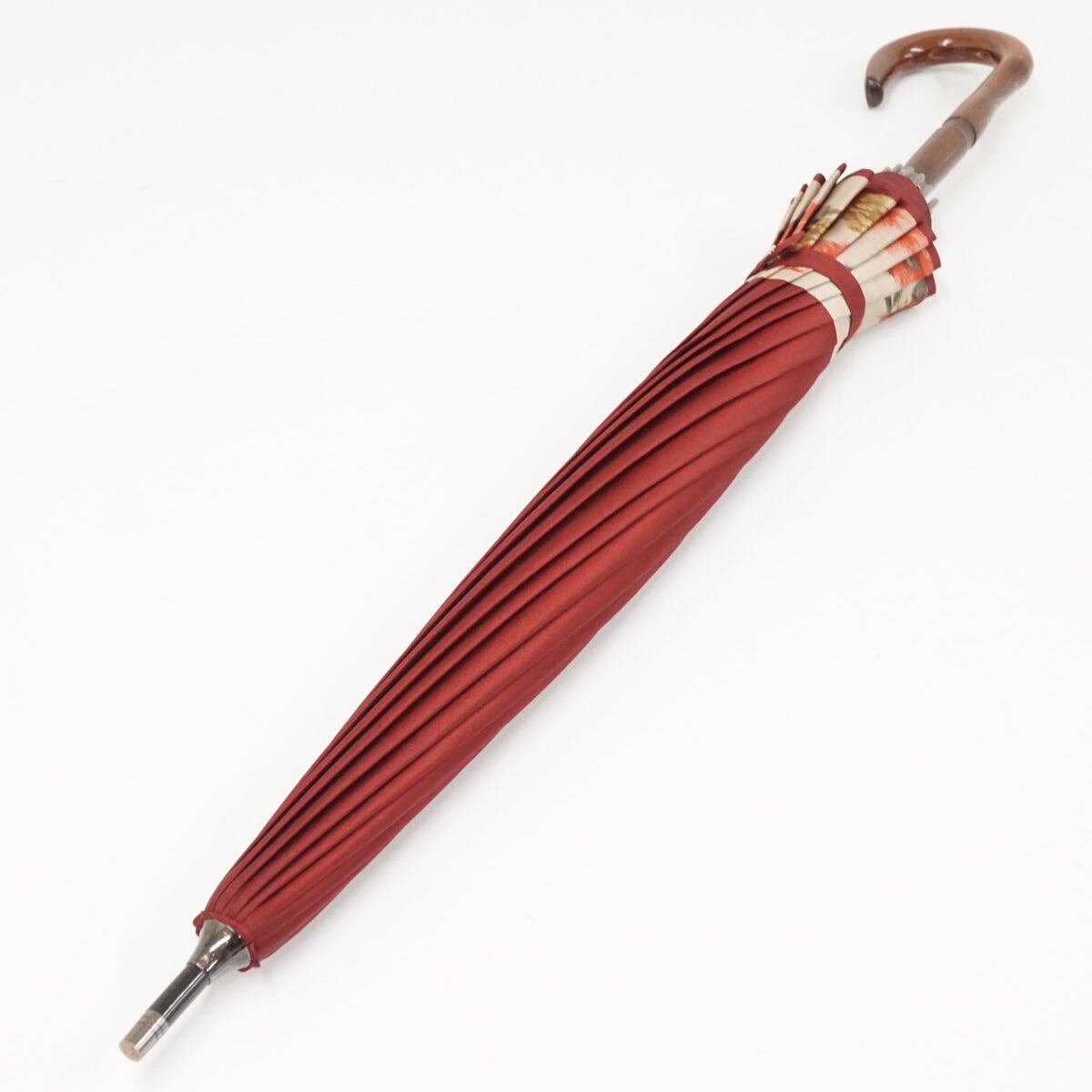 高級傘 絆傘処 ばんかところ USED美品 多間 16本骨 花柄 赤 ほぐし織り 甲州織 和風 60cm S1929
