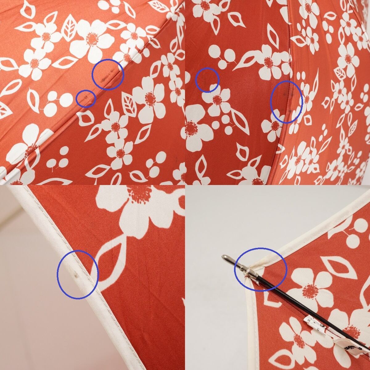 耐風傘 mila schon ミラショーン USED美品 フラワープリント 花柄 ロゴ ジャンプ グラス骨 レッド 風に強い ブランド 60cm A1932