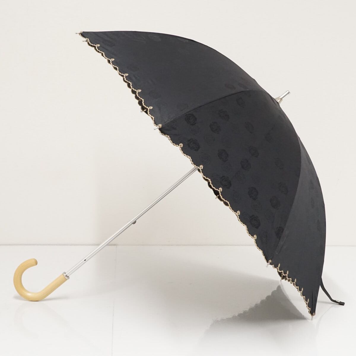 日傘 LANVIN COLLECTION ランバンコレクション USED美品 フラワー ブラック 黒 スカラップ刺繍 遮光 晴雨兼用 UV 47cm A1933