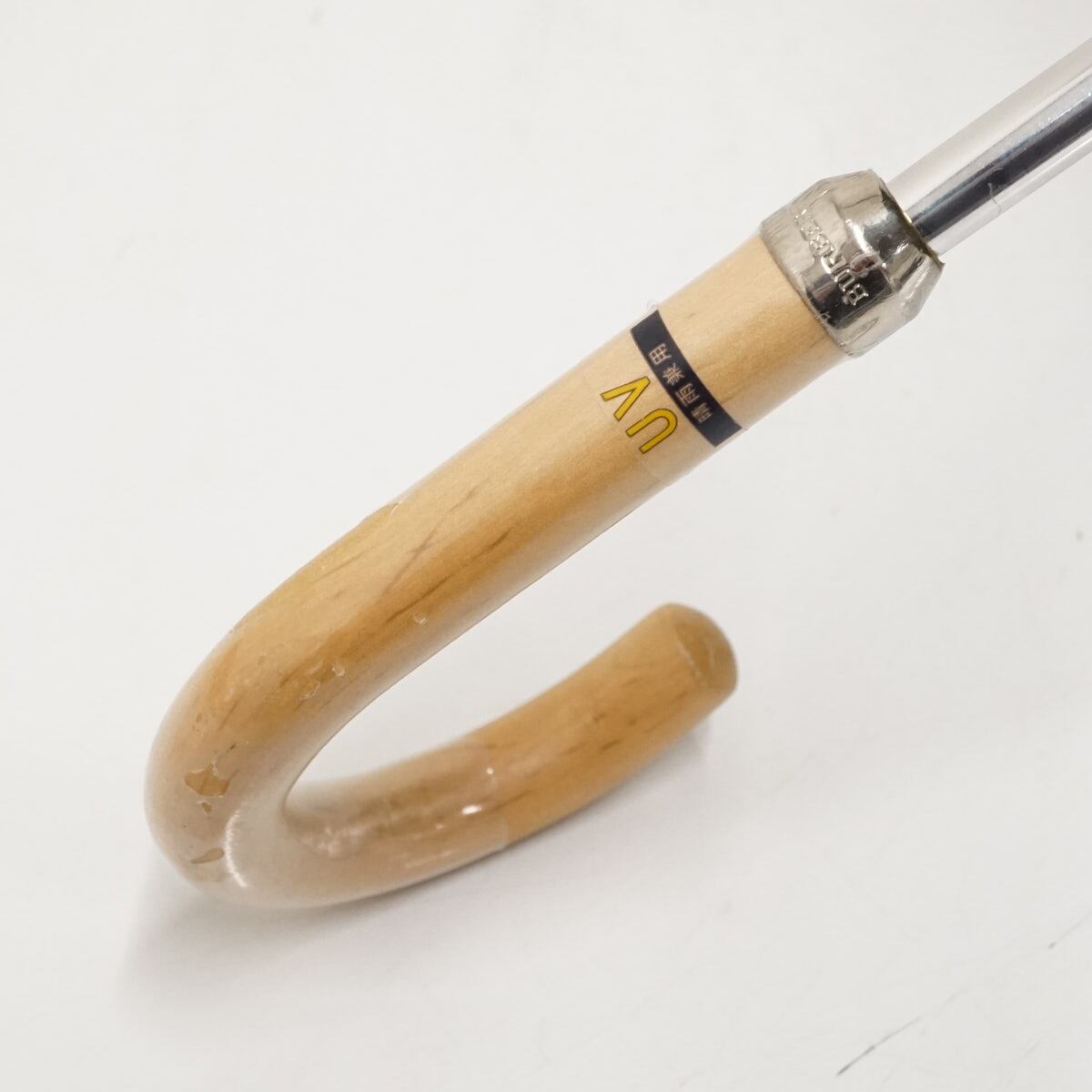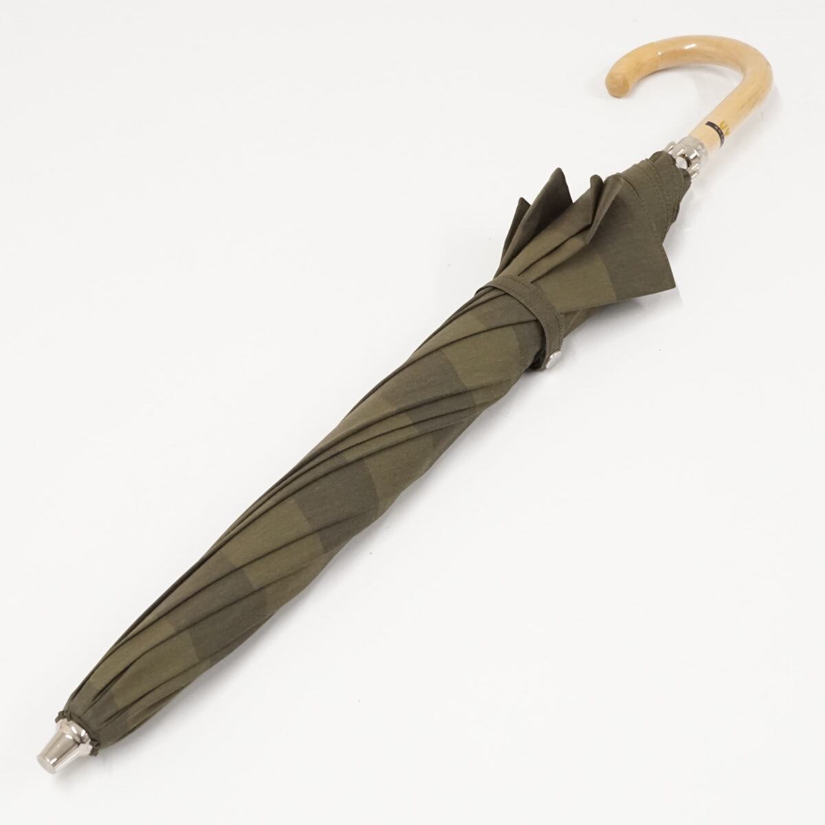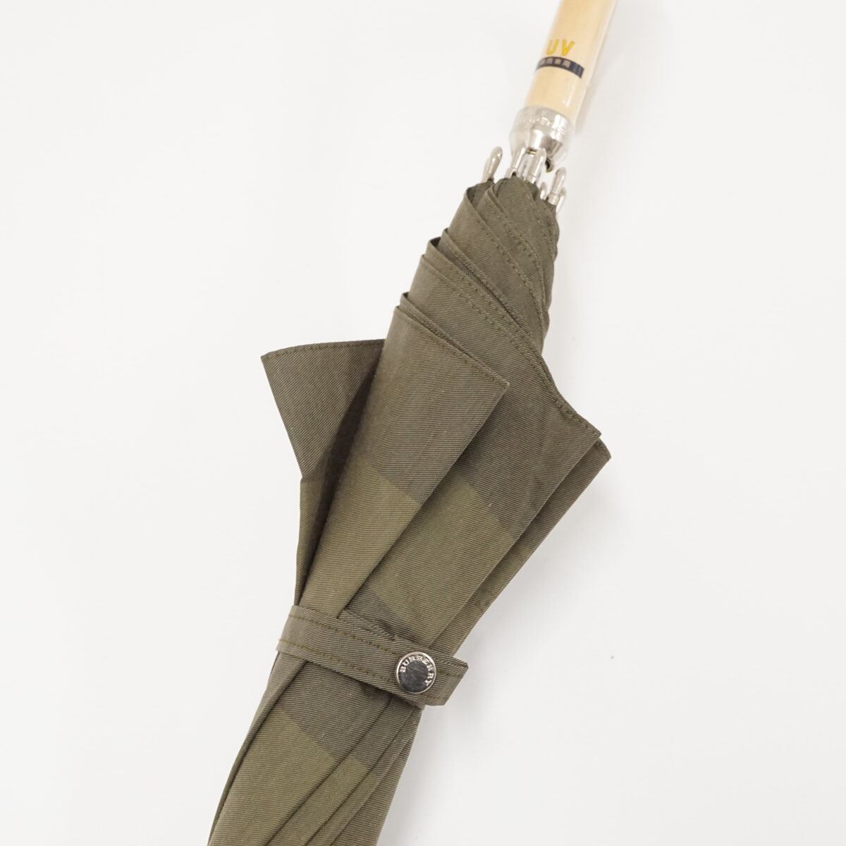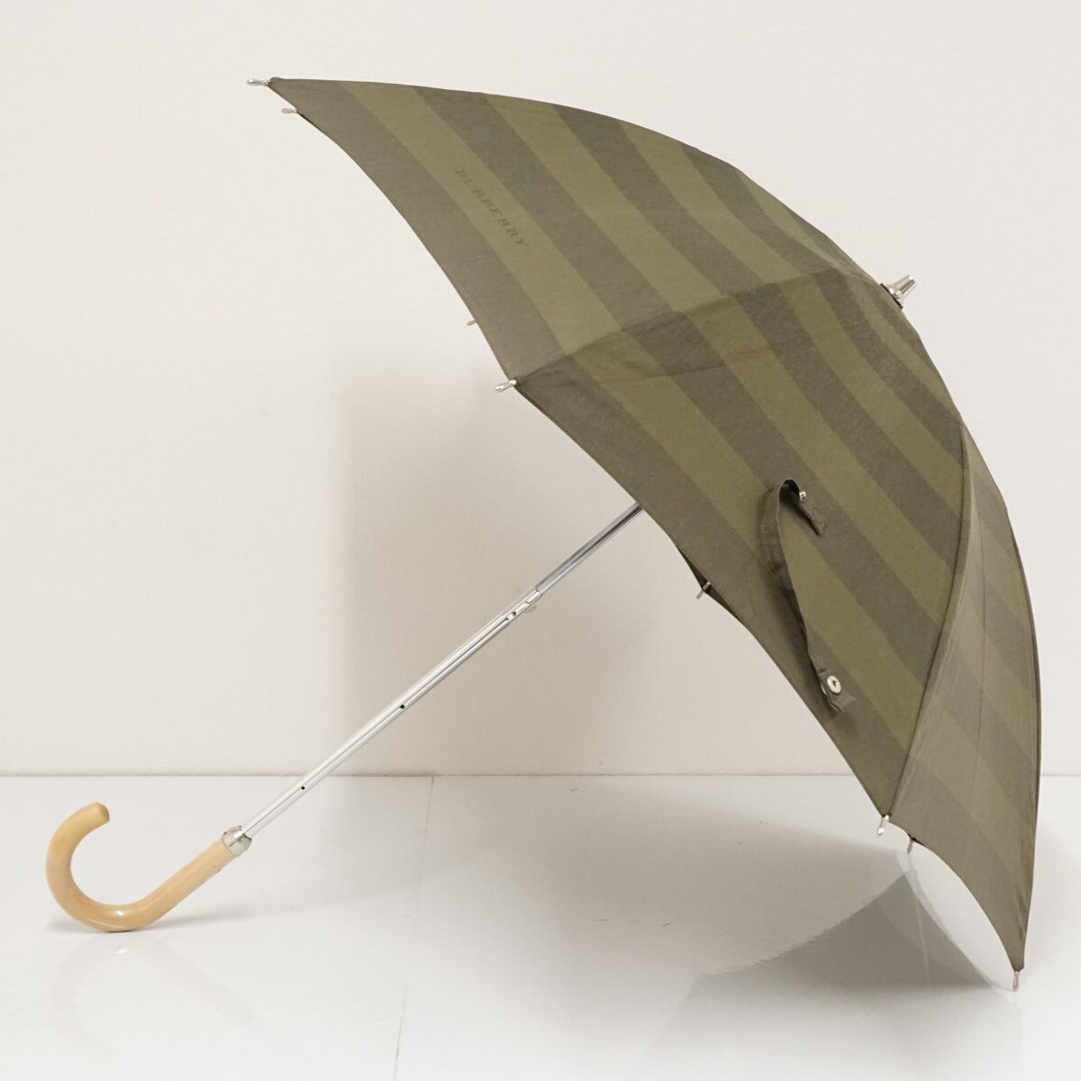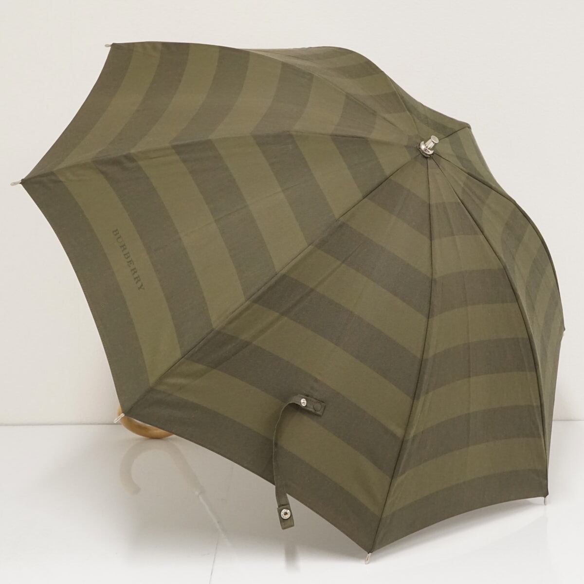 日傘 BURBERRY バーバリー USED美品 カーキ ボーダー ロゴ 木製手元 UV 希少 47cm S1934