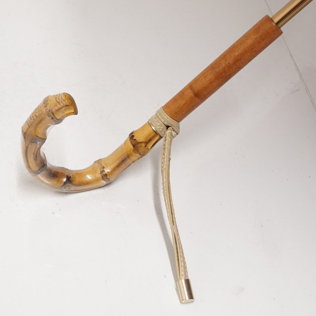 そして、レザー(合皮)の紐が付いた寒竹と木製の手元が高級感ある仕上がりです。