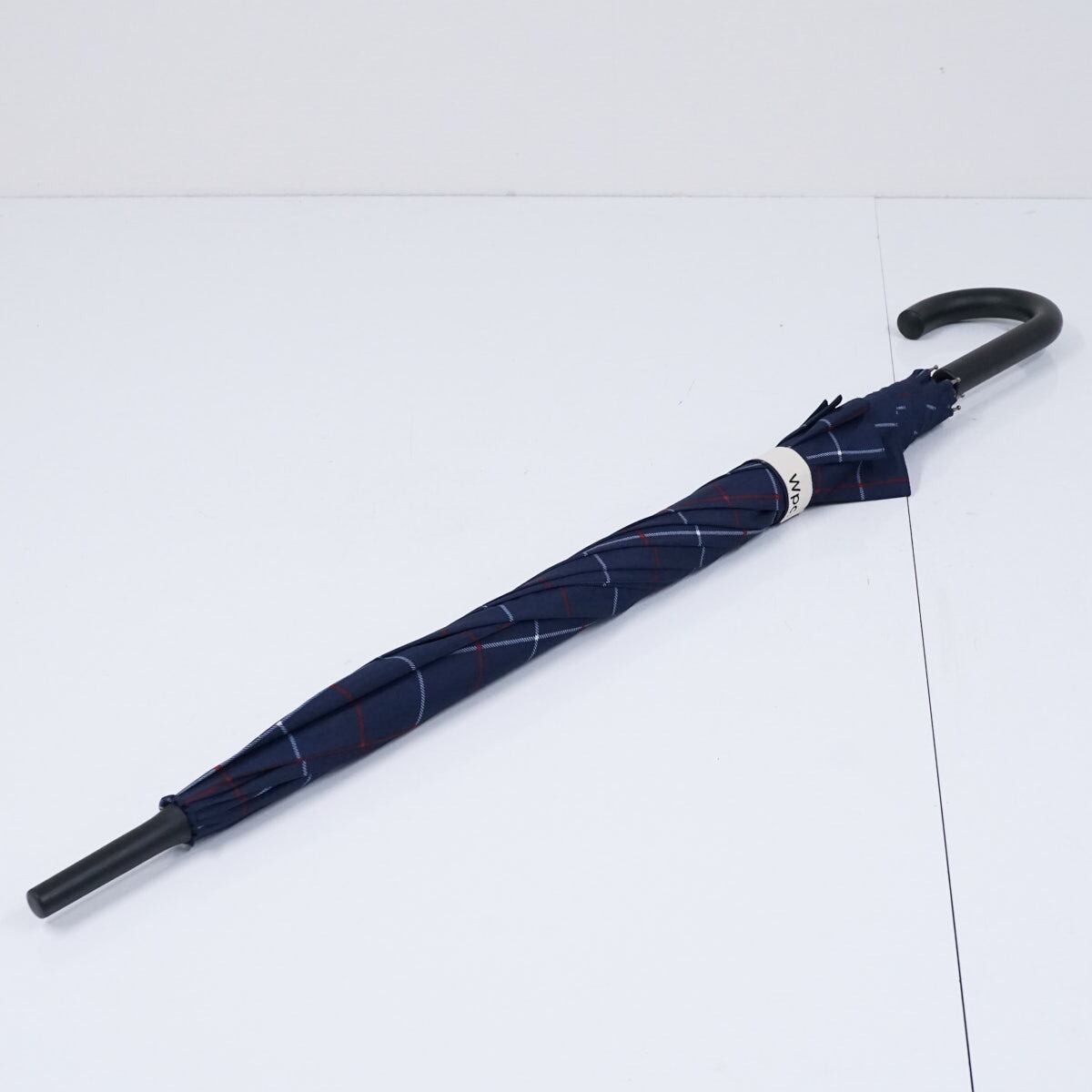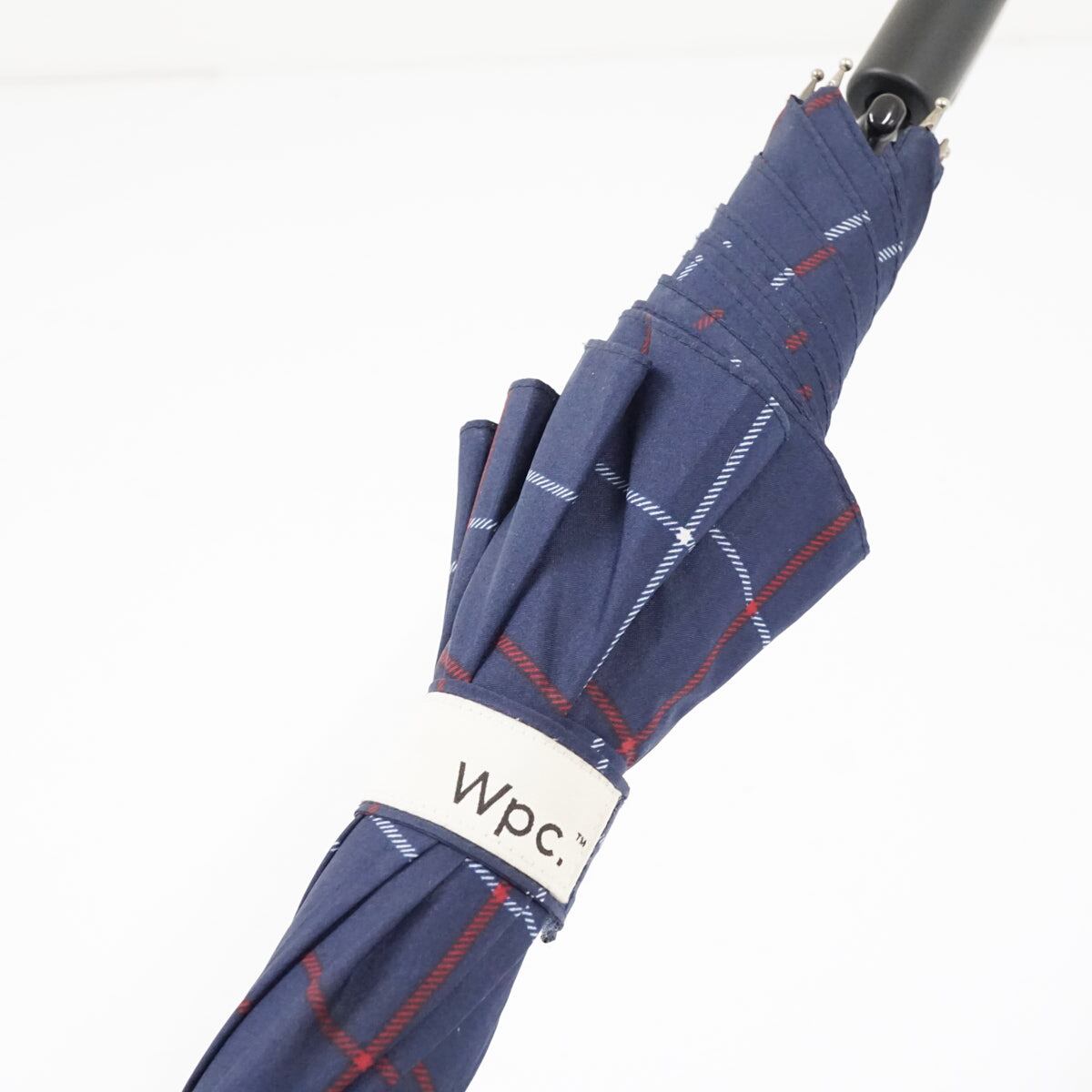 Wpc. ワールドパーティー 傘 USED美品 ネイビー 格子 メンズ 男女兼用 白ベルト ジャンプ 65cm T BT2114