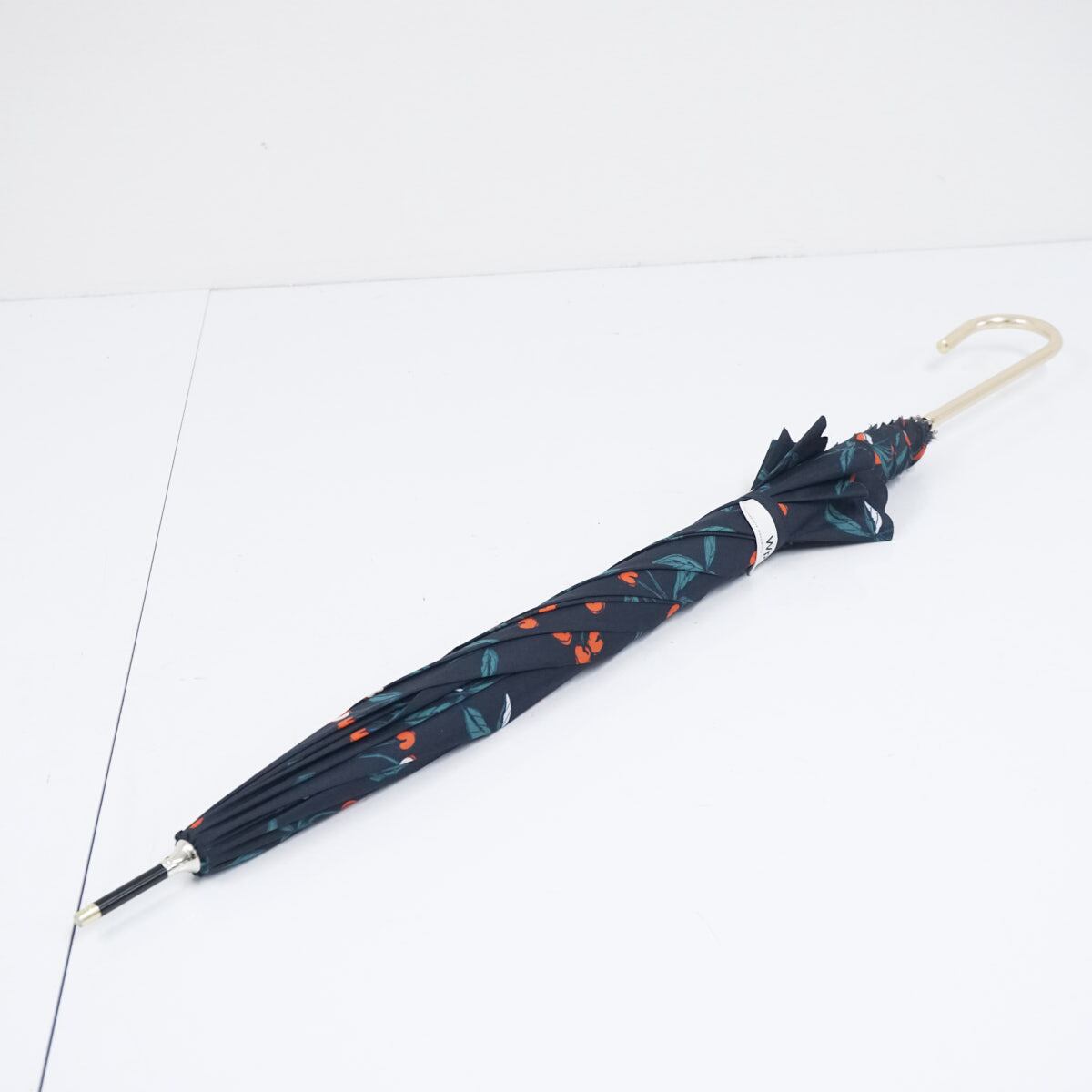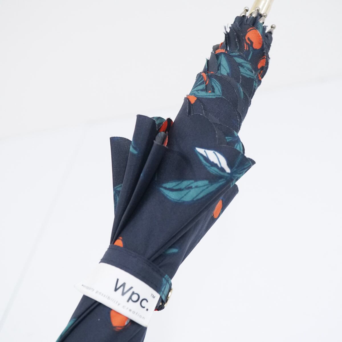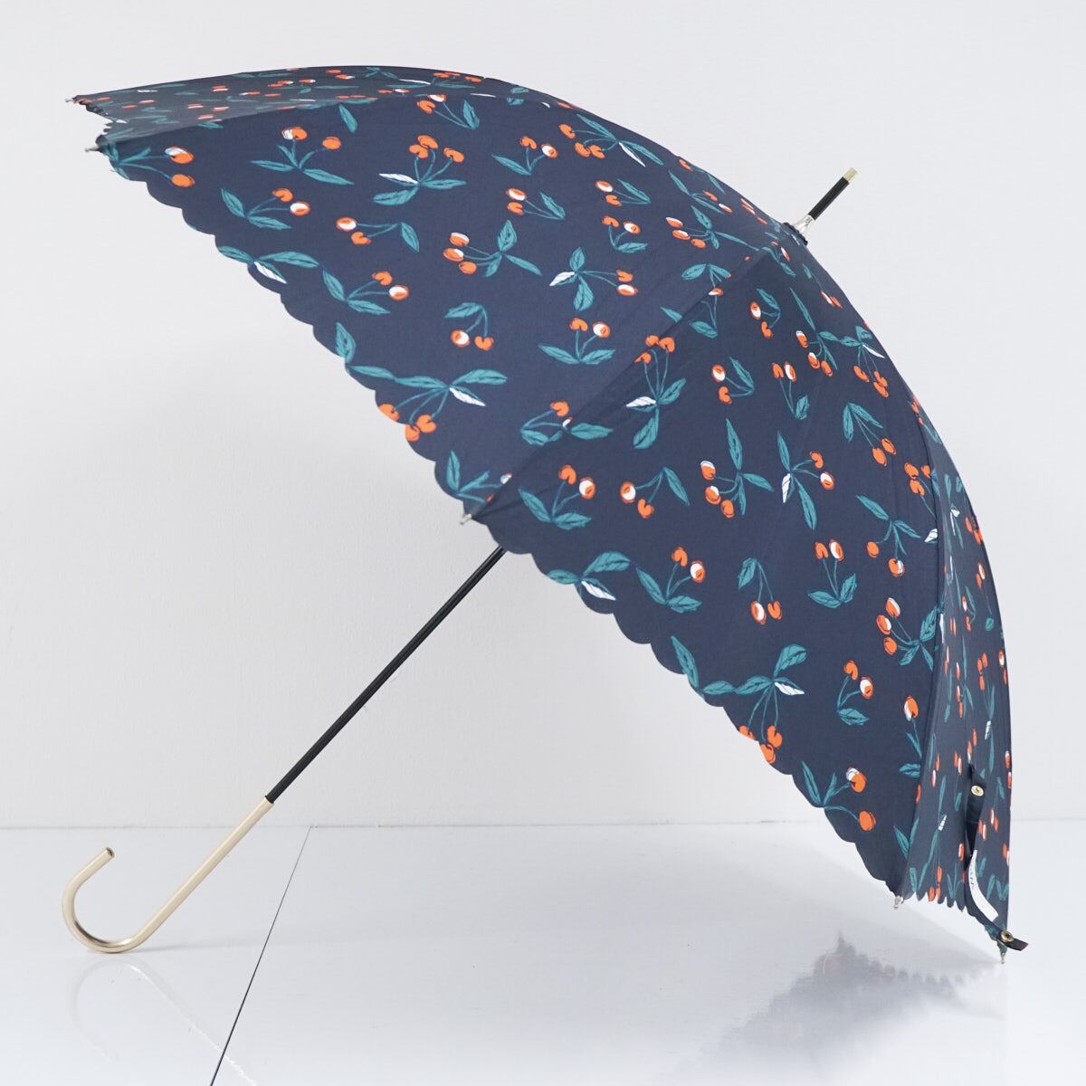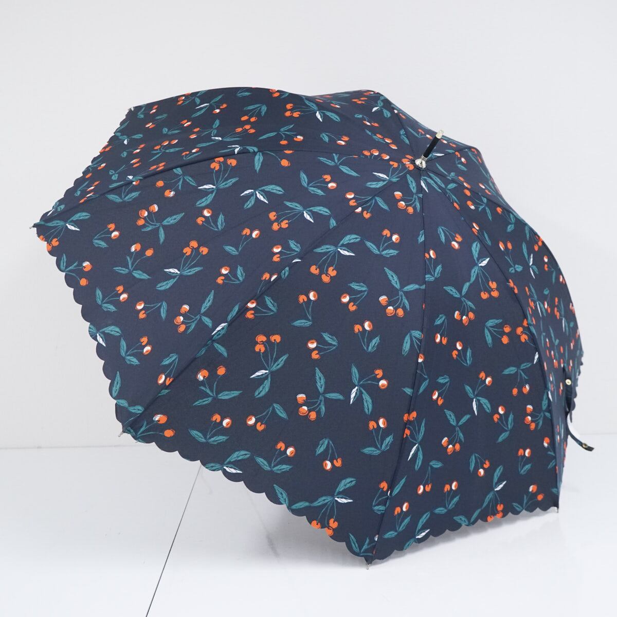 Wpc. ワールドパーティー 傘 USED美品 スカラップフリル ネイビー チェリー ゴールド手元 58cm BT1955