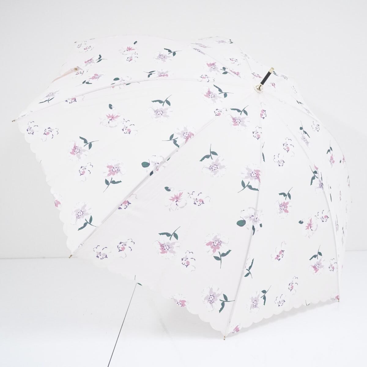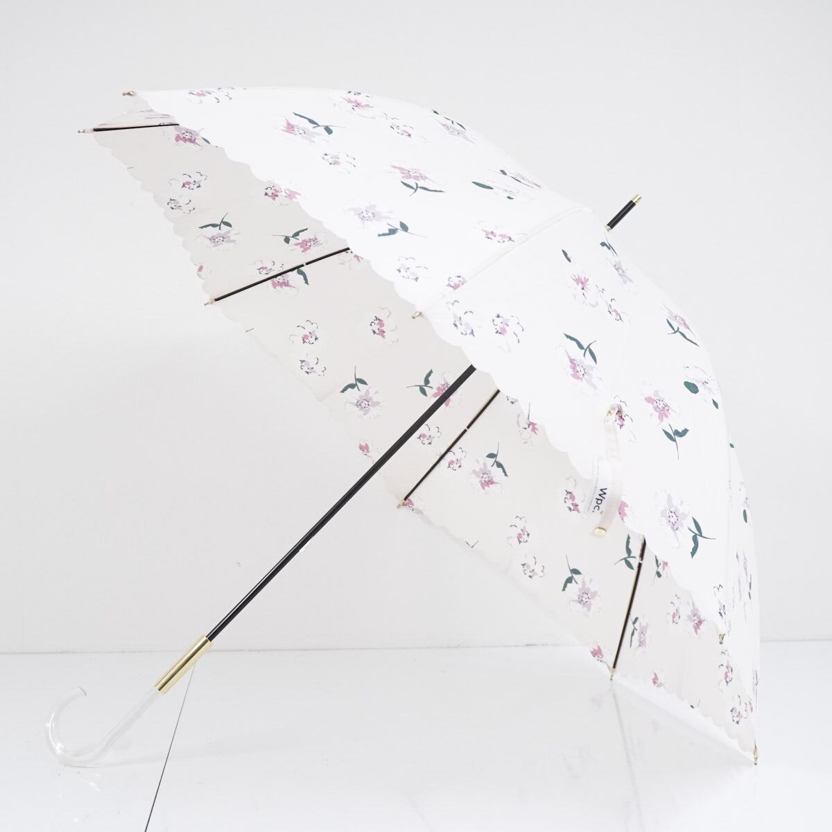 Wpc. ワールドパーティー 傘 USED美品 スカラップフリル ピンク フラワー クリア手元 58cm BT1954