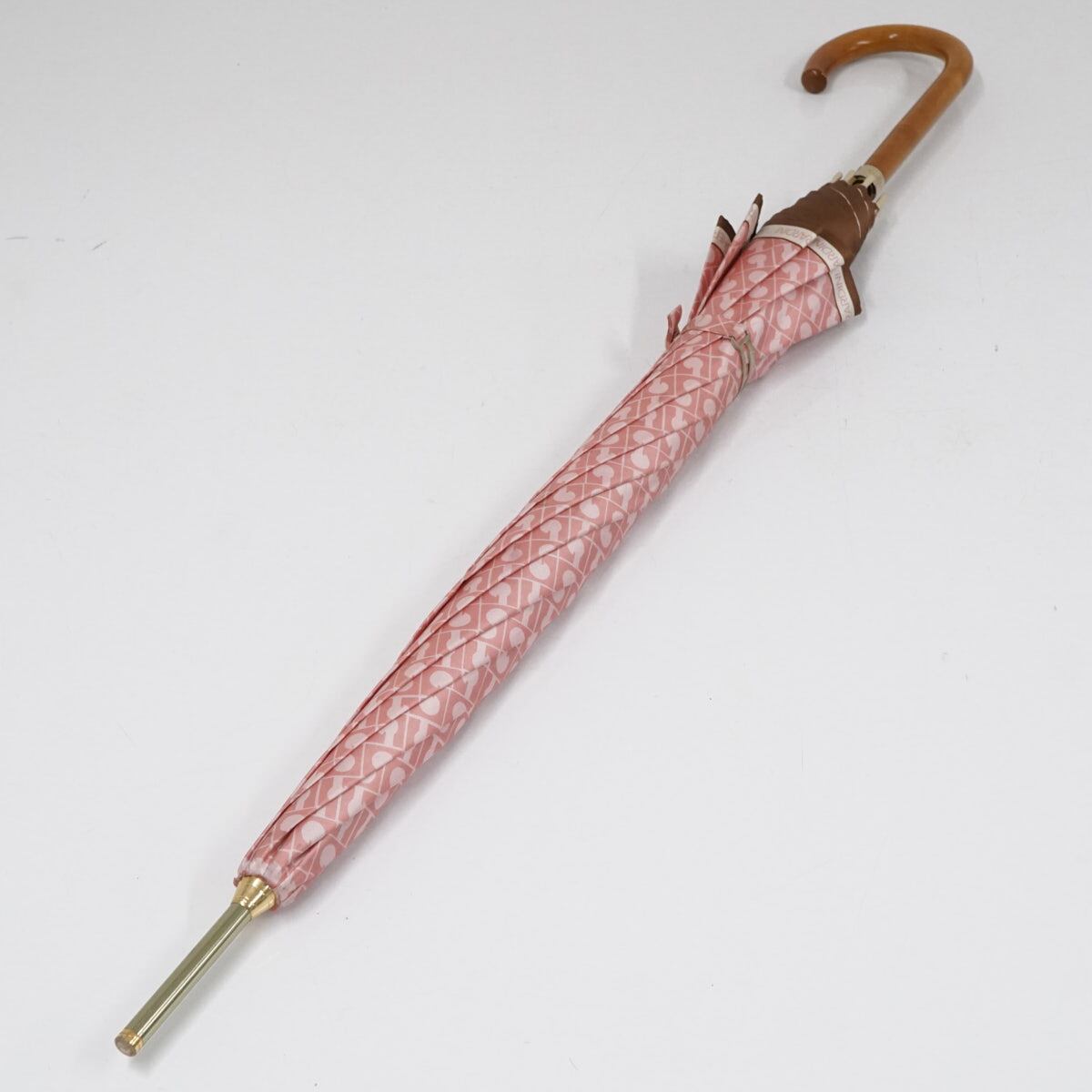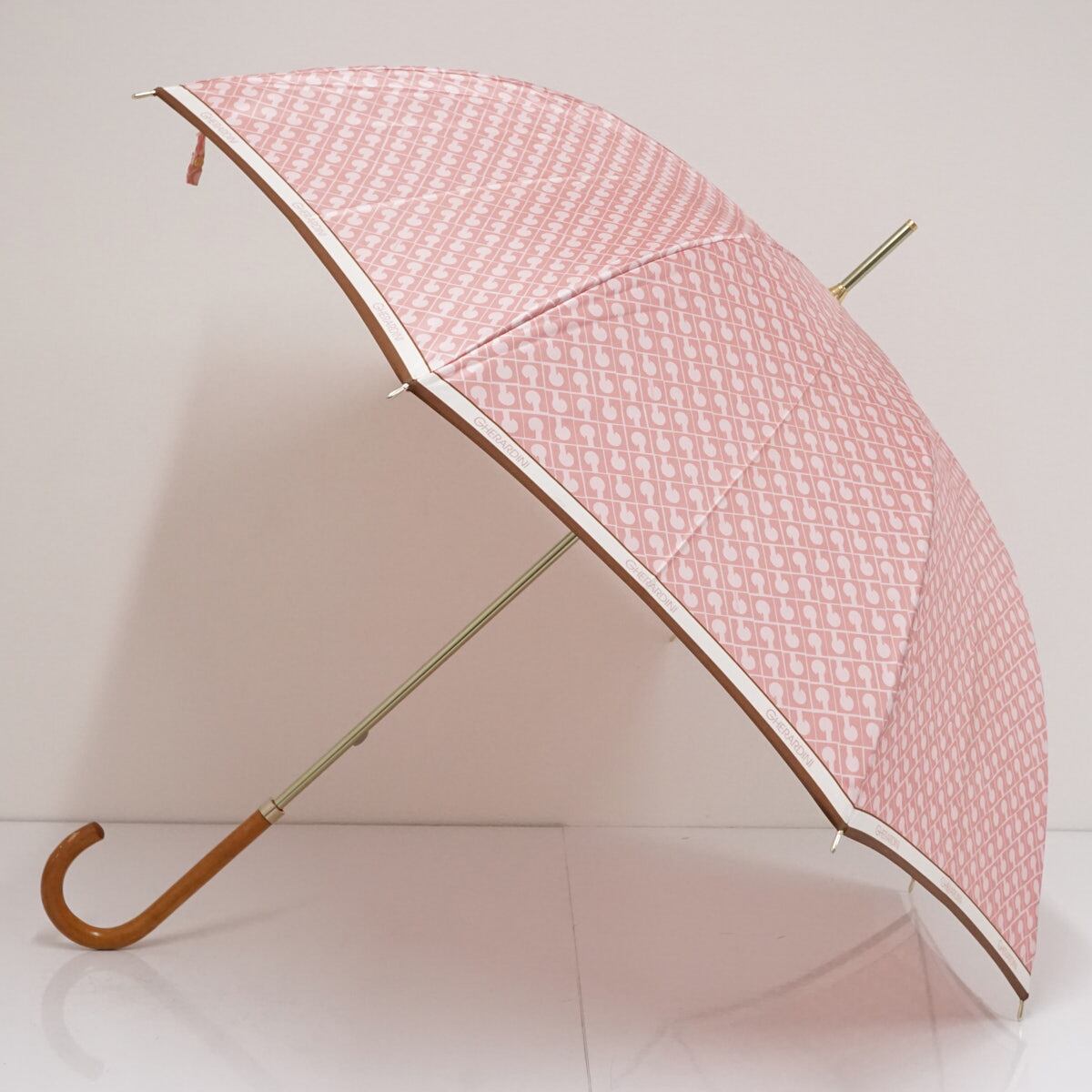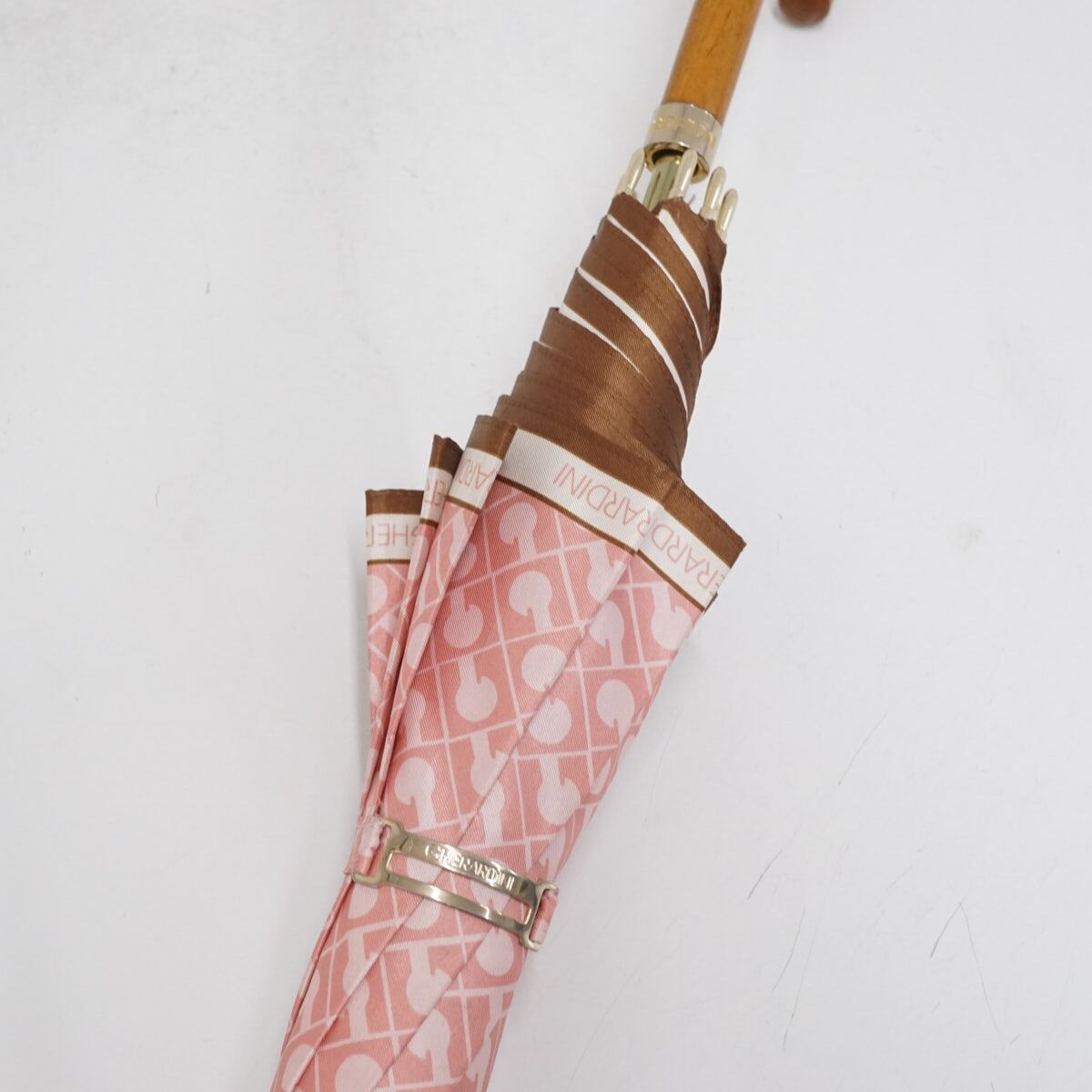 傘 GHERARDINI ゲラルディーニ USED美品 モノグラム ピンク 日本製 木製手元 ロゴ グラス骨 軽量 60cm S1963