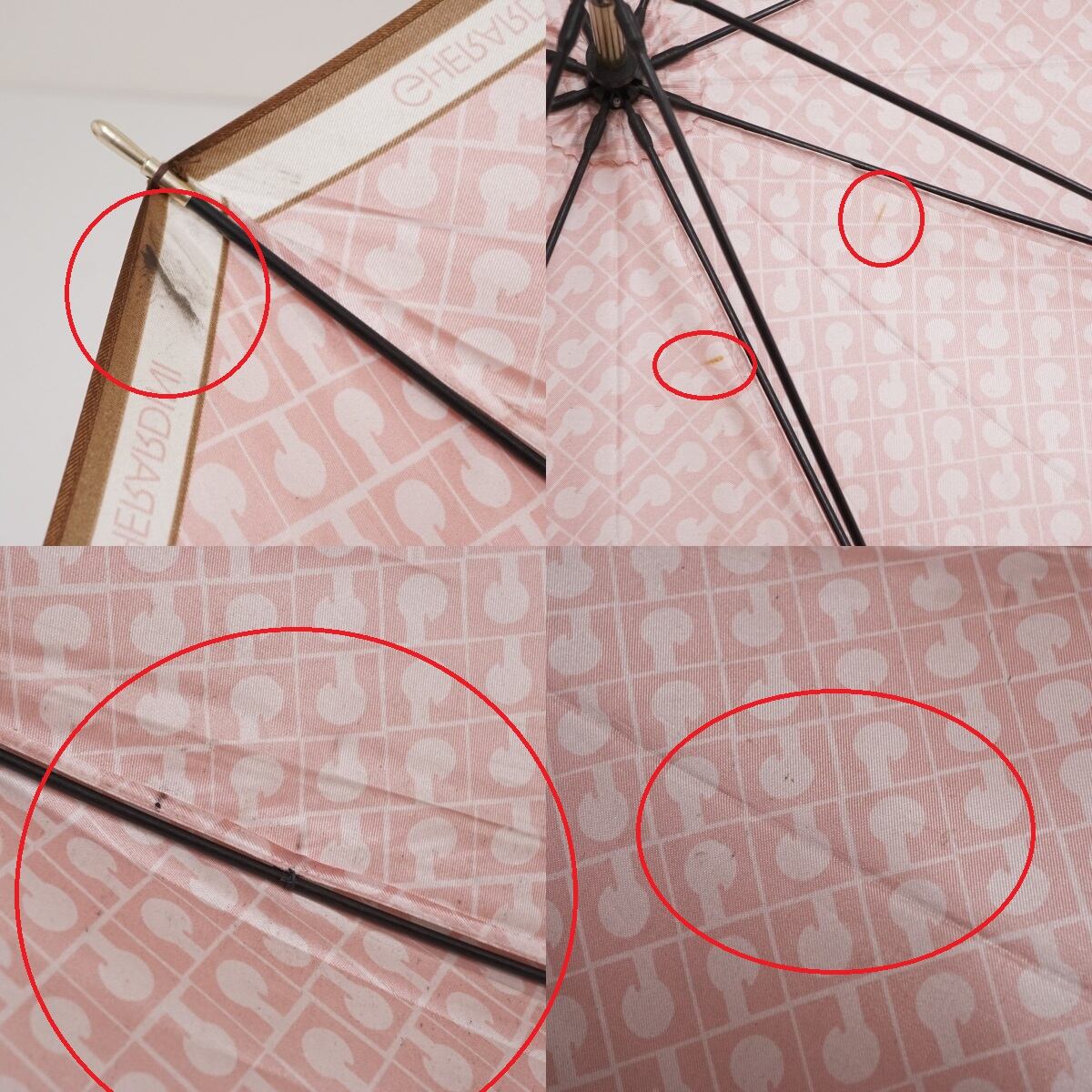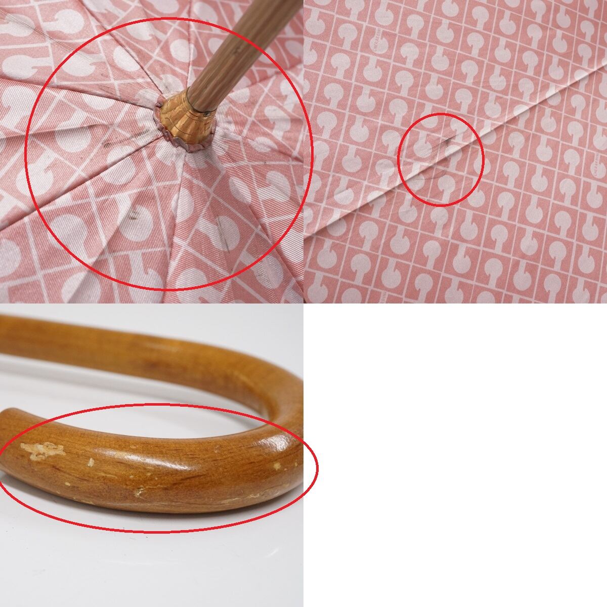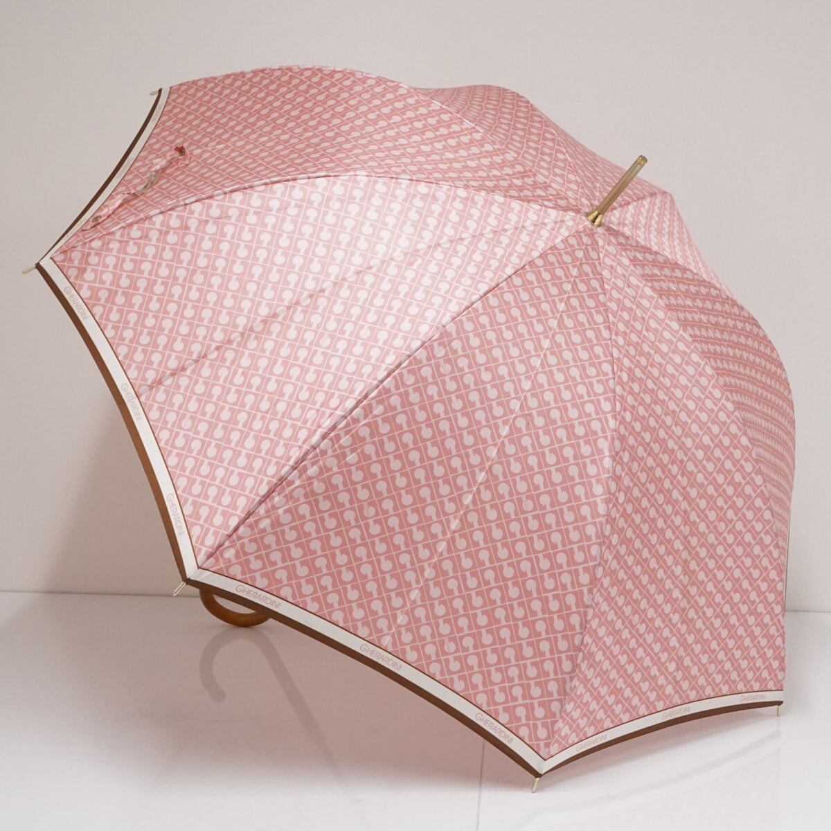 傘 GHERARDINI ゲラルディーニ USED美品 モノグラム ピンク 日本製 木製手元 ロゴ グラス骨 軽量 60cm S1963