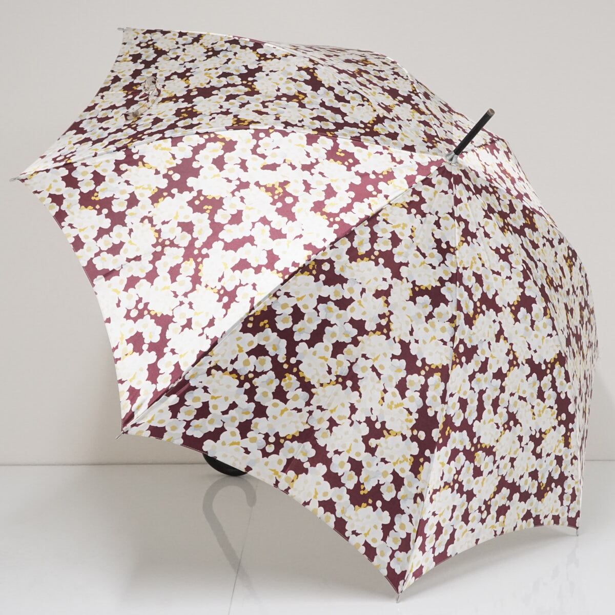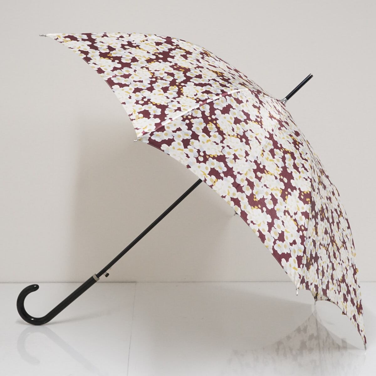 淡い光沢のあるパープル系の生地にフラワーイラストをデザインした個性的でかわいい傘です。