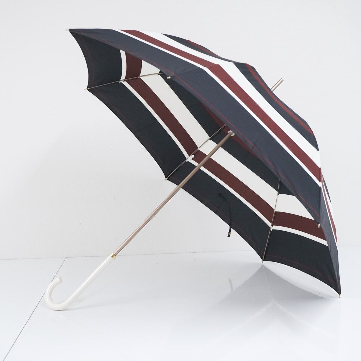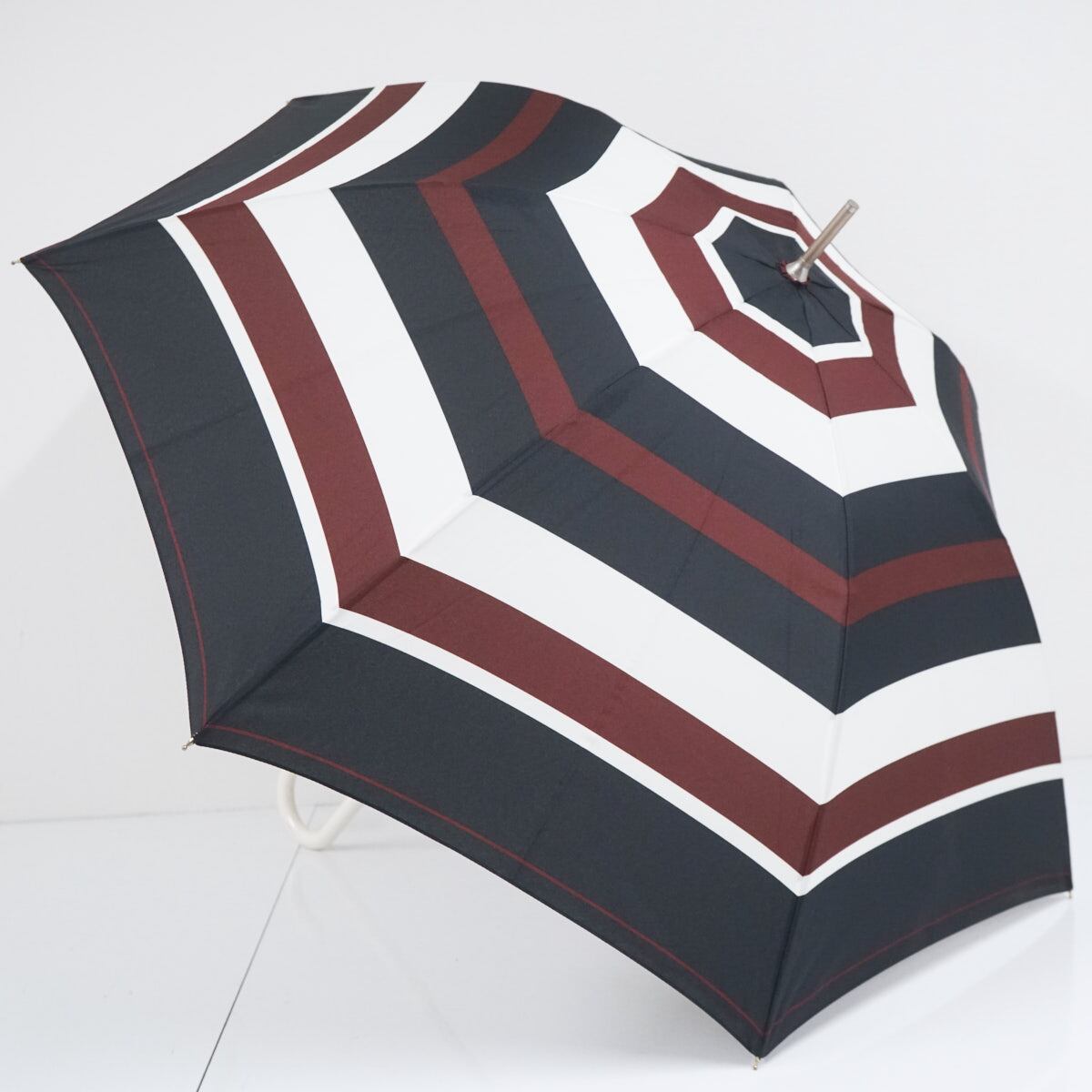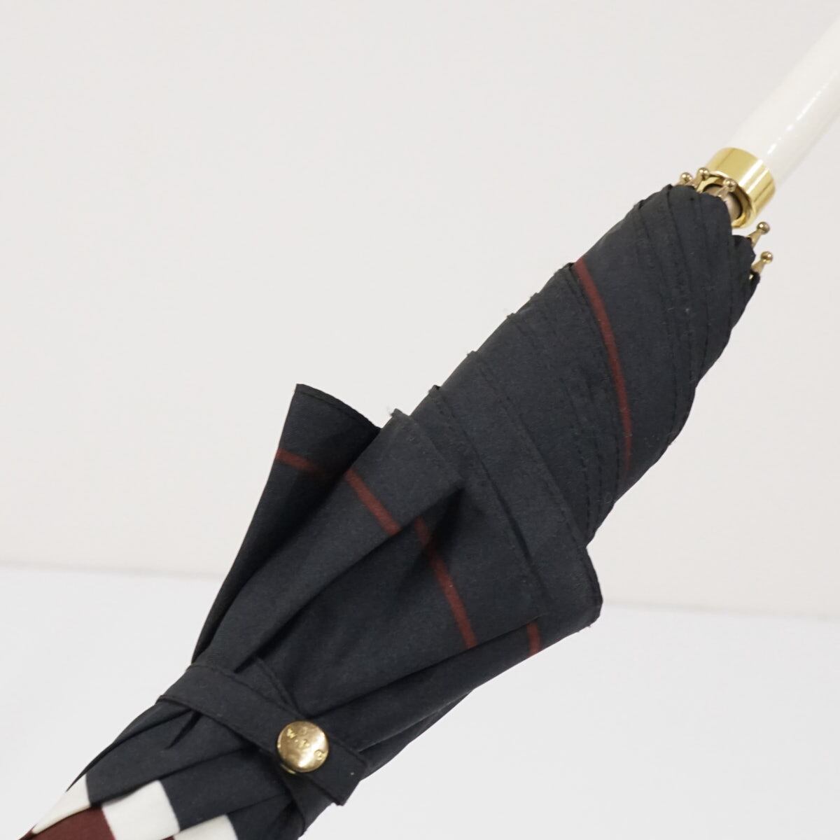Wpc. ワールドパーティー 傘 USED美品 ボーダー ブラウン×ホワイト ホワイト レザー手元 グラス骨 58cm BT1956