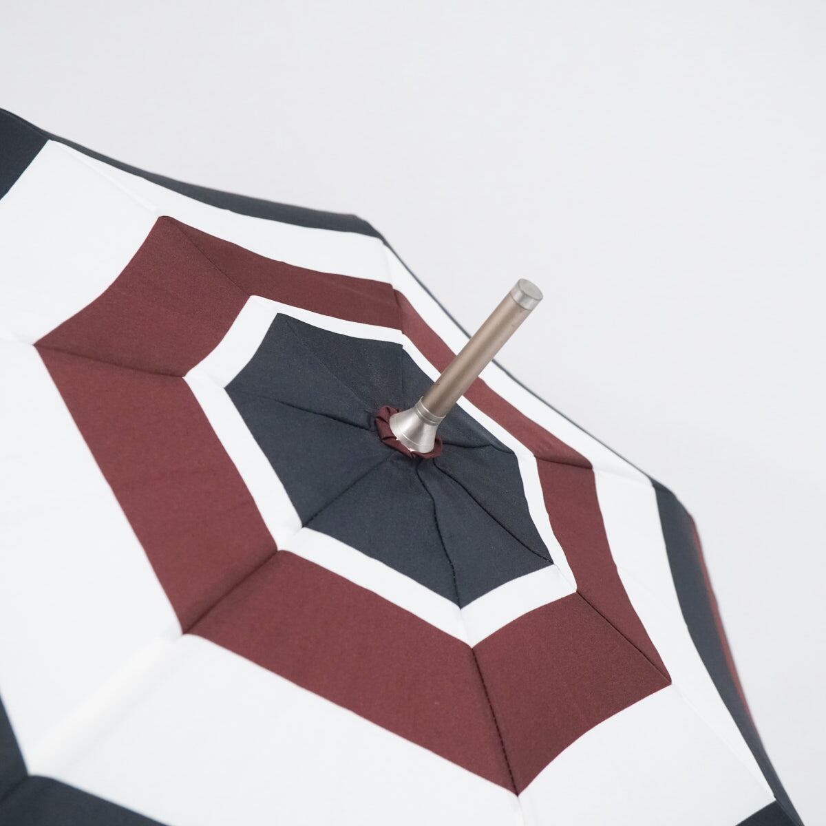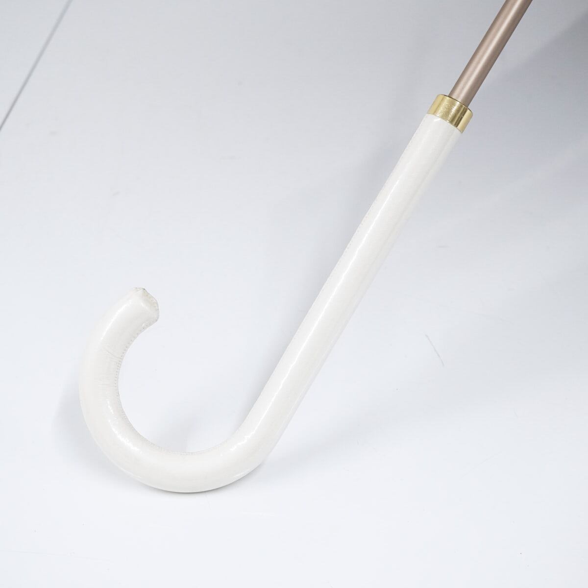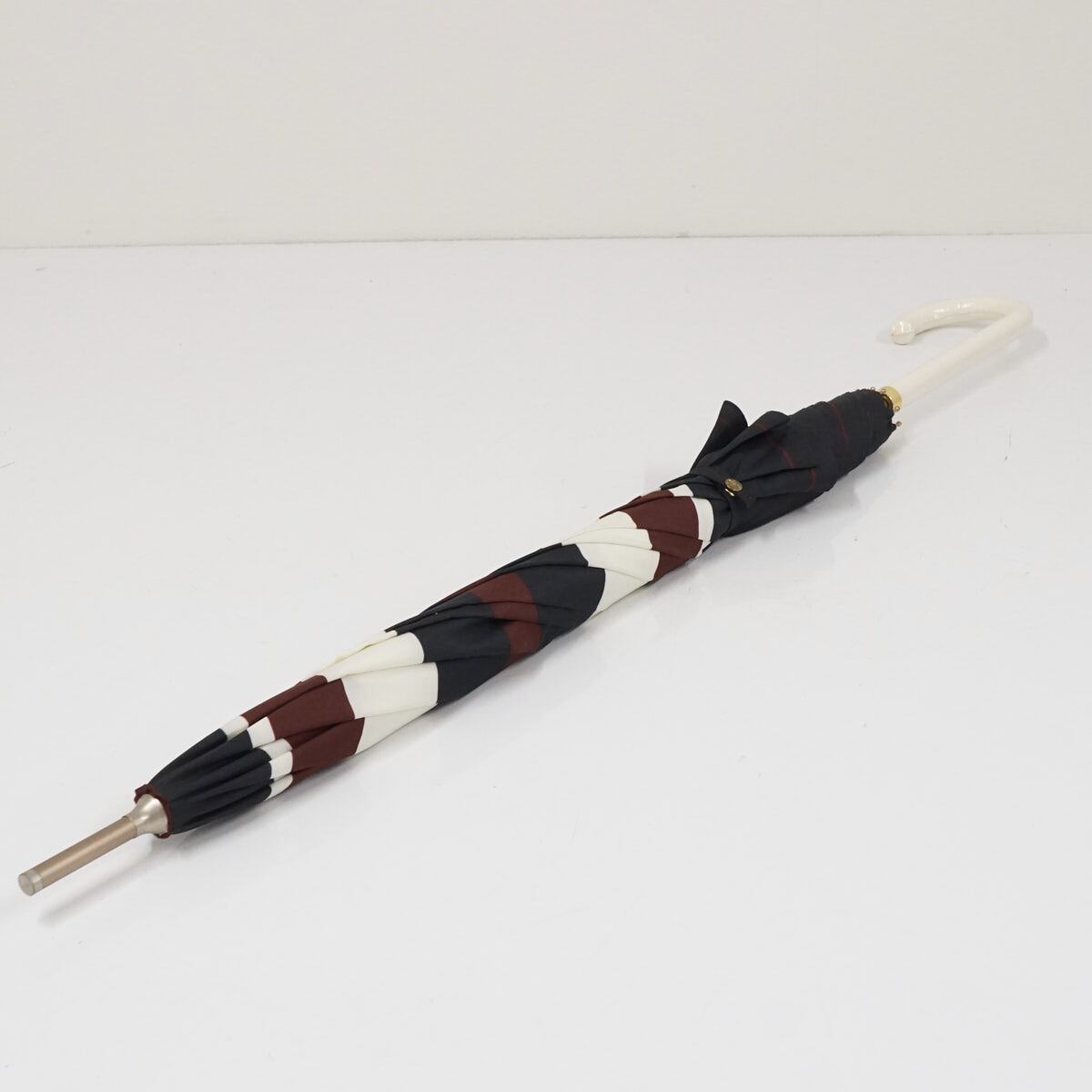 Wpc. ワールドパーティー 傘 USED美品 ボーダー ブラウン×ホワイト ホワイト レザー手元 グラス骨 58cm BT1956