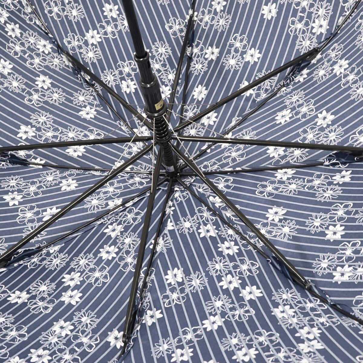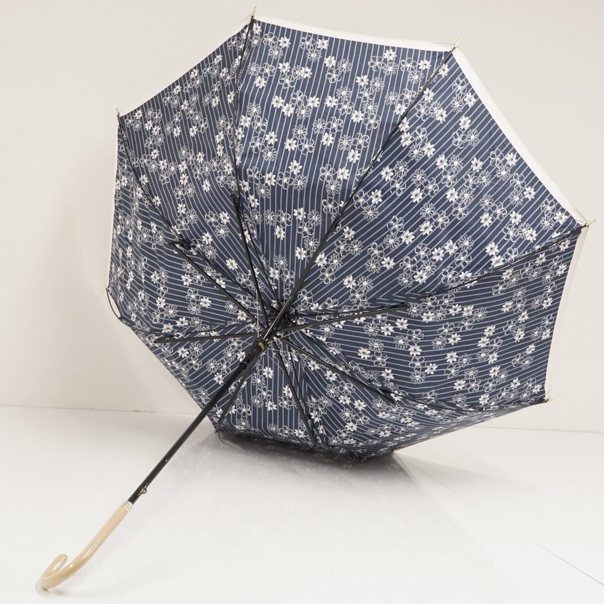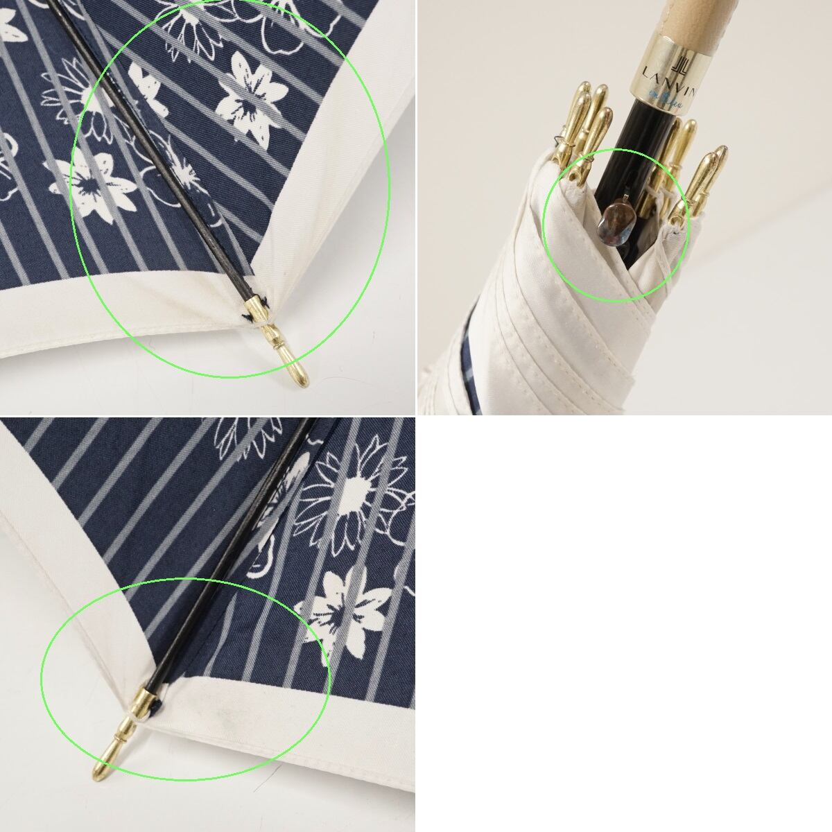 傘 LANVIN en Bleu ランバンオンブルー USED美品 ストライプ&フラワー ネイビー 耐風 ジャンプ 60cm KR A1967