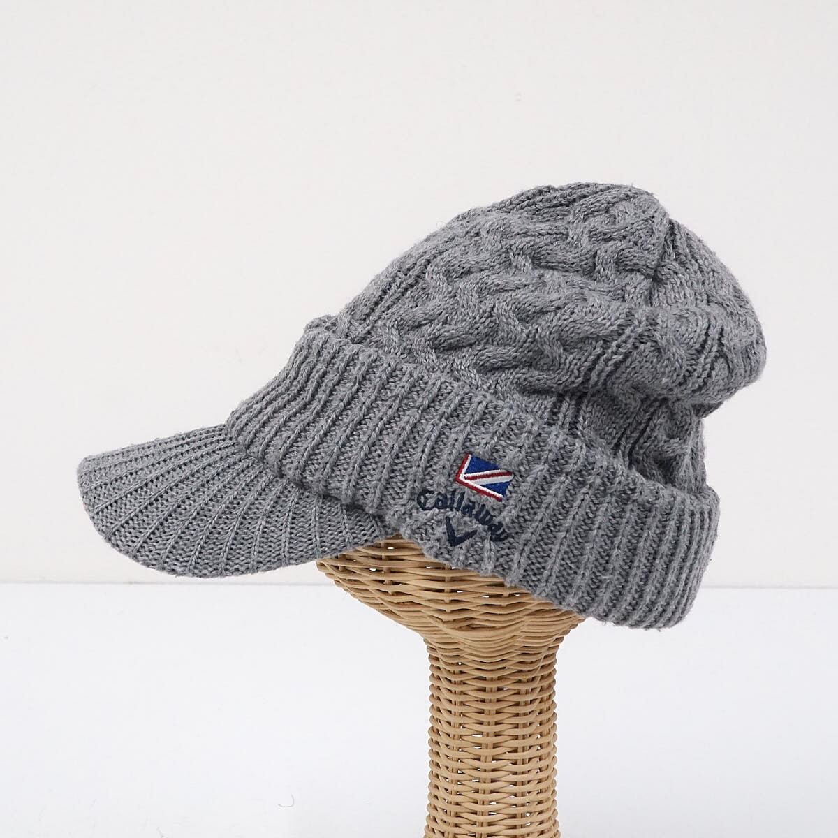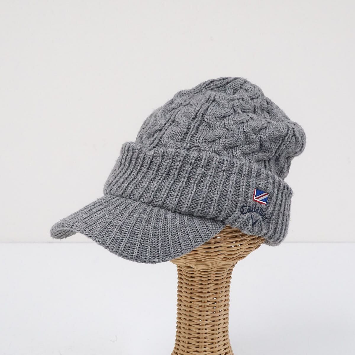 Callaway ニットキャップ USED品 帽子 つば付きニット帽 ケーブルニット ゴルフ キャロウェイ グレー X6061