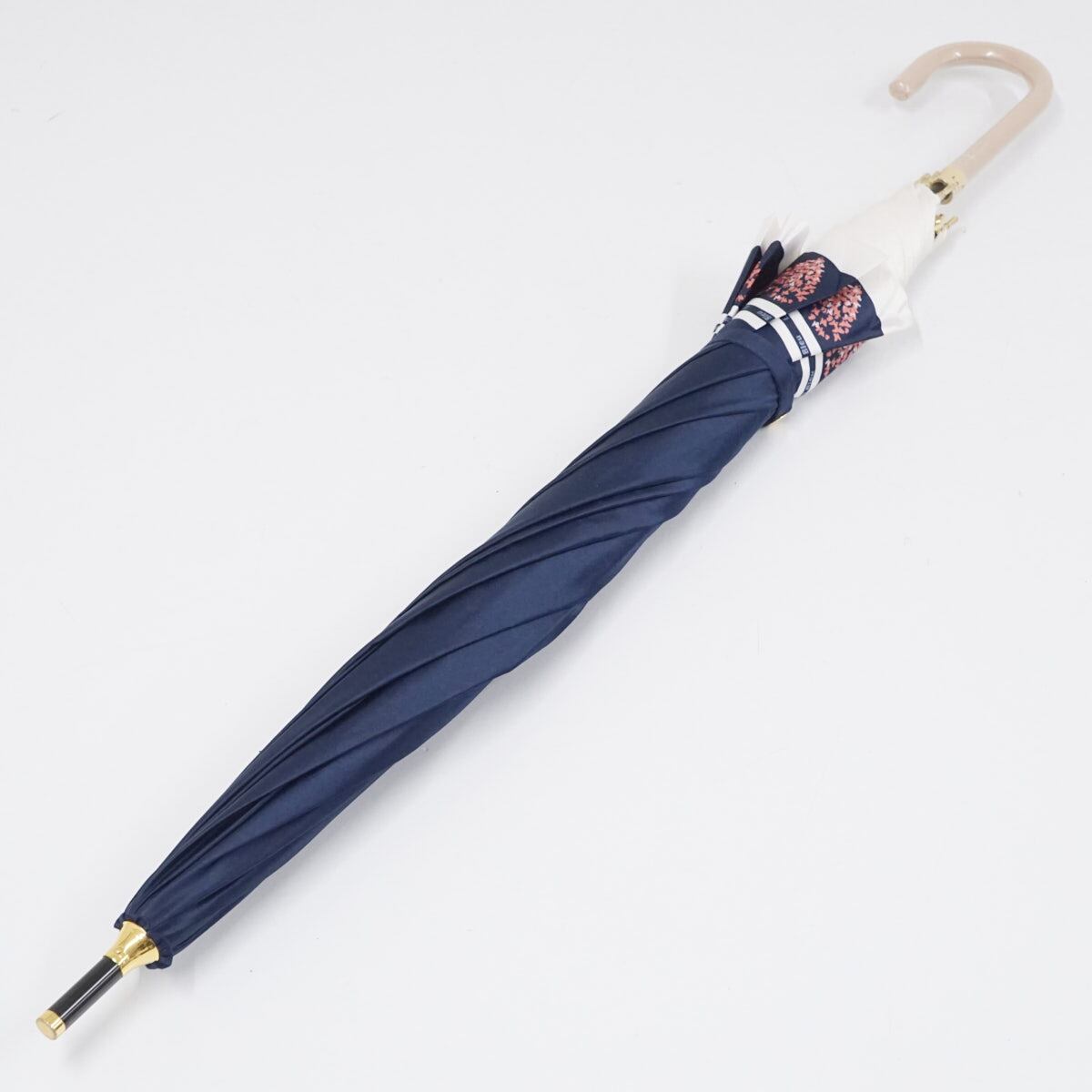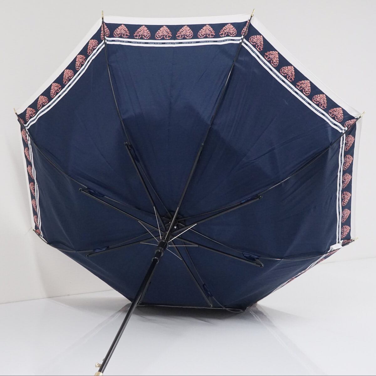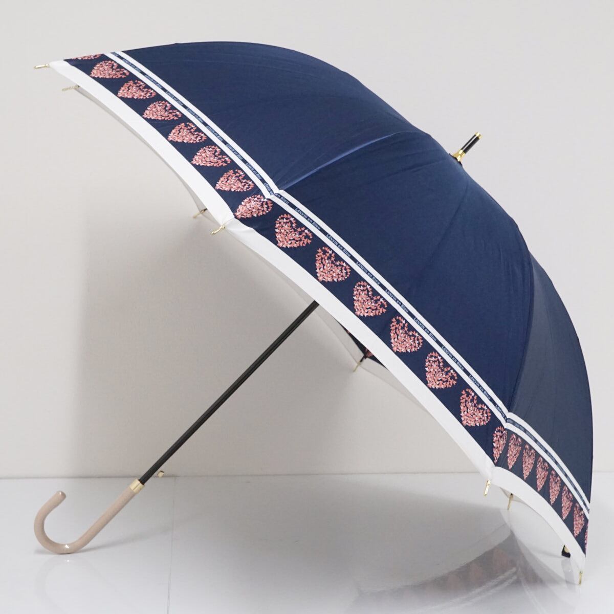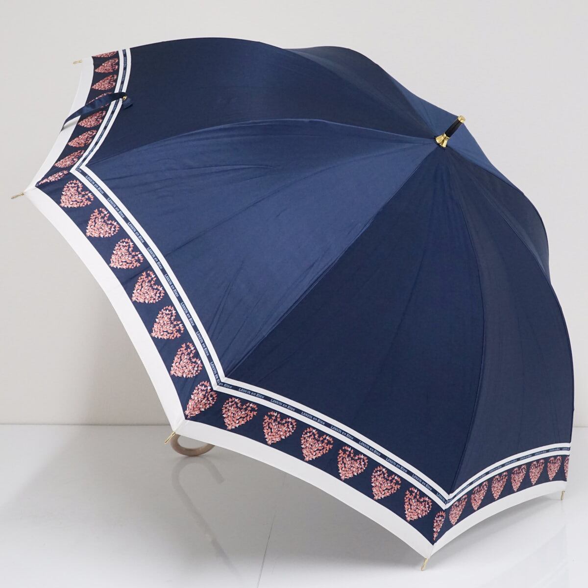 ネイビーの生地に縁のハートの柄がかわいい傘です。