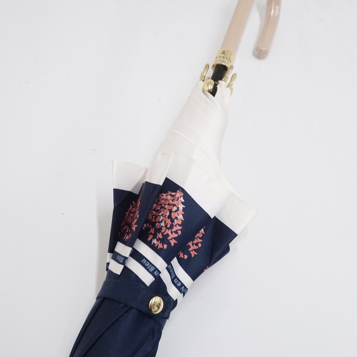 傘 LANVIN en Bleu ランバンオンブルー USED美品 耐風傘 ネイビー ハート ピンク ロゴ ジャンプ 60cm A1976