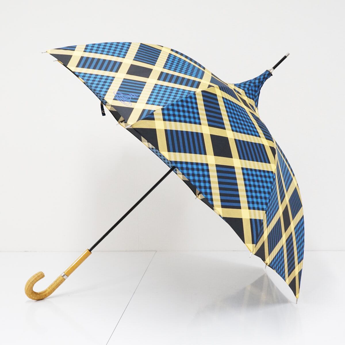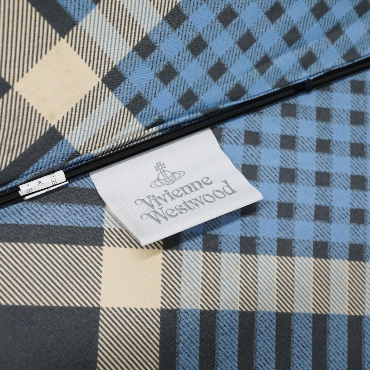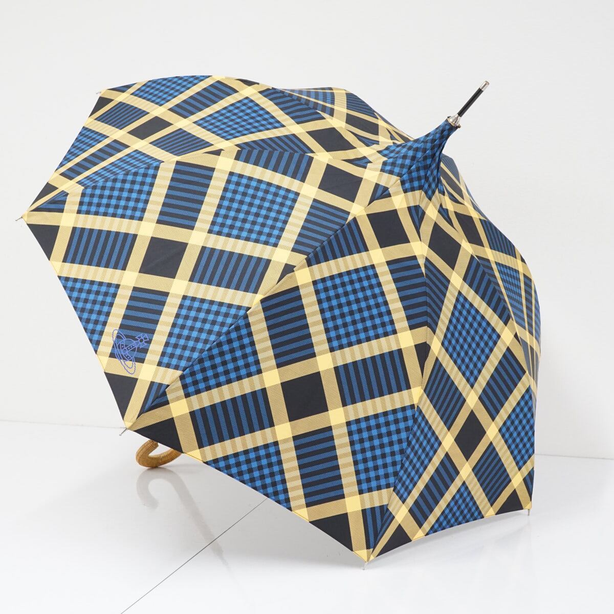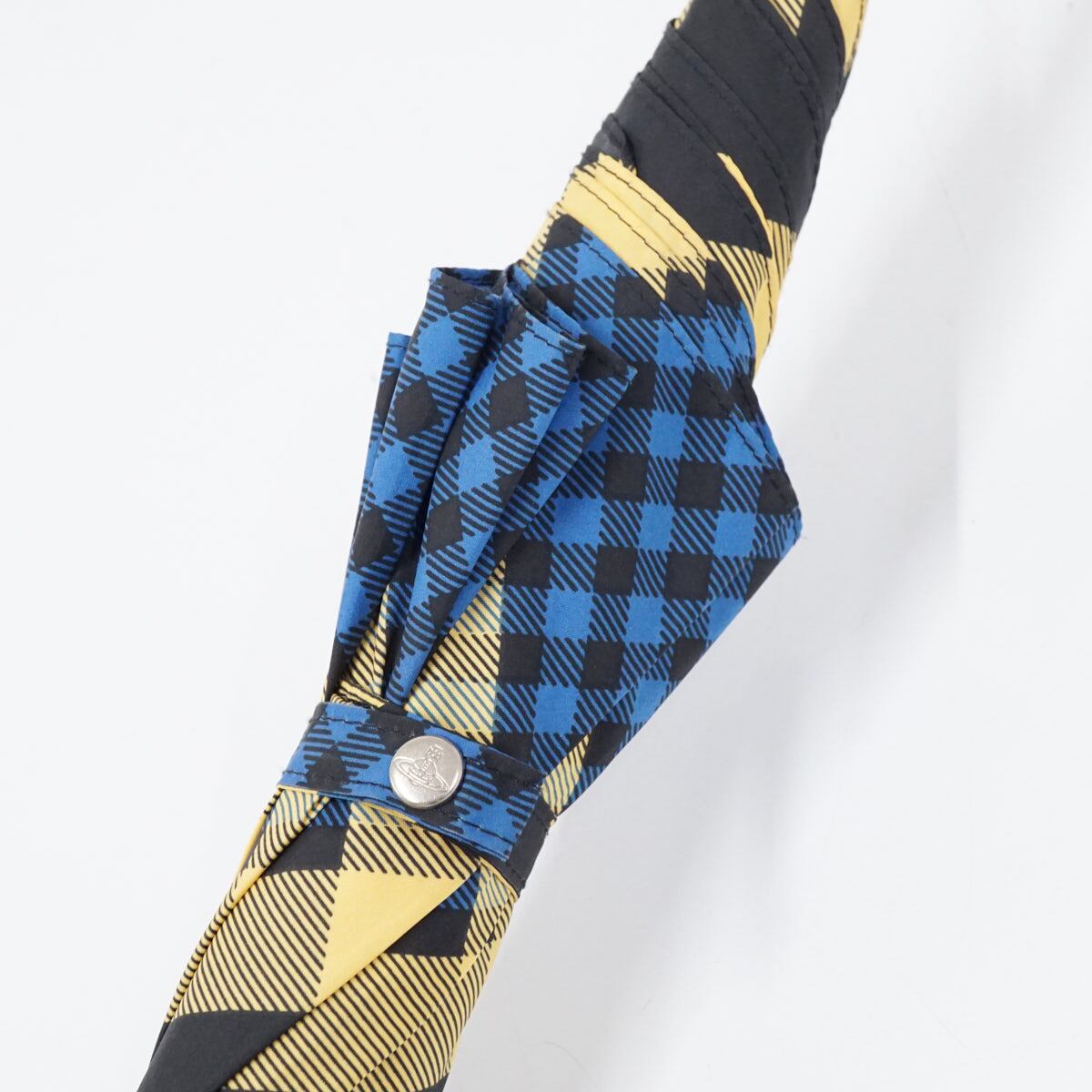 ブルー×ブラック×イエローの印象的なチェックパターンにさりげなくオーブをデザインしたヴィヴィアンウエストウッドのパゴダ傘です。