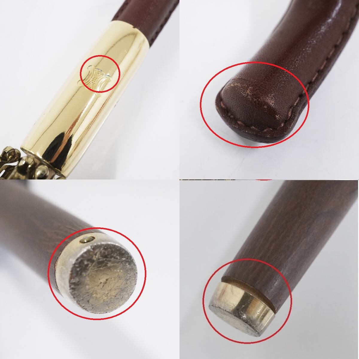 木製の石突とレザーの手元はブラウン、金属部分はゴールドでまとめられており、高級感を感じられます。