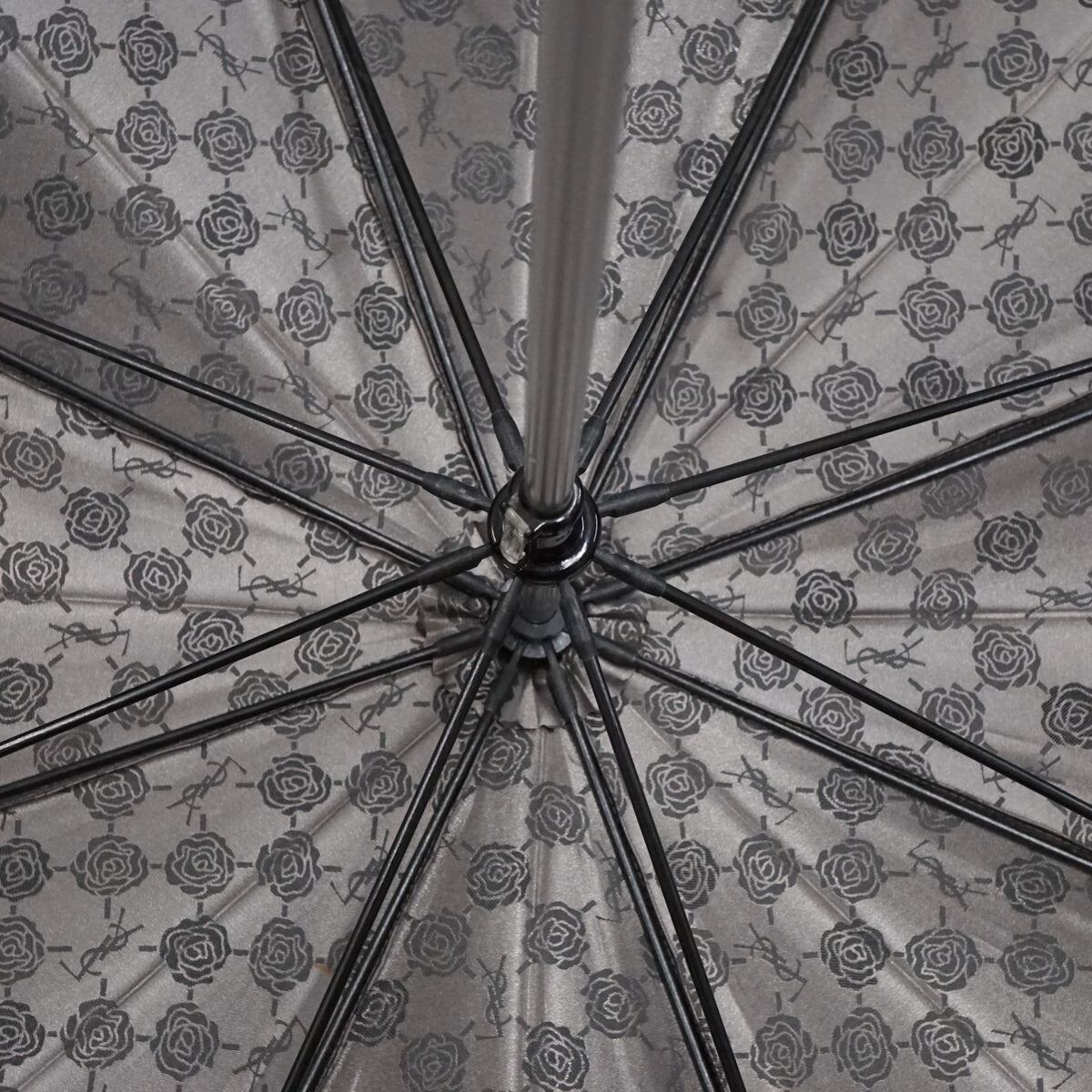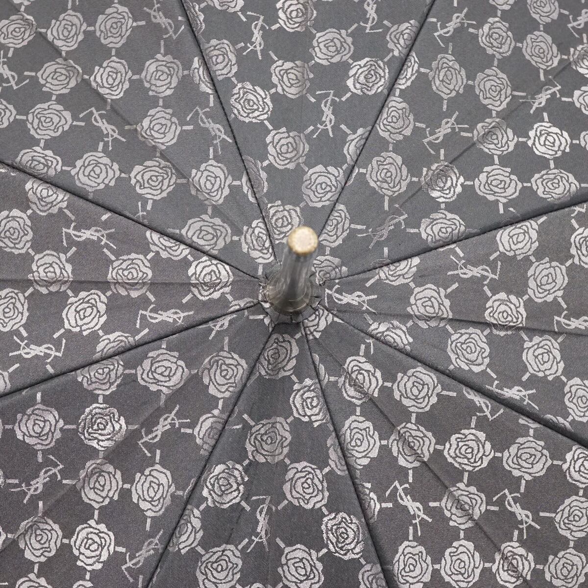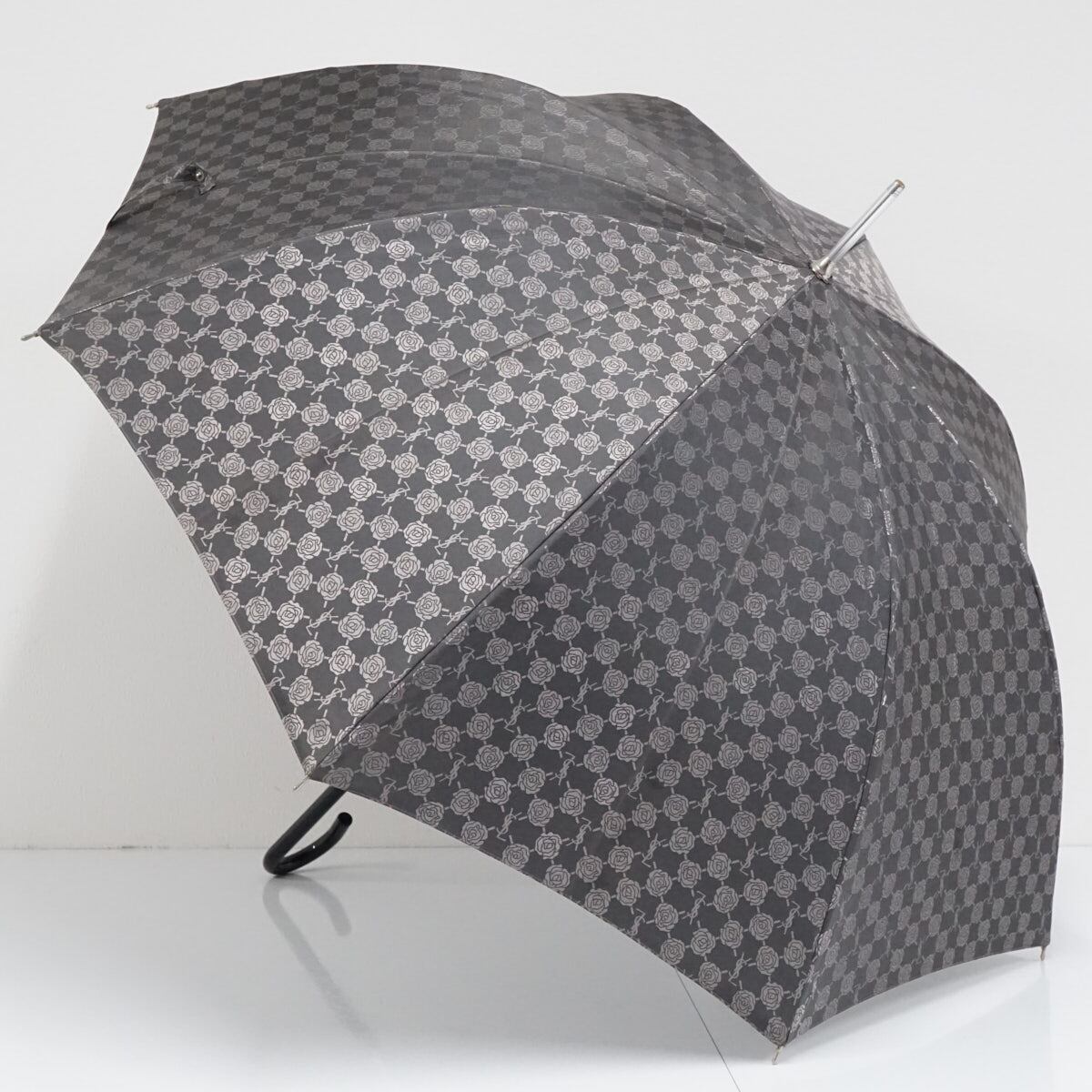 YSL イヴサンローラン 高級傘 USED美品 ロゴ ローズ グレー ジャガード エレガント グラス骨 60cm S2450
