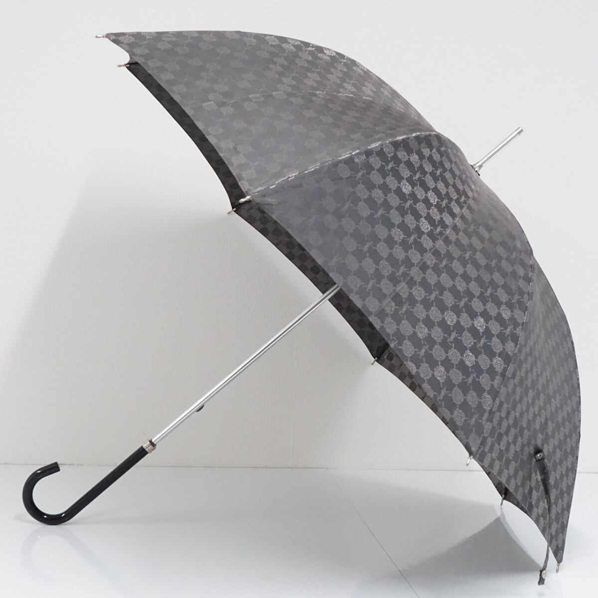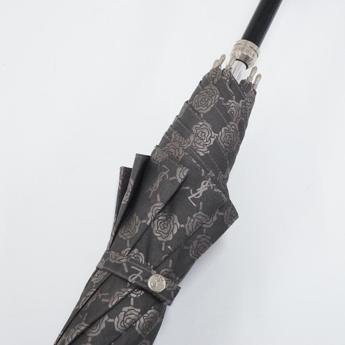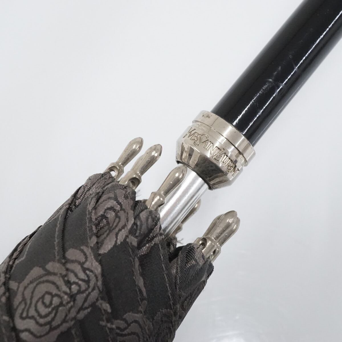 YSL イヴサンローラン 高級傘 USED美品 ロゴ ローズ グレー ジャガード エレガント グラス骨 60cm S2450