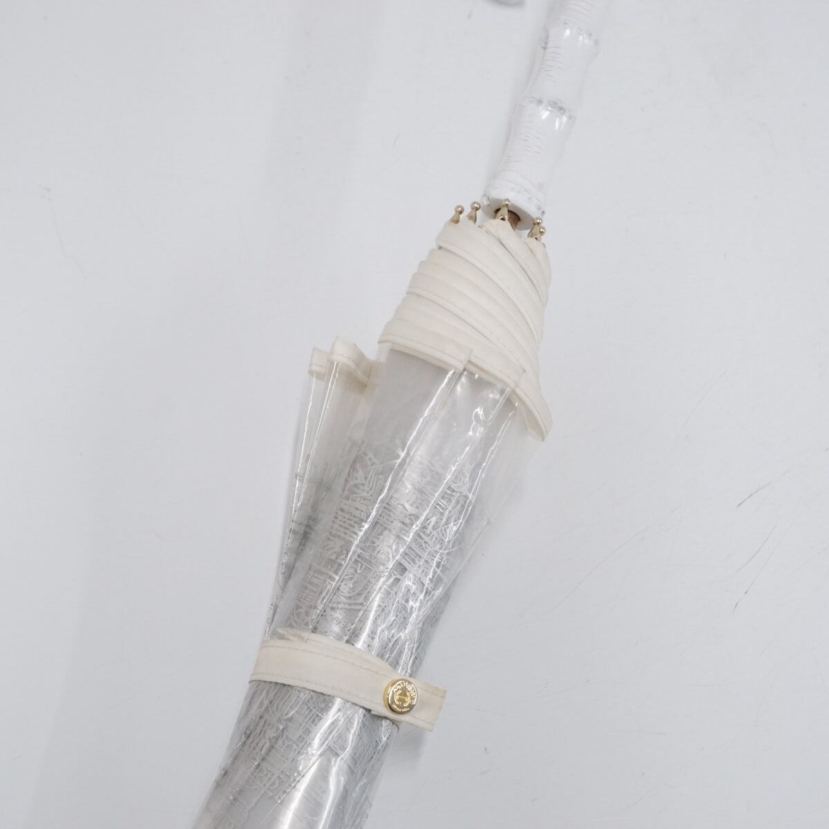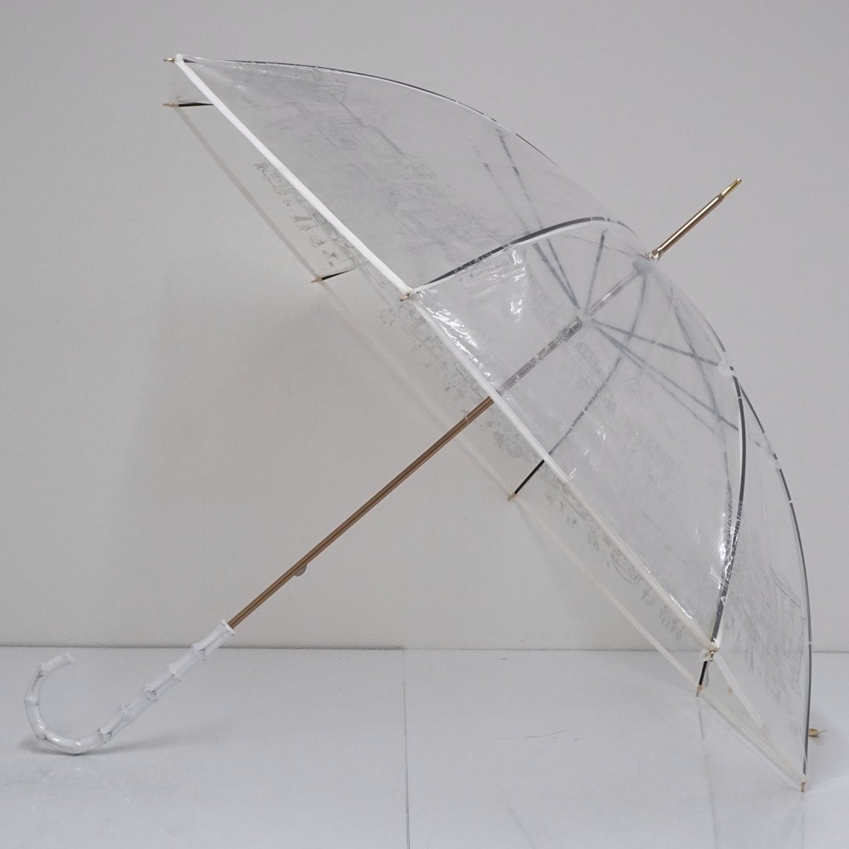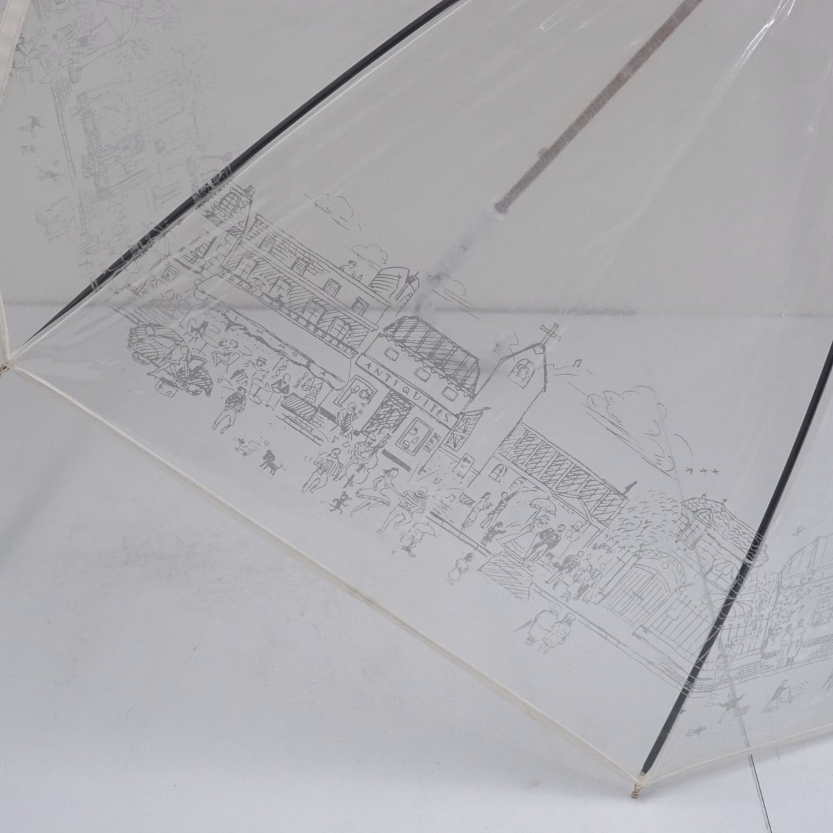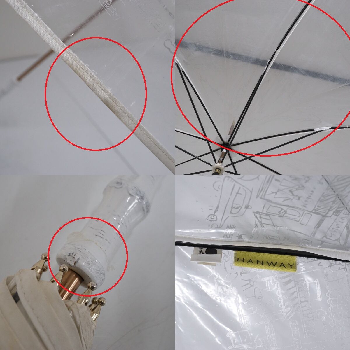高級ビニール傘 HANWAY ハンウェイ USED美品 ホワイト パイピング 街並み 55cm S1992