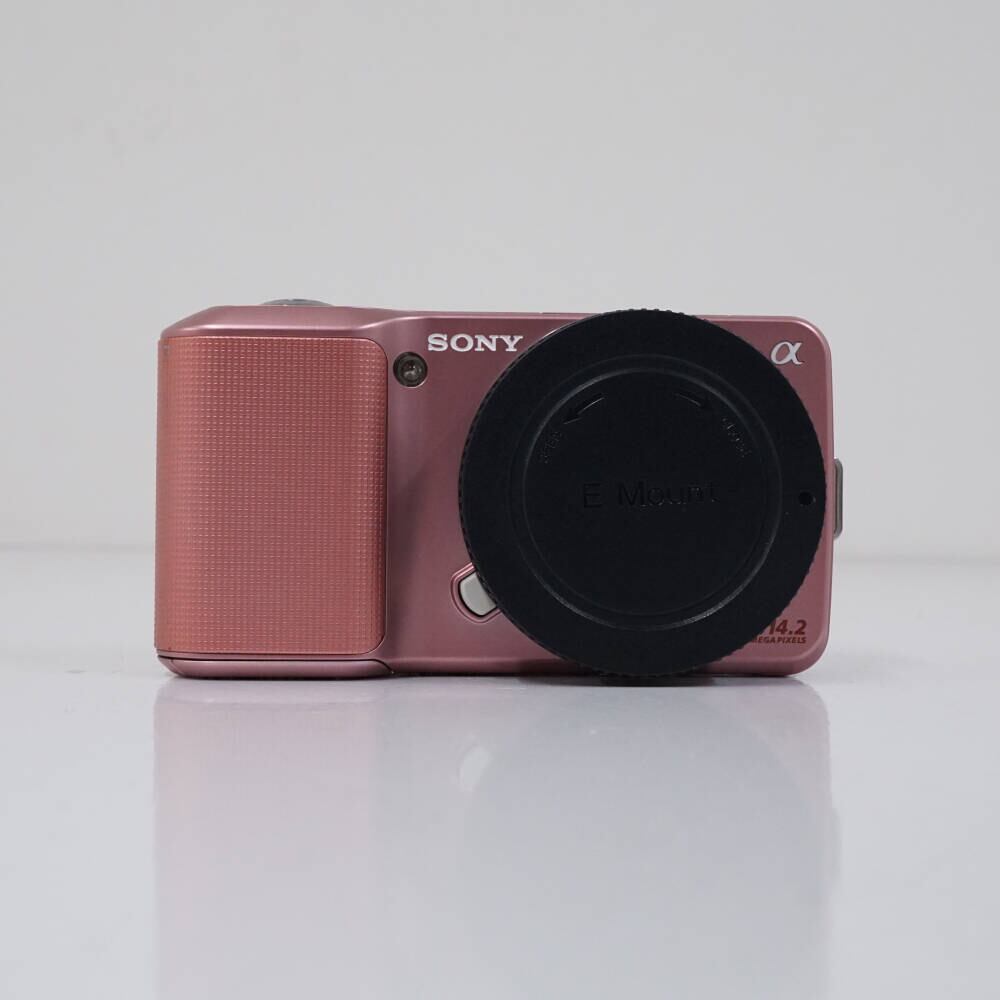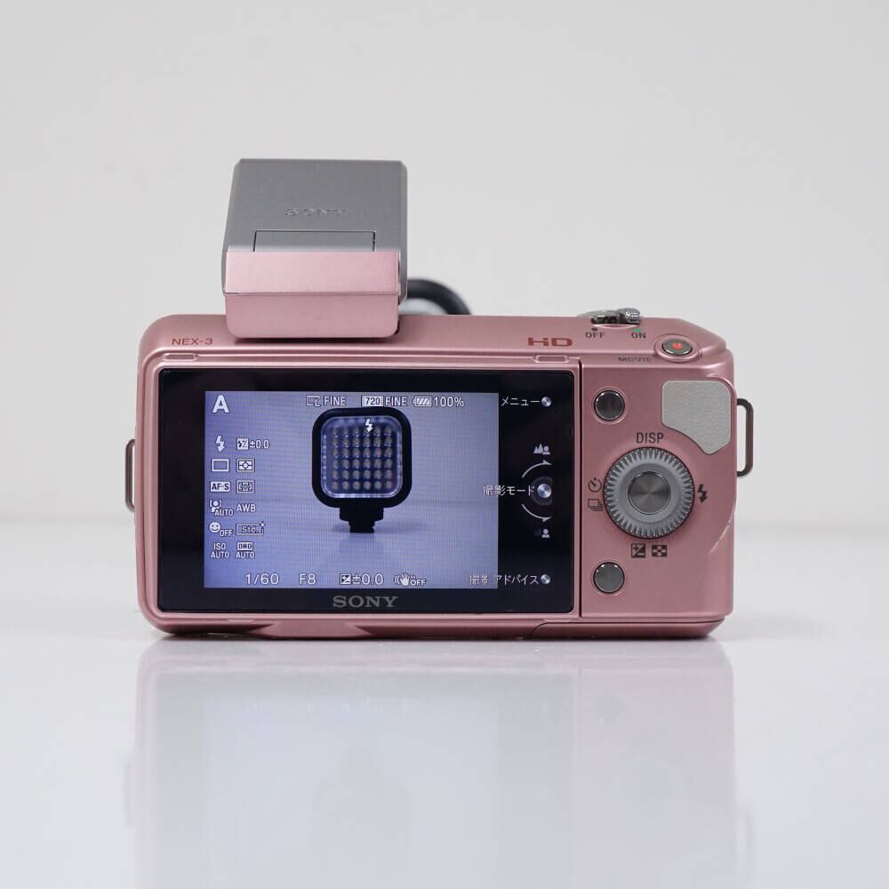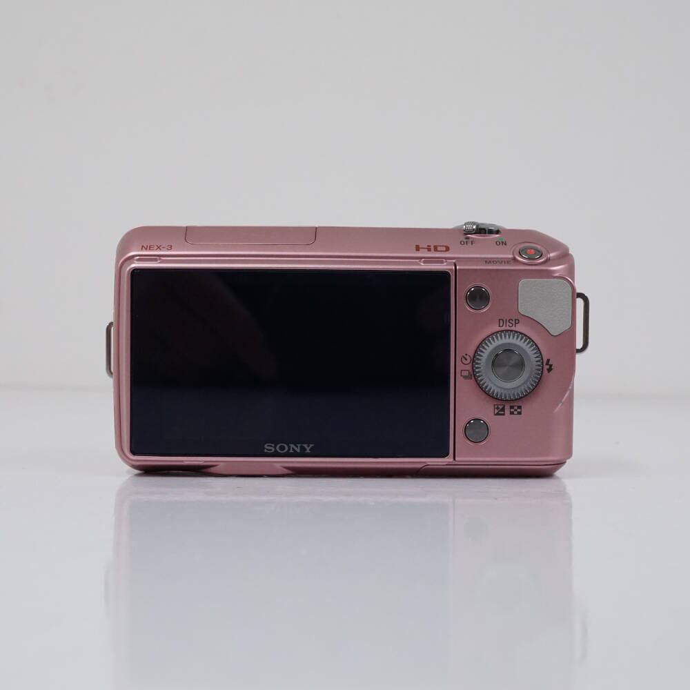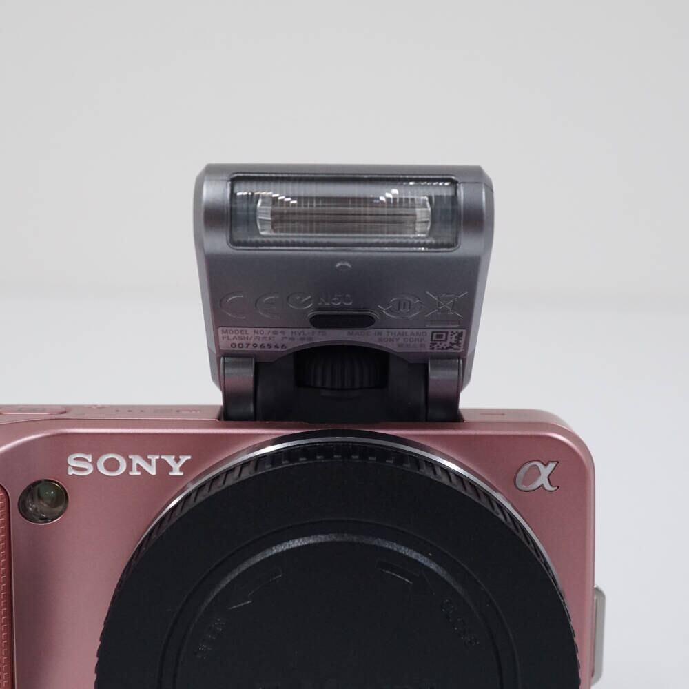 SONY NEX-3 ミラーレスカメラ USED美品 ソニー APS-C Eマウント ピンク ボディ 外付けストロボ付き 薄型軽量コンパクト 完動品 CE5058
