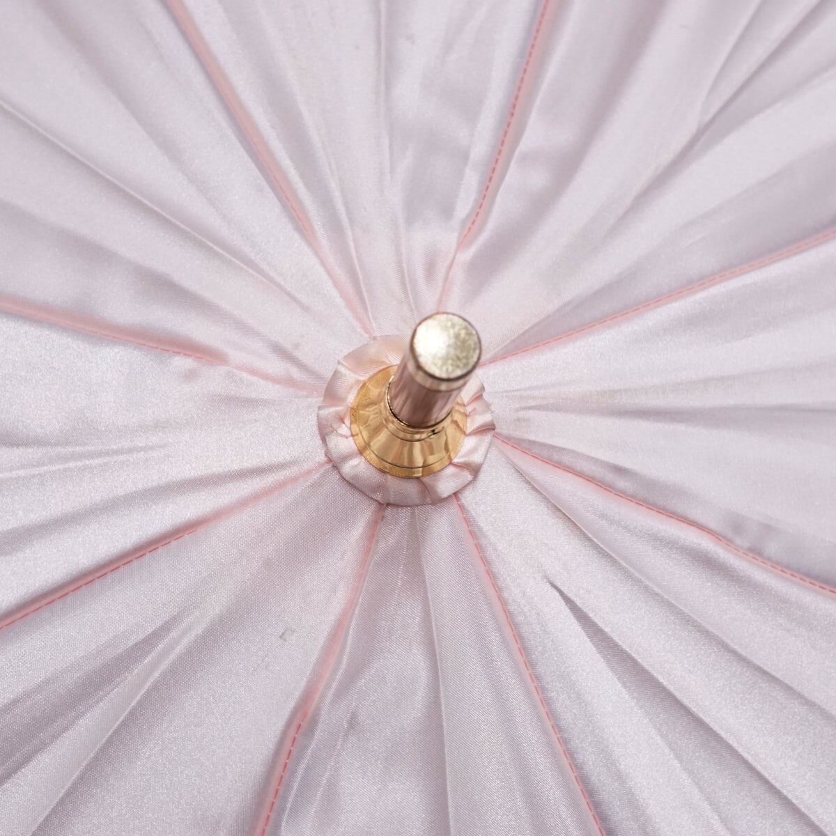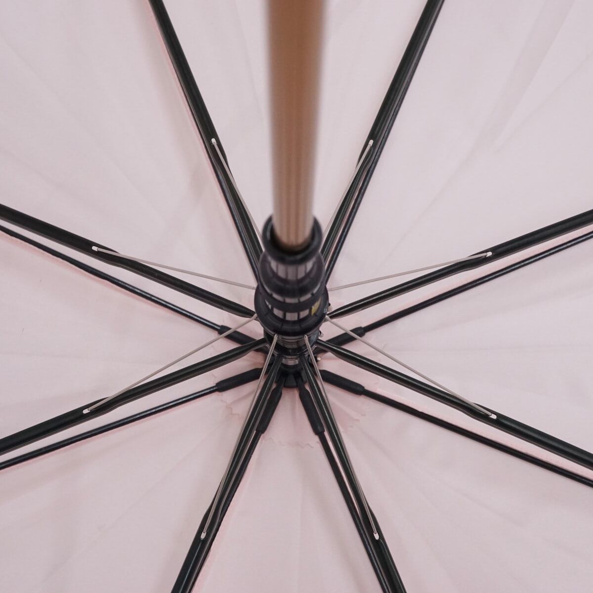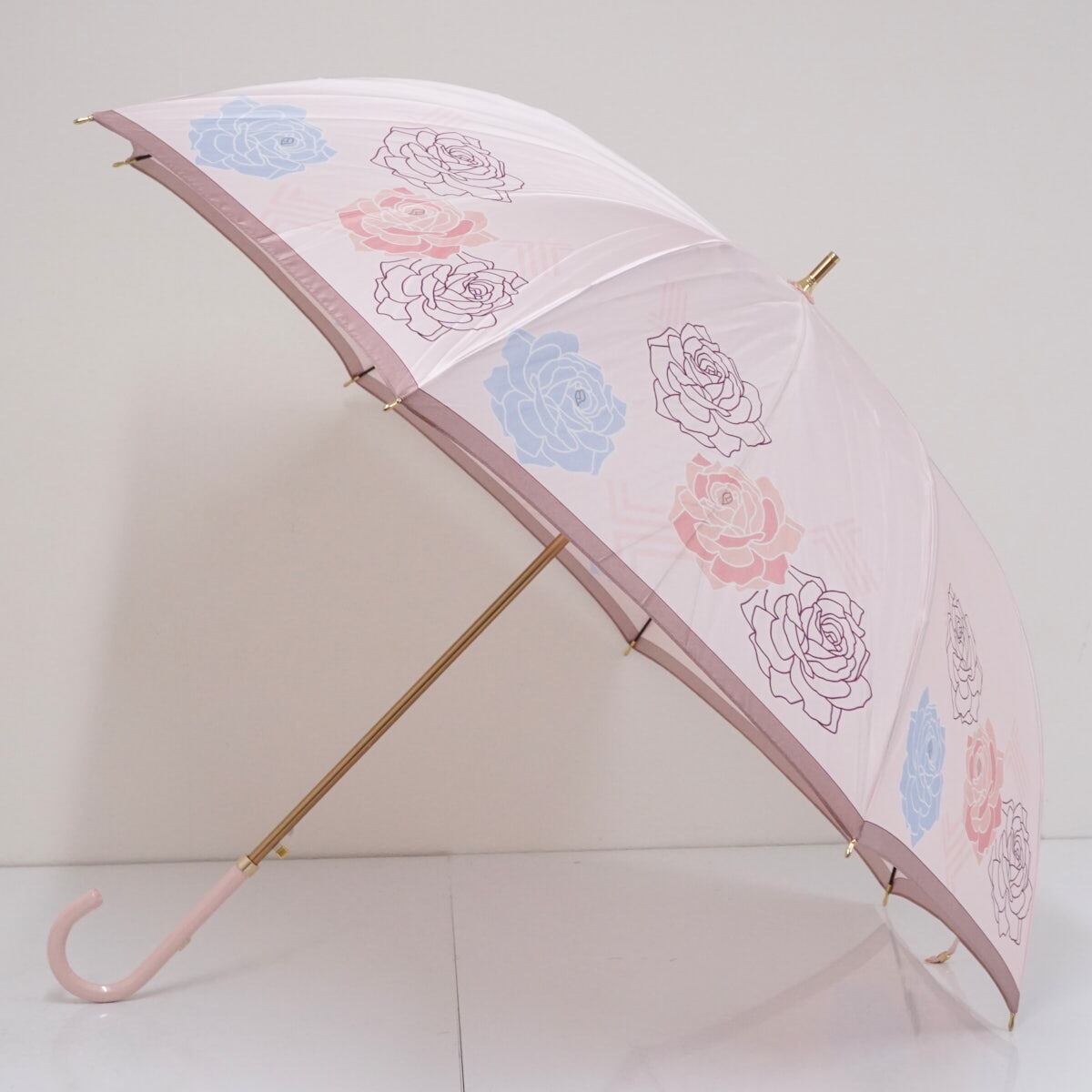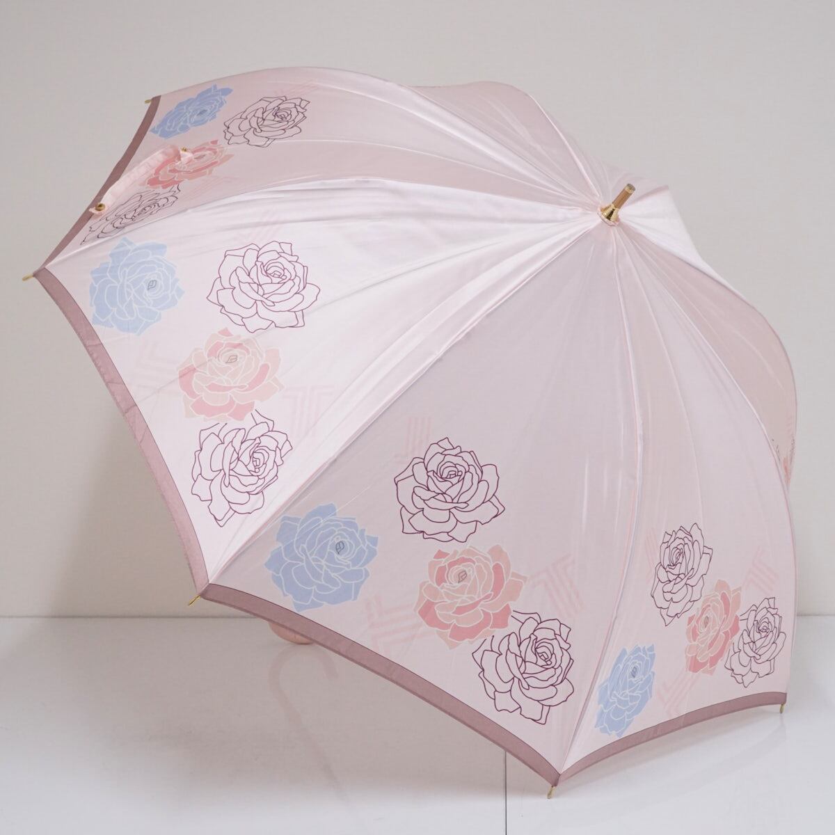 光沢のあるライトピンクの生地に、ローズとランバンのロゴマークをデザインした「ランバンコレクション」の傘です。