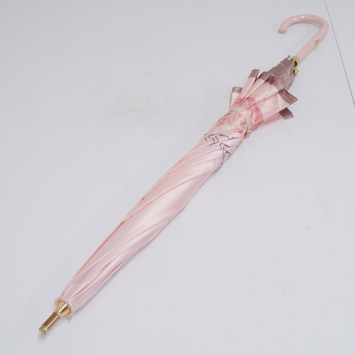 傘 LANVIN COLLECTION ランバンコレクション USED美品 ピンク ローズ ロゴ 高級 ジャンプ 60cm S1991