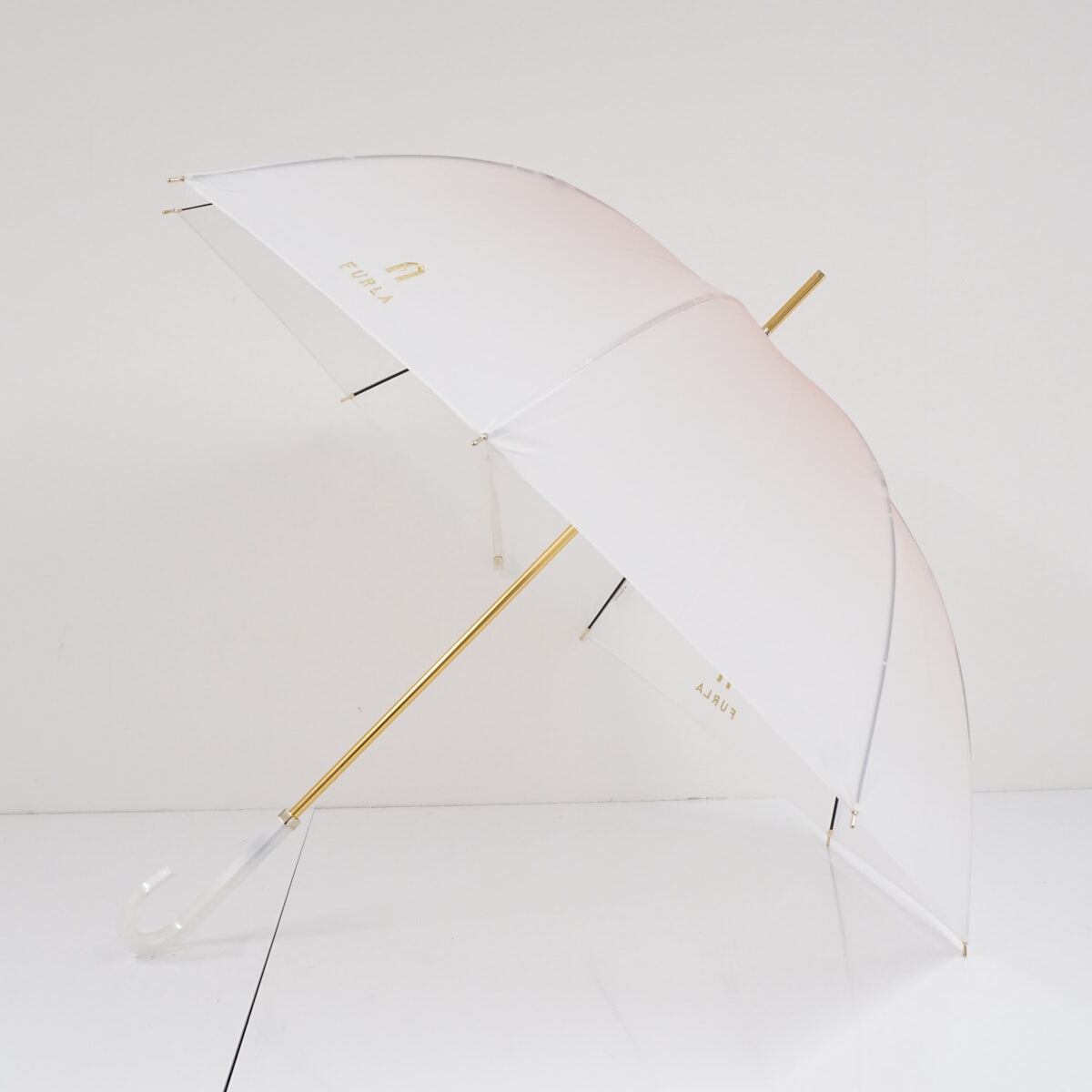 FURLA フルラ 傘 USED美品 ミルキーグラデーション アーチロゴ ジャンプ ビニール傘 60cm S1980