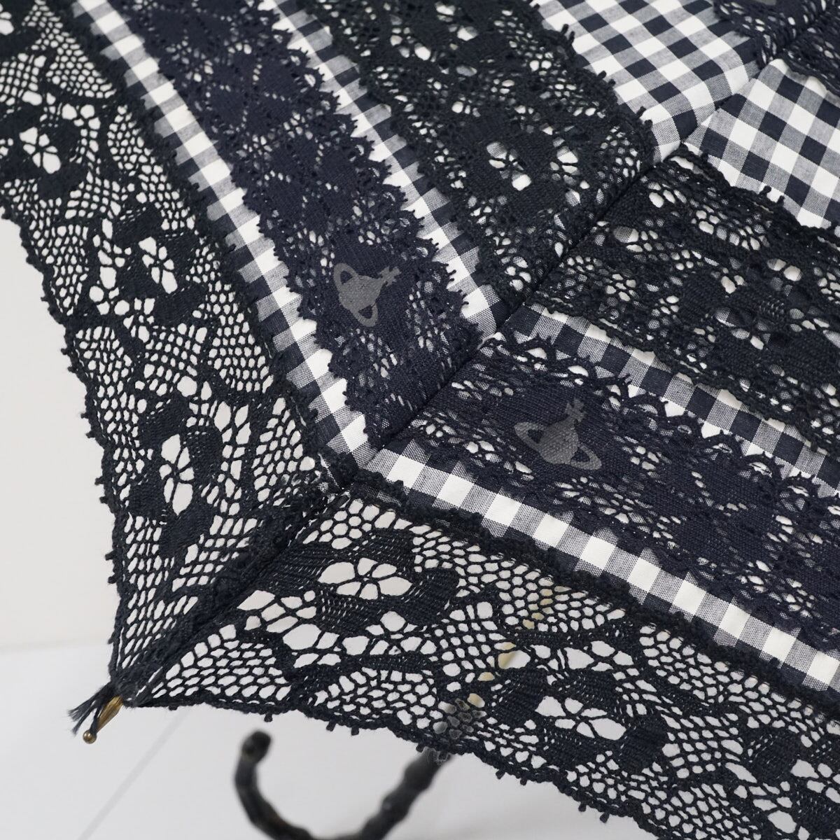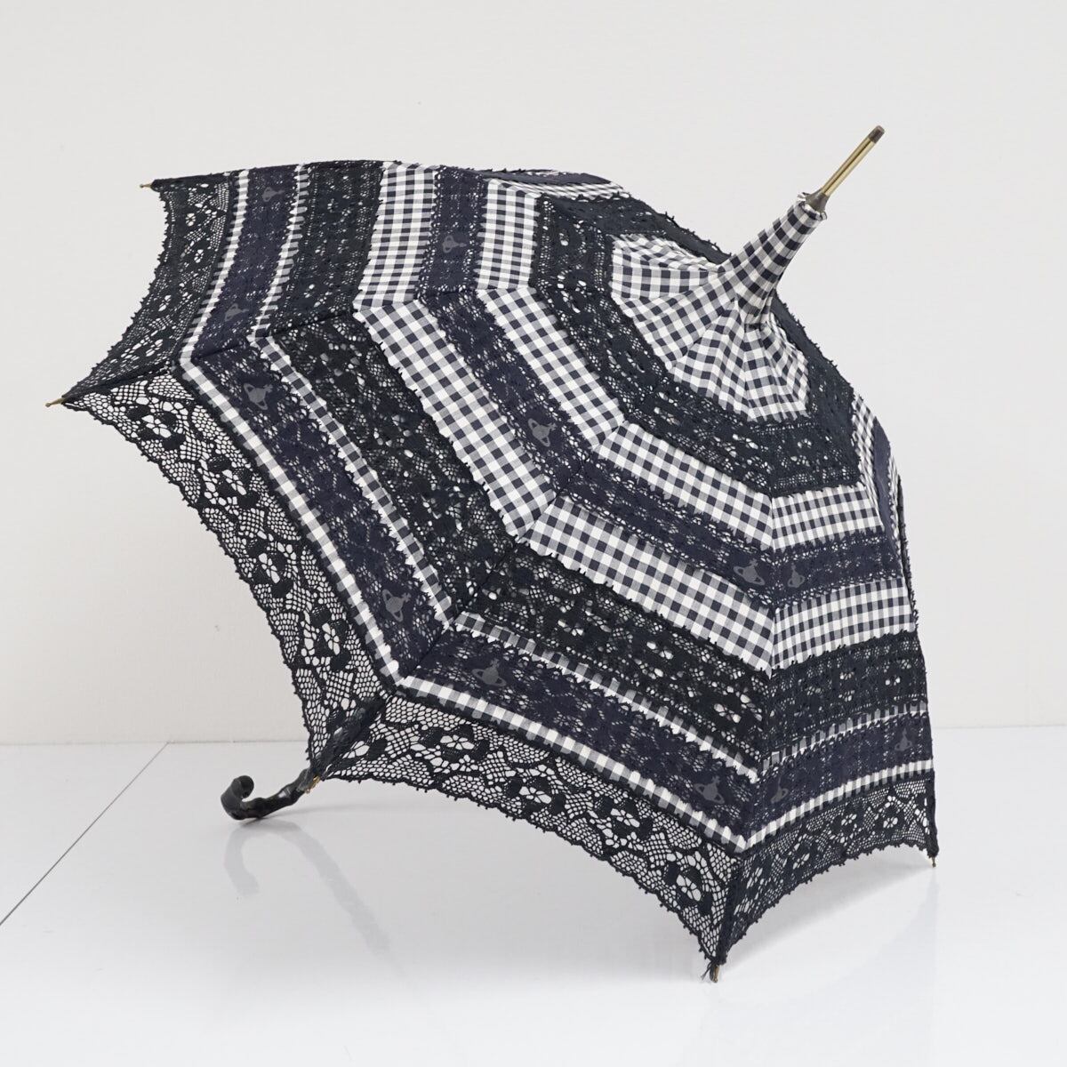日傘 Vivienne Westwood ヴィヴィアンウエストウッド USED品 パゴダ チェック レース UV 47cm KR S2002