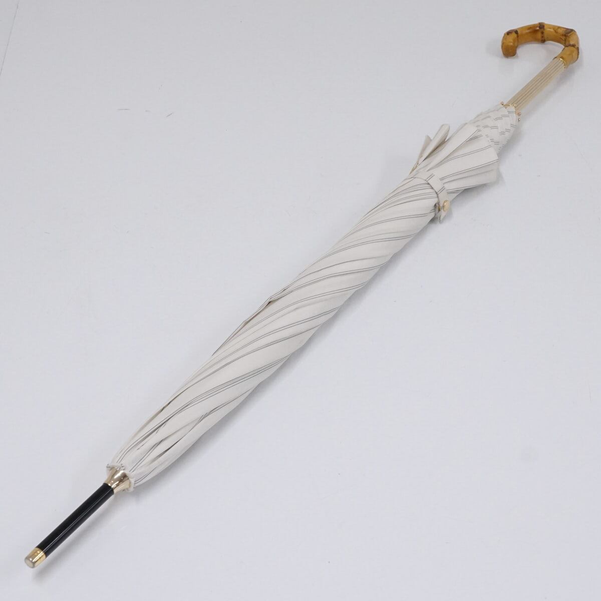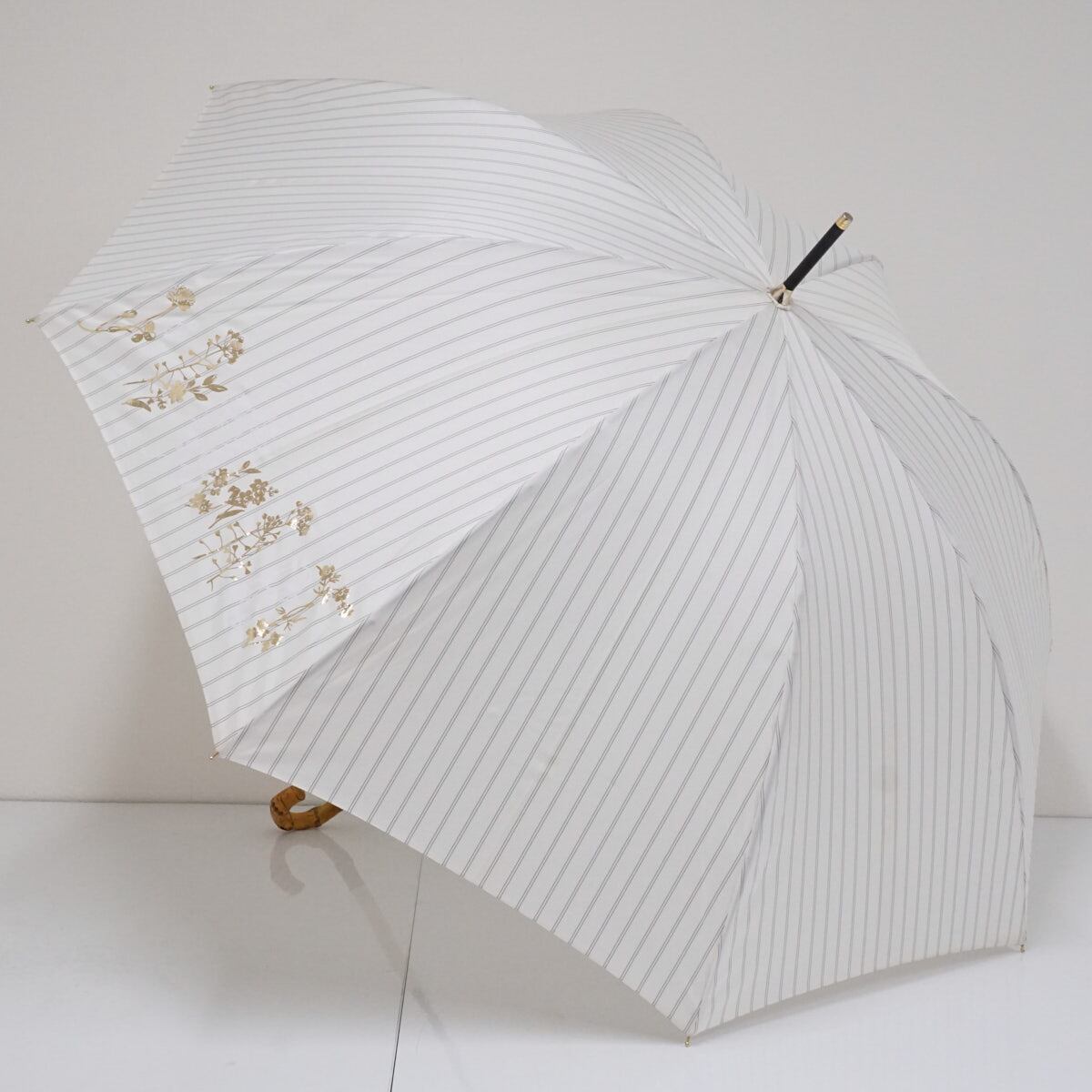 傘 JILLSTUART ジルスチュアート USED美品 雨傘 フラワー 箔プリント オフホワイト グラス骨 60cm A2007