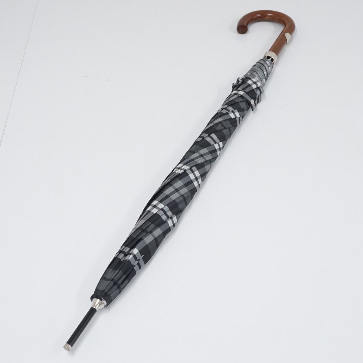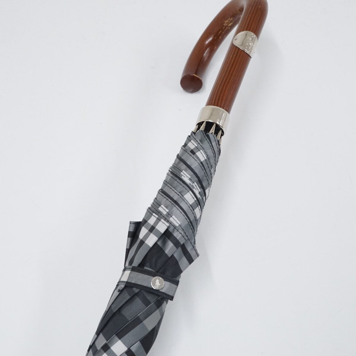 傘 Polo Ralph Lauren ポロラルフローレン USED美品 メンズ チェック ポロ刺繍 高級 ブランド 木製手元 大判 65cm S2012