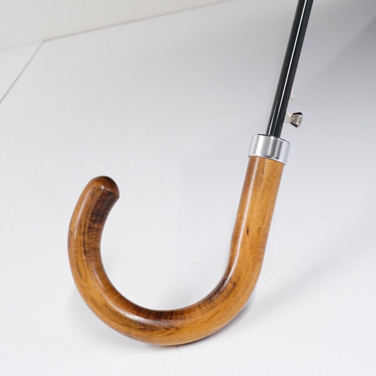 ハンドルには柔らかく温かみのある天然木を使用し、生地と相まって高級感のある仕上がりになっています。