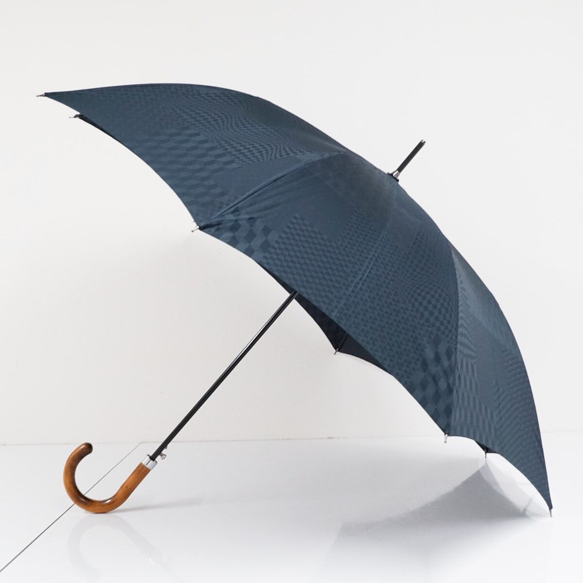 傘 前原光榮商店 USED美品 UJ-plus ユージェイ 市松 アーガイル グリーニッシュブルー ジャンプ 大判 日本製 皇室御用達 紳士傘 65cm S2001