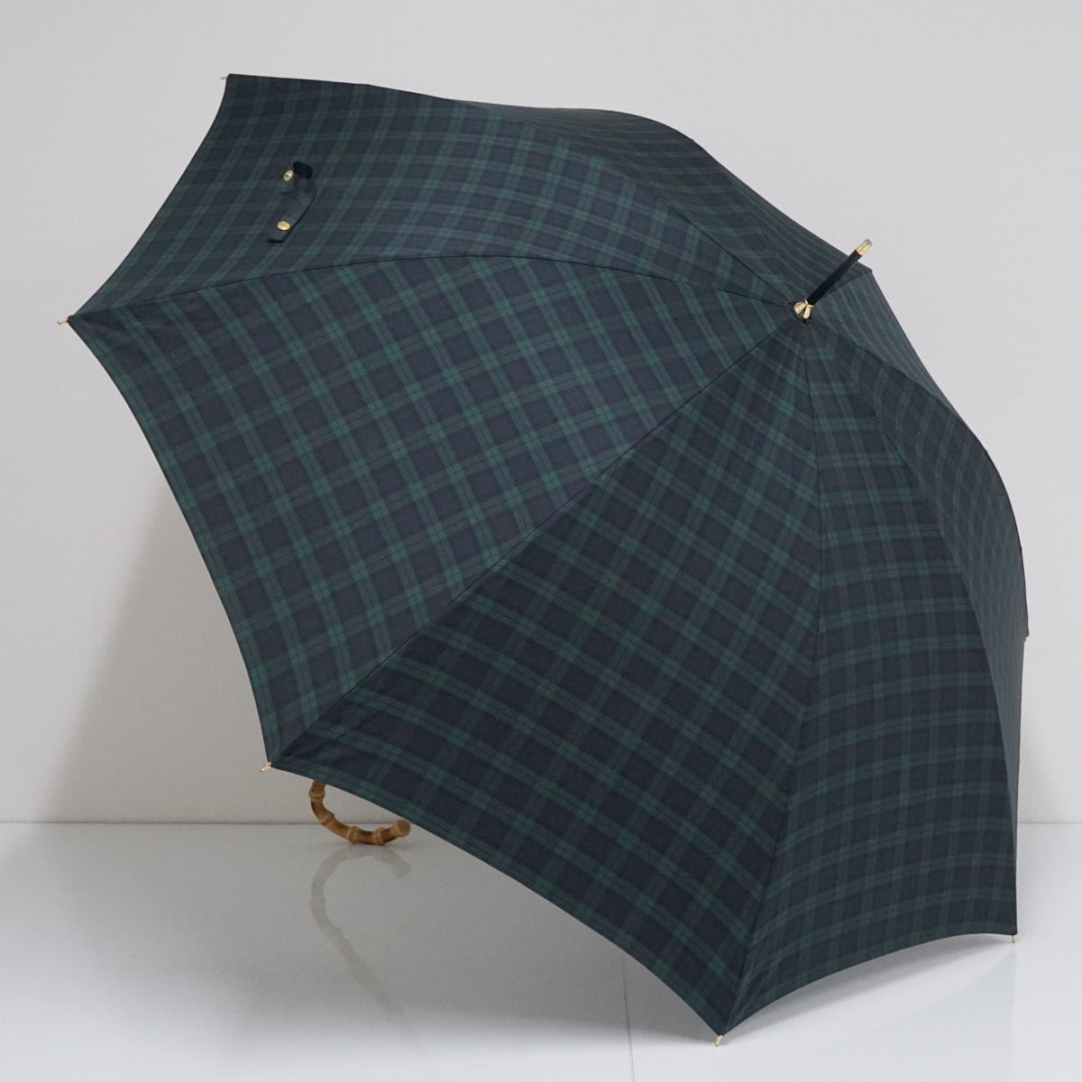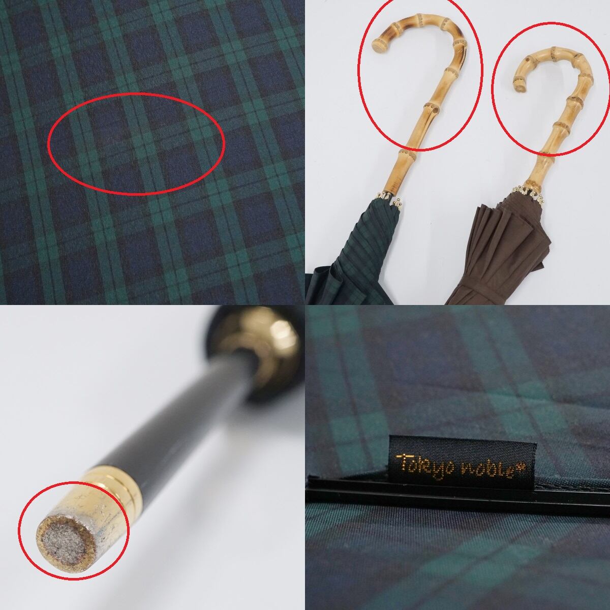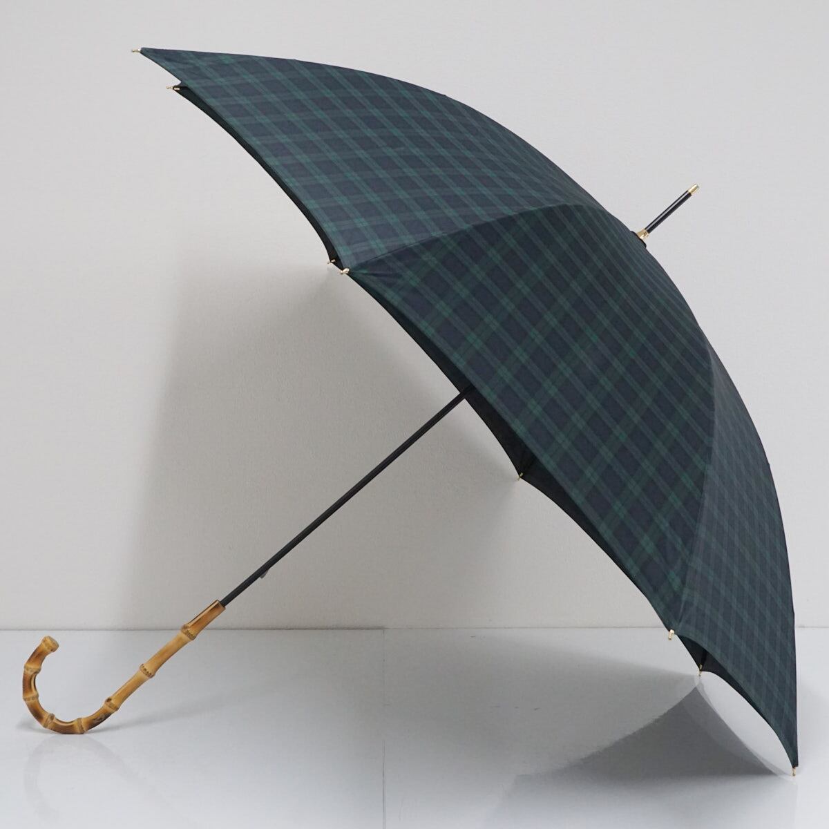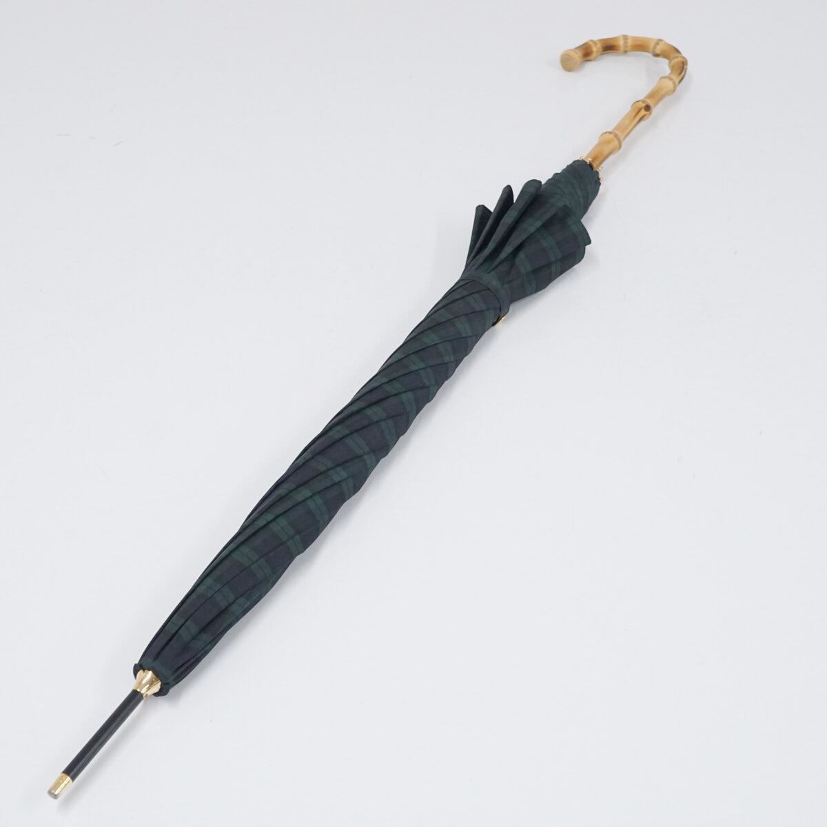 傘 Tokyo noble 東京ノーブル USED美品 チェック グリーン系 寒竹手元 60cm A2016