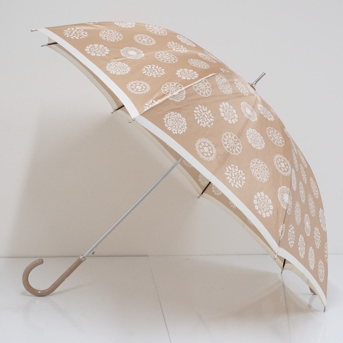 傘 mila schon ミラショーン USED美品 デフォルメフラワー ピンクベージュ レディース ジャンプ 60cm A2023