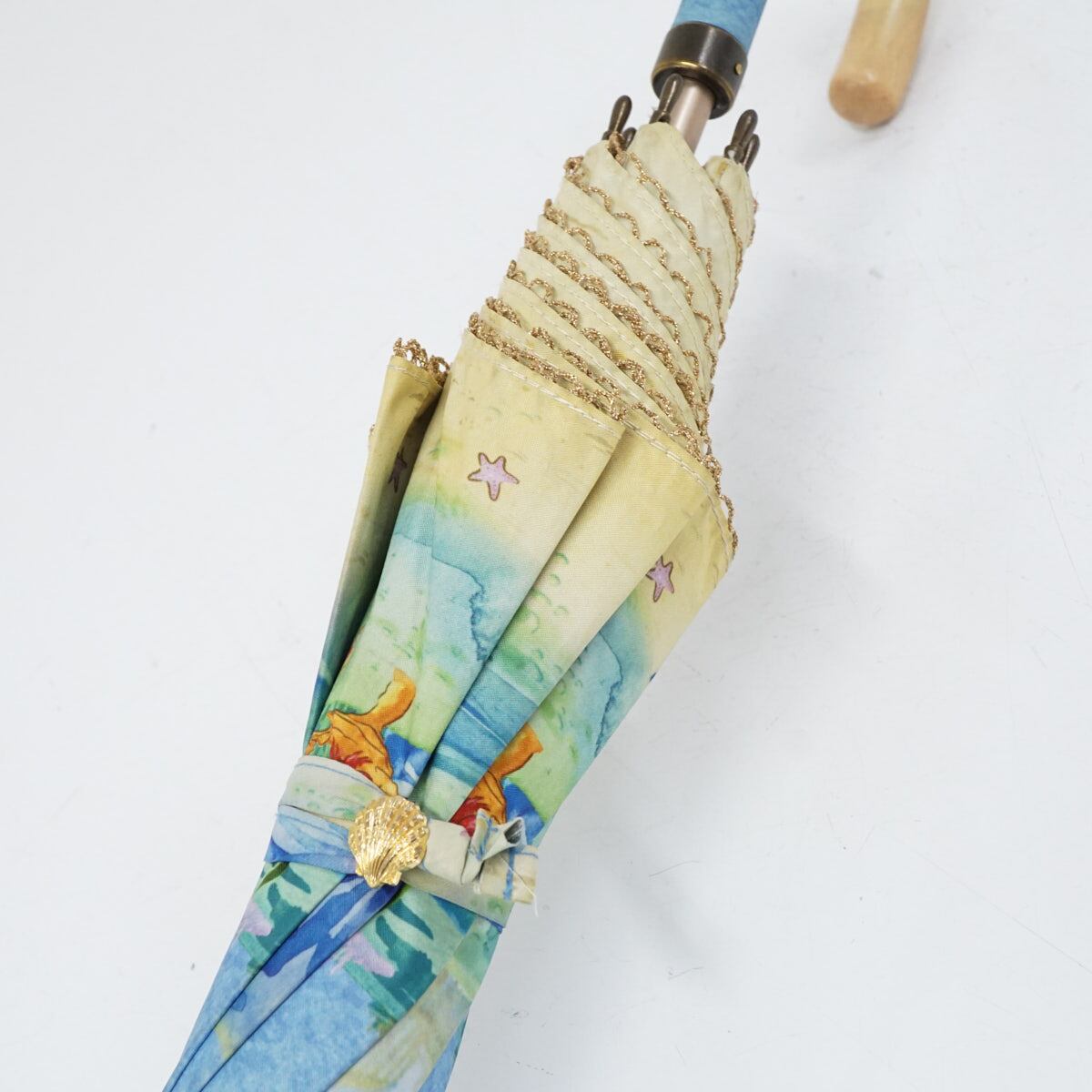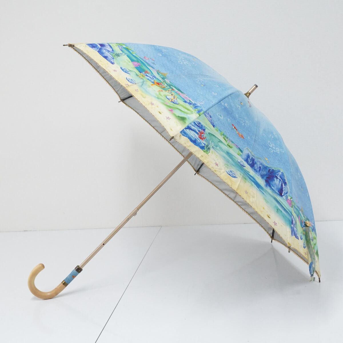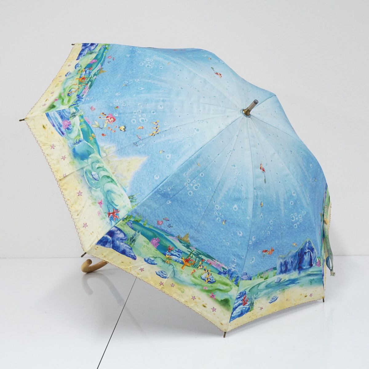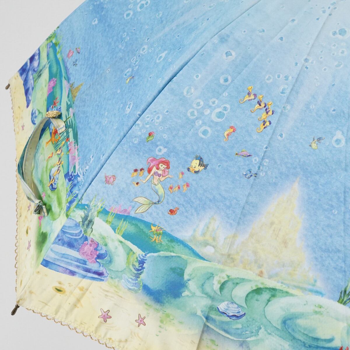 日傘 リトルマーメイド 小川 ラインドロップス USED品 晴雨兼用 アリエル ディズニー UV 遮光 グラス骨 50cm KR A2030
