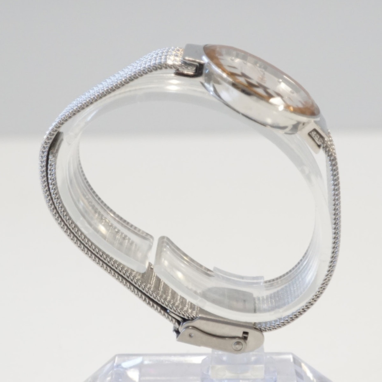 スカーゲン定番のメッシュベルトを採用し、インデックスにはスワロフスキーがキラリと輝きます。