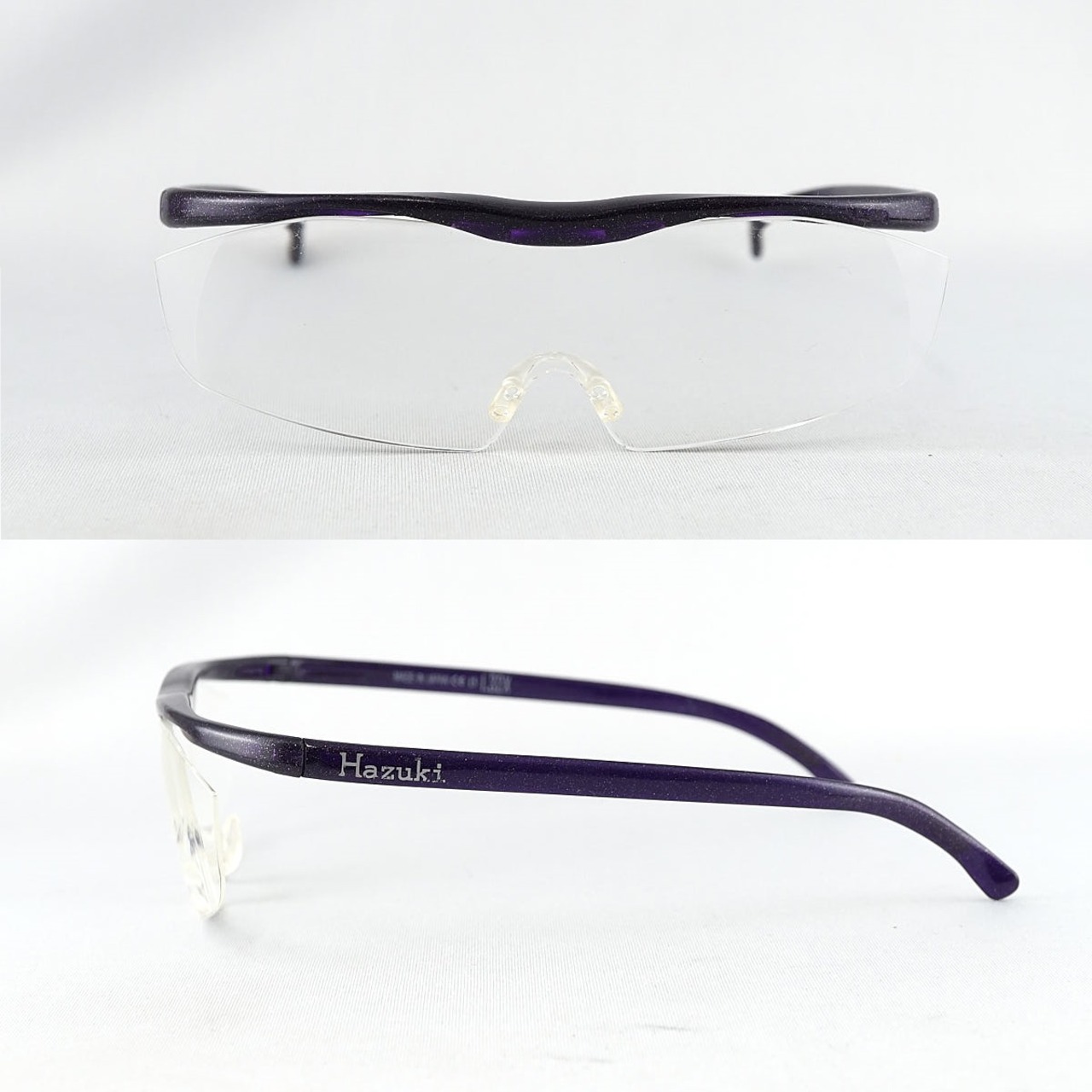Hazuki ハズキルーペ 拡大鏡 USED品 1.32倍 日本製 ラージ クリアレンズ パープル ラメ UV 重ねがけ X6229
