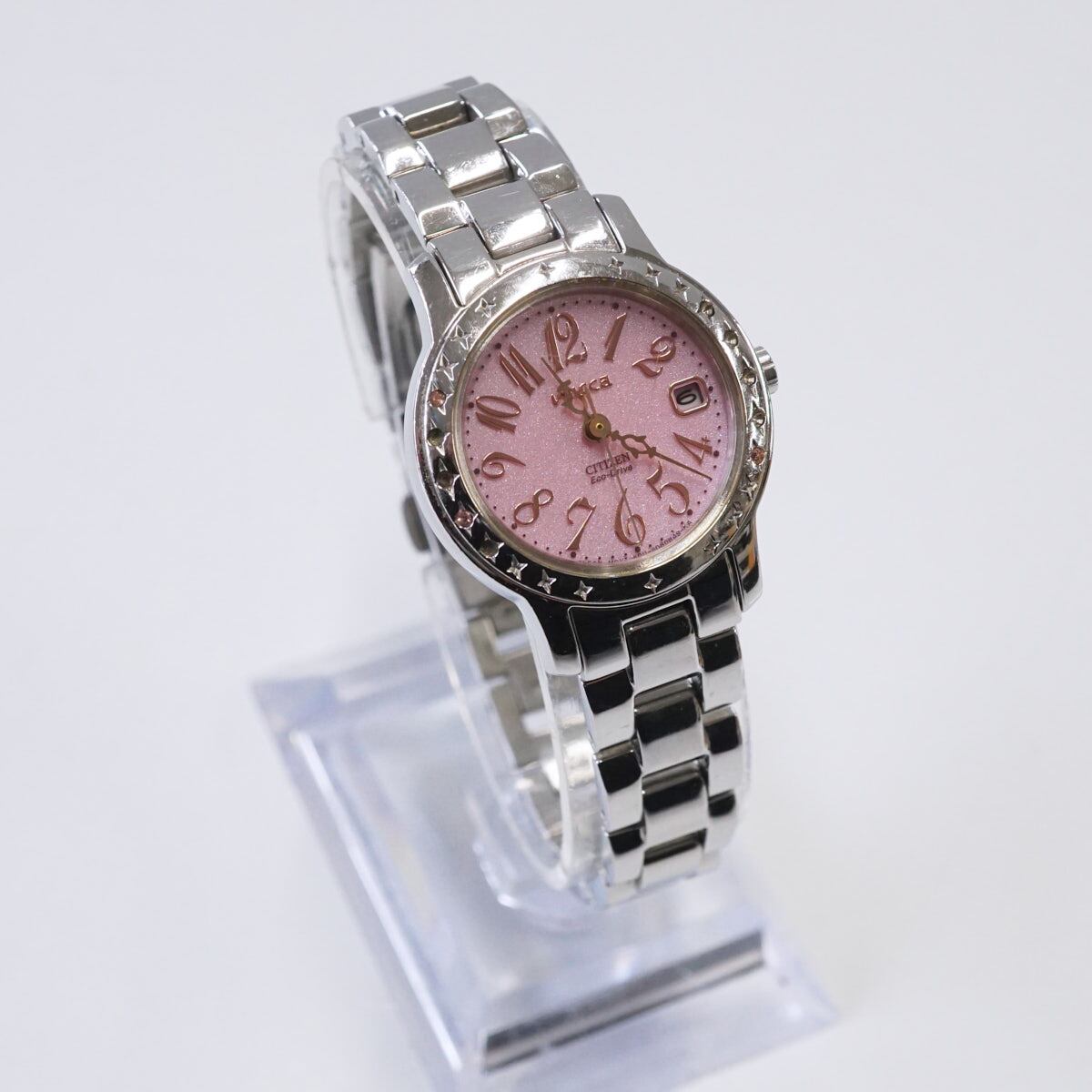 CITIZEN wicca シチズン ウィッカ 腕時計 USED品 ピンク ストーン ソーラー エコドライブ E011-S051983 レディース かわいい 完動品 X6181