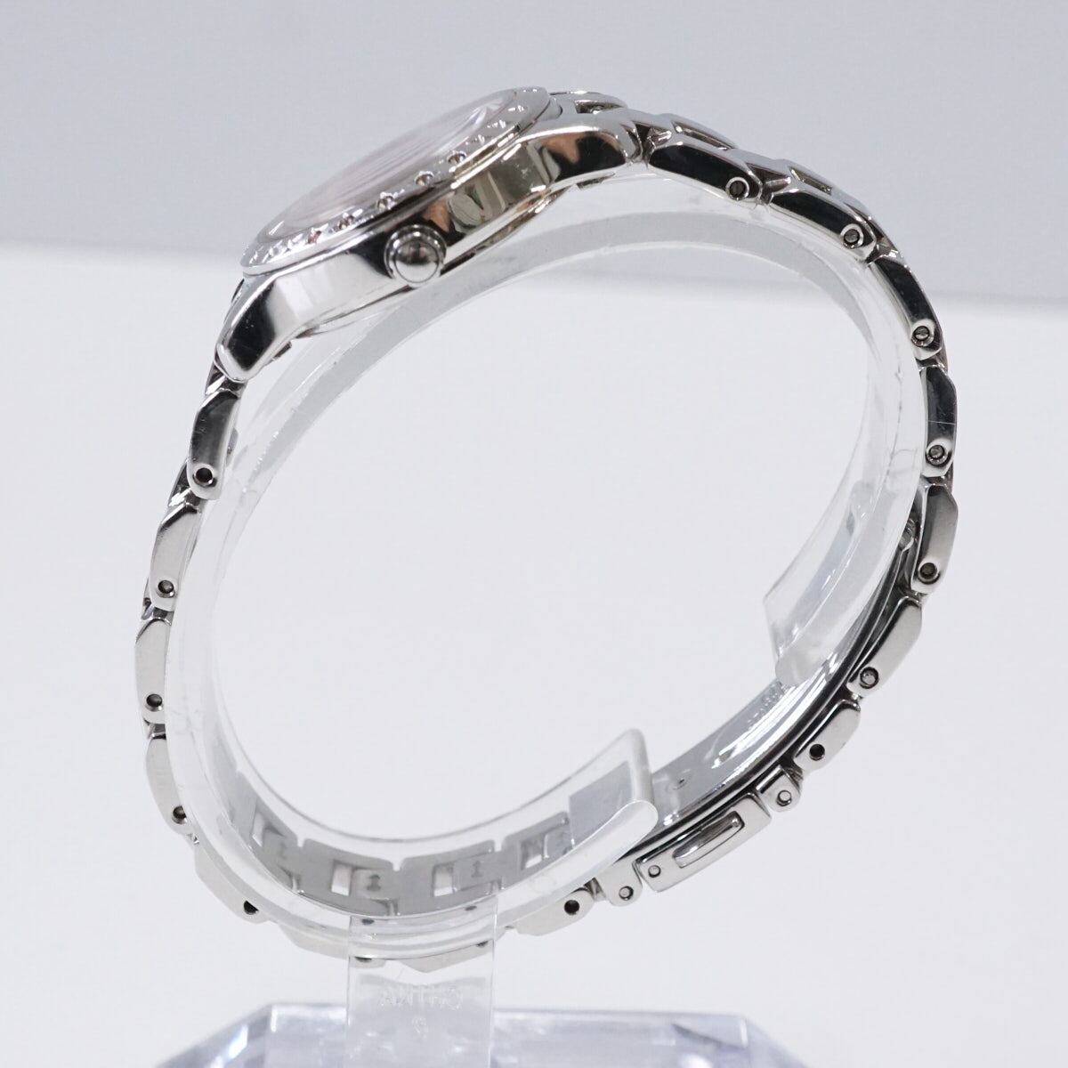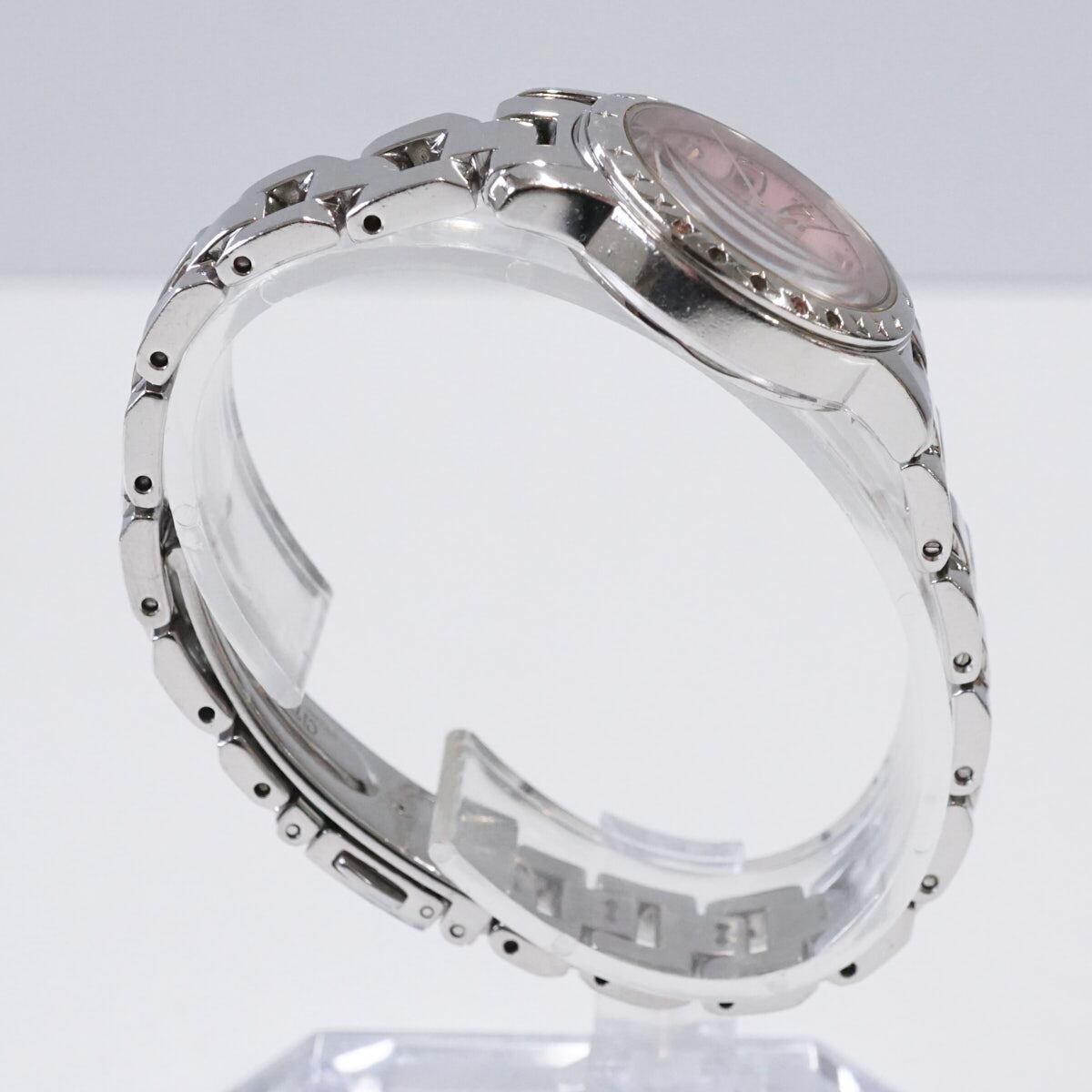 華奢なシルエットとピンクの文字盤が女性らしくかわいい一品です。