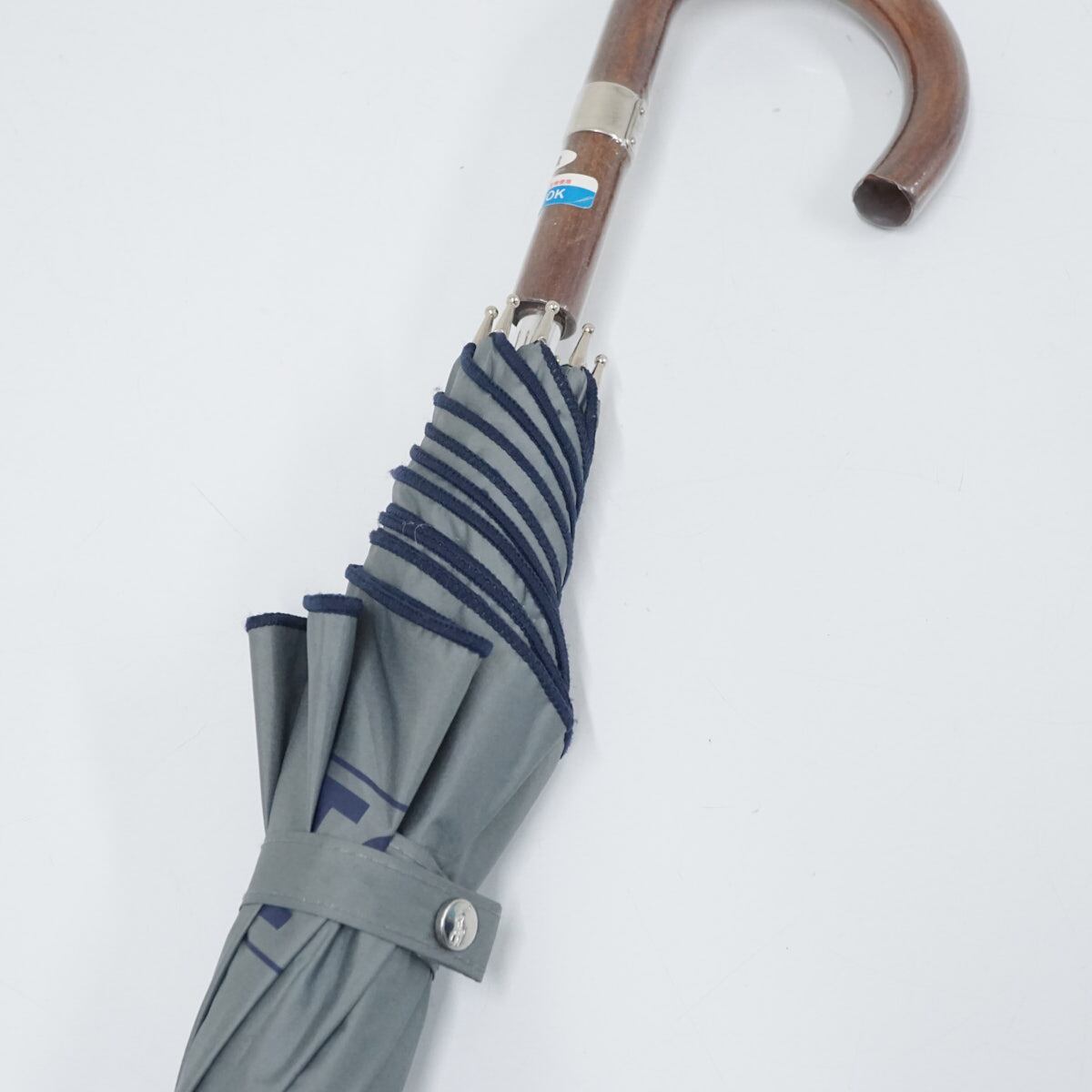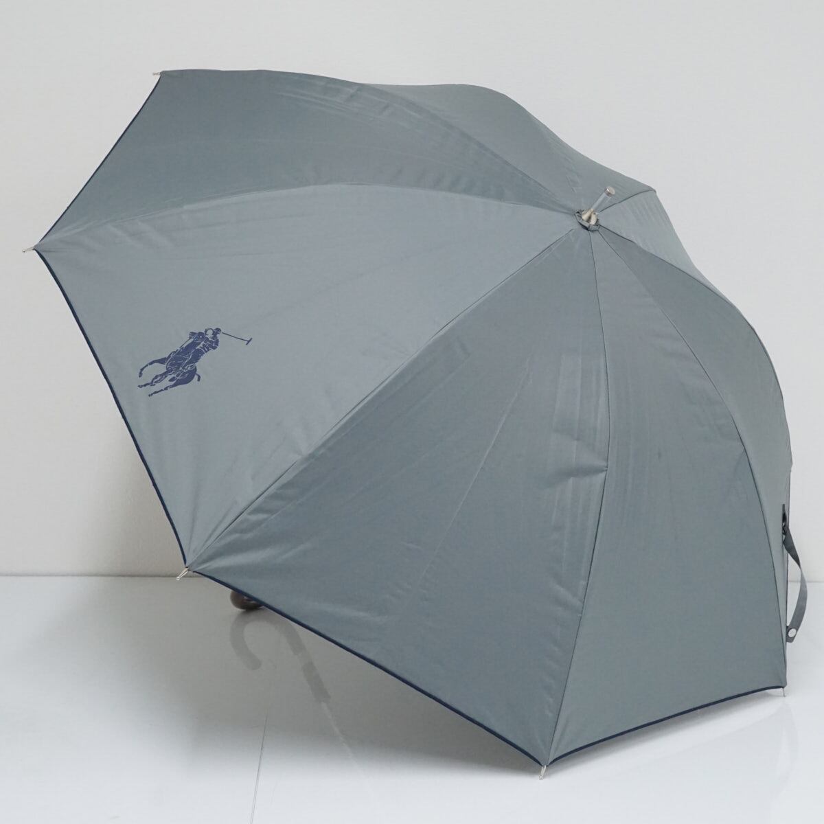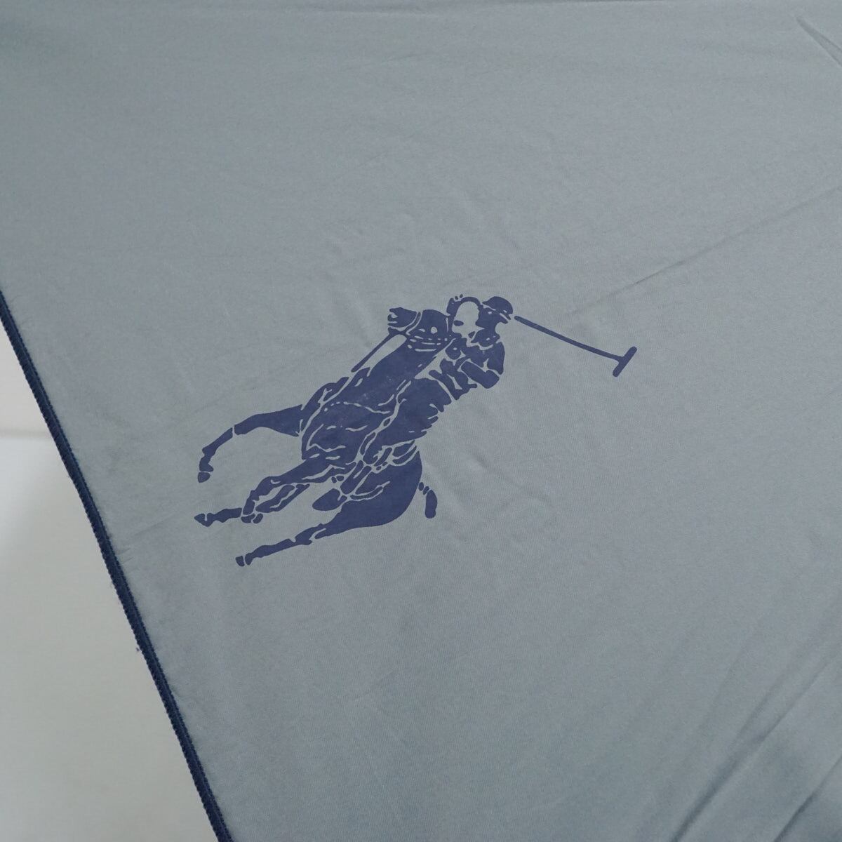 日傘 Polo Ralph Lauren ポロラルフローレン USED美品 グレー ネイビー ロゴ 晴雨兼用 UV 遮光 55cm S2036