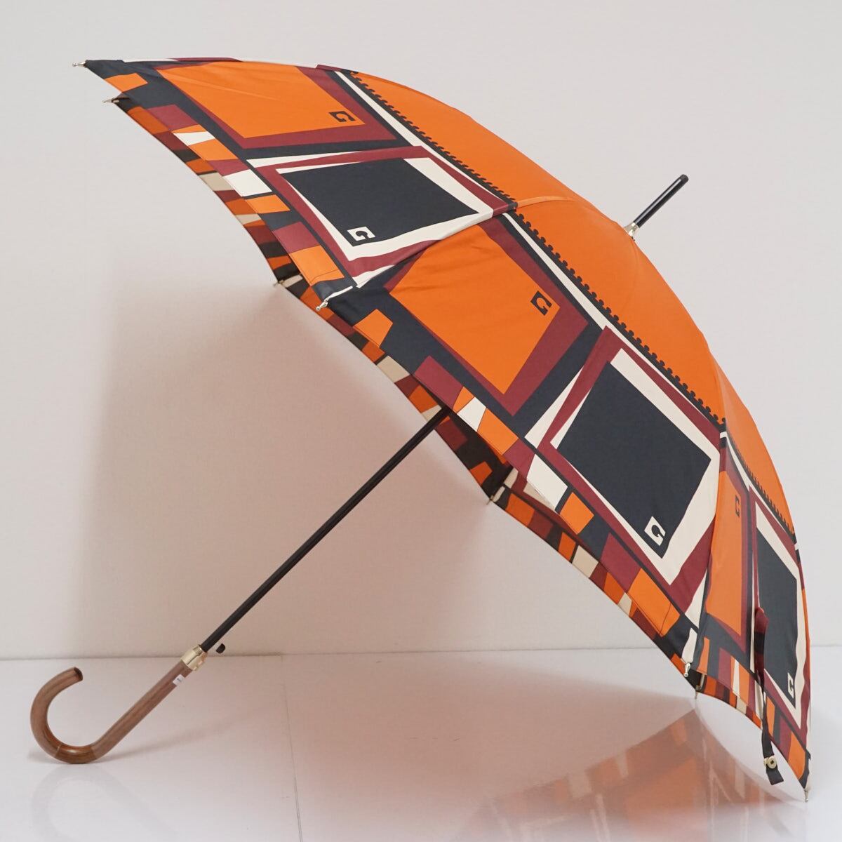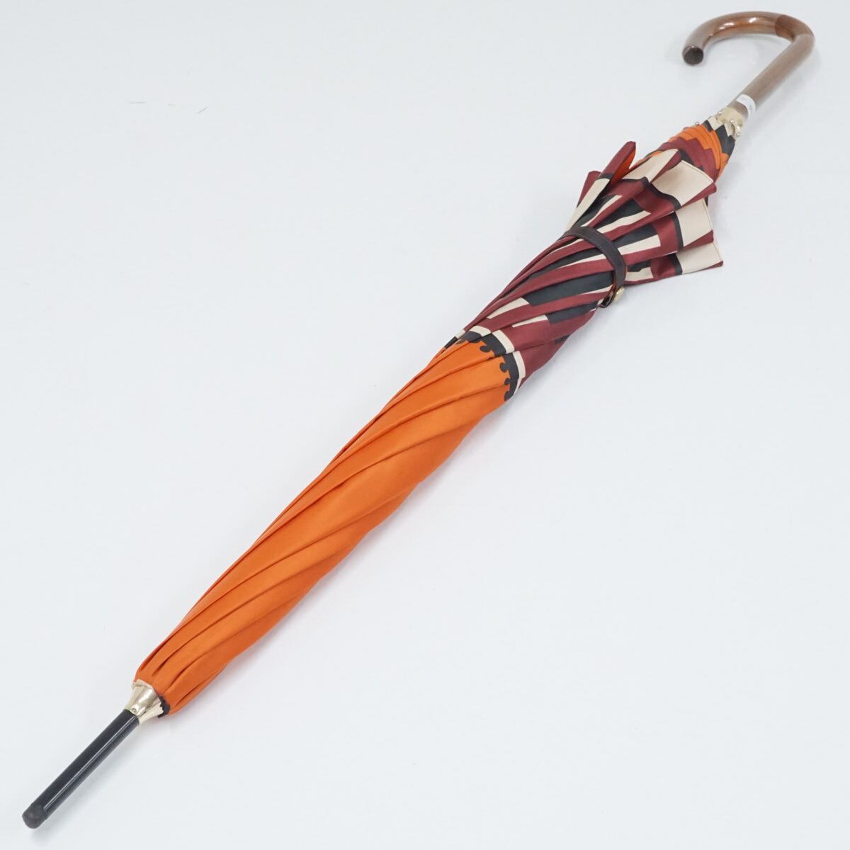 耐風傘 GHERARDINI ゲラルディーニ USED美品 オレンジ 日本製 木製手元 グラス骨 軽量 ジャンプ 60cm S2038