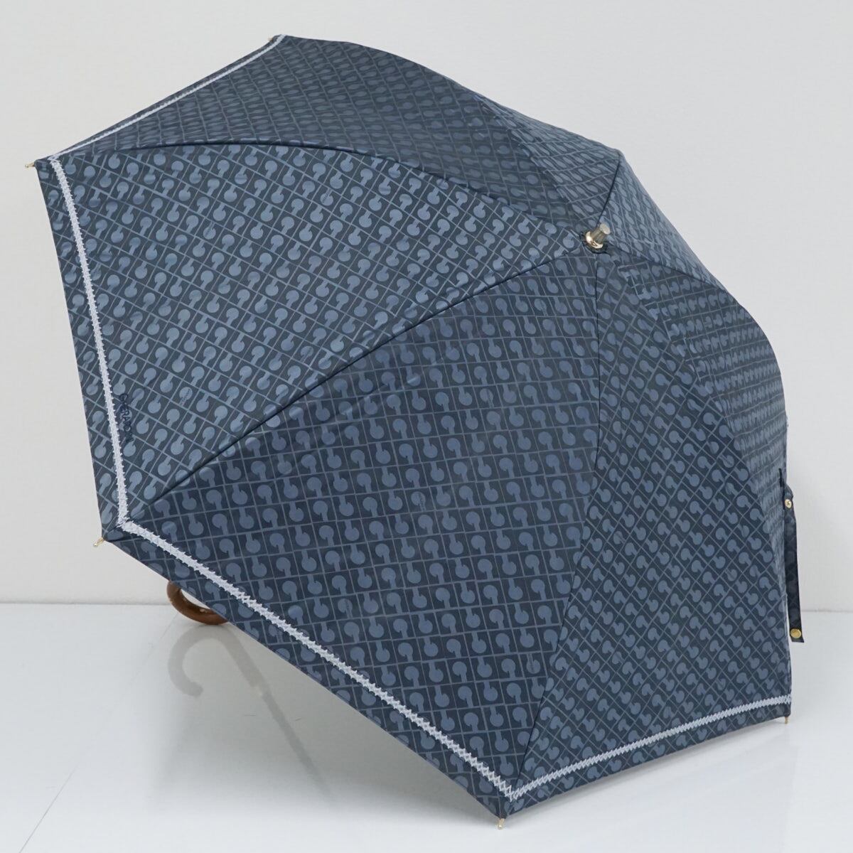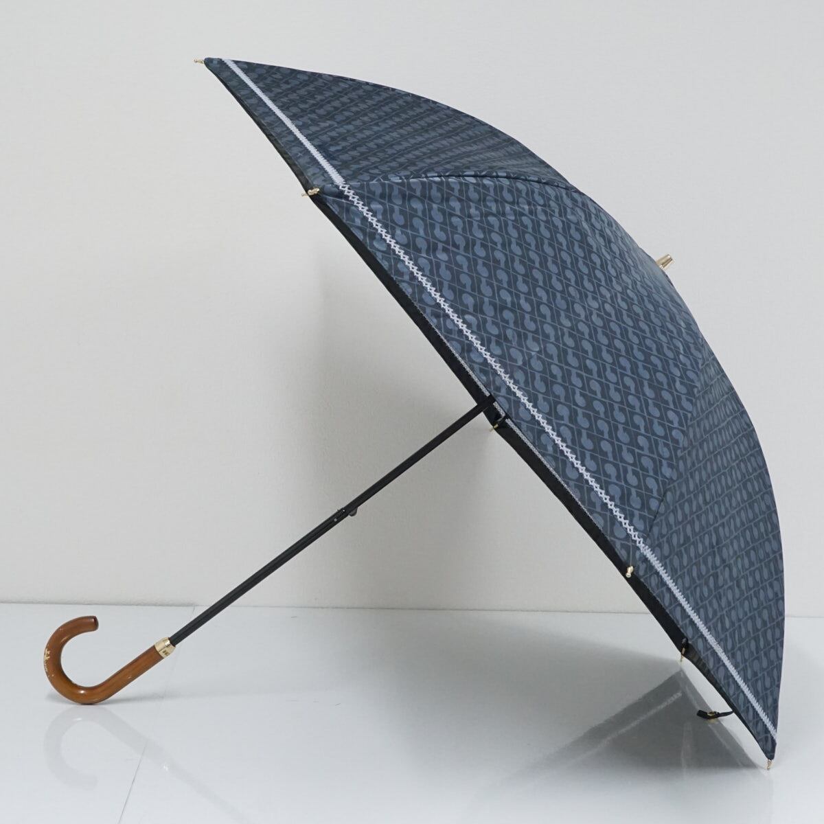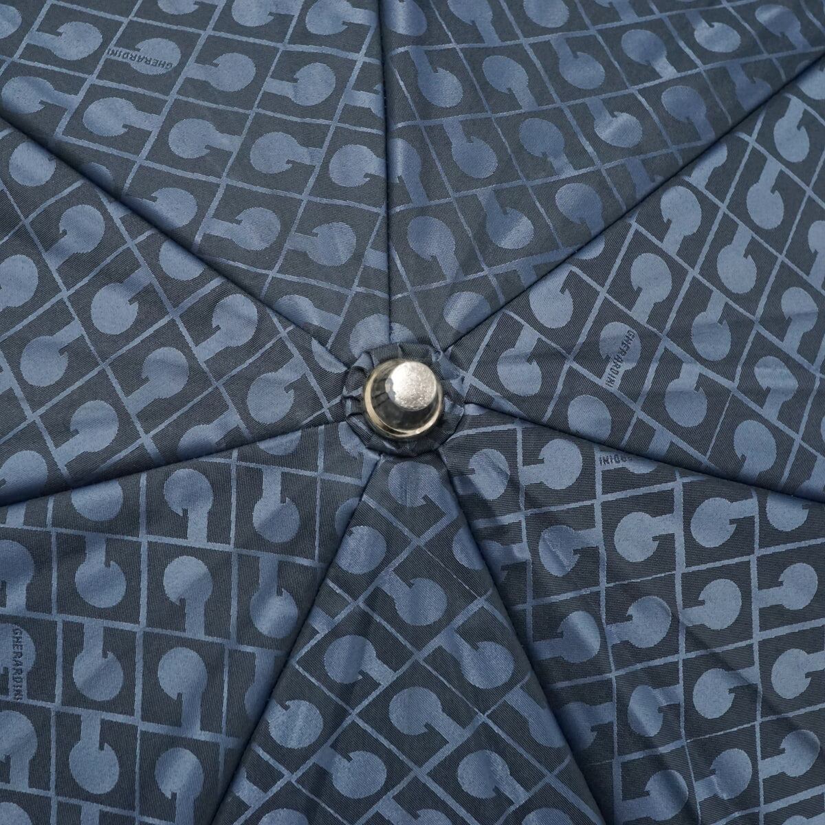 日傘 GHERARDINI ゲラルディーニ 晴雨兼用日傘 USED美品 ネイビー モノグラム ロゴ刺繍 遮光 グラス骨 軽量 50cm A2054