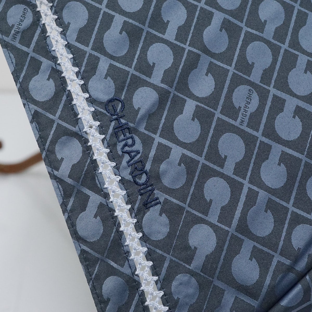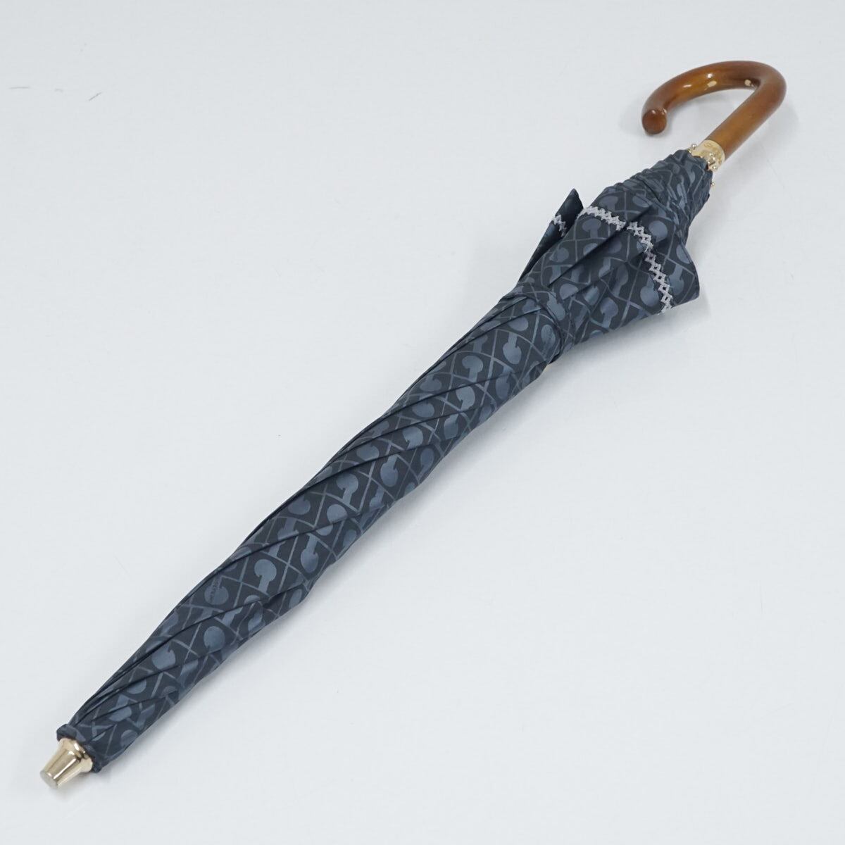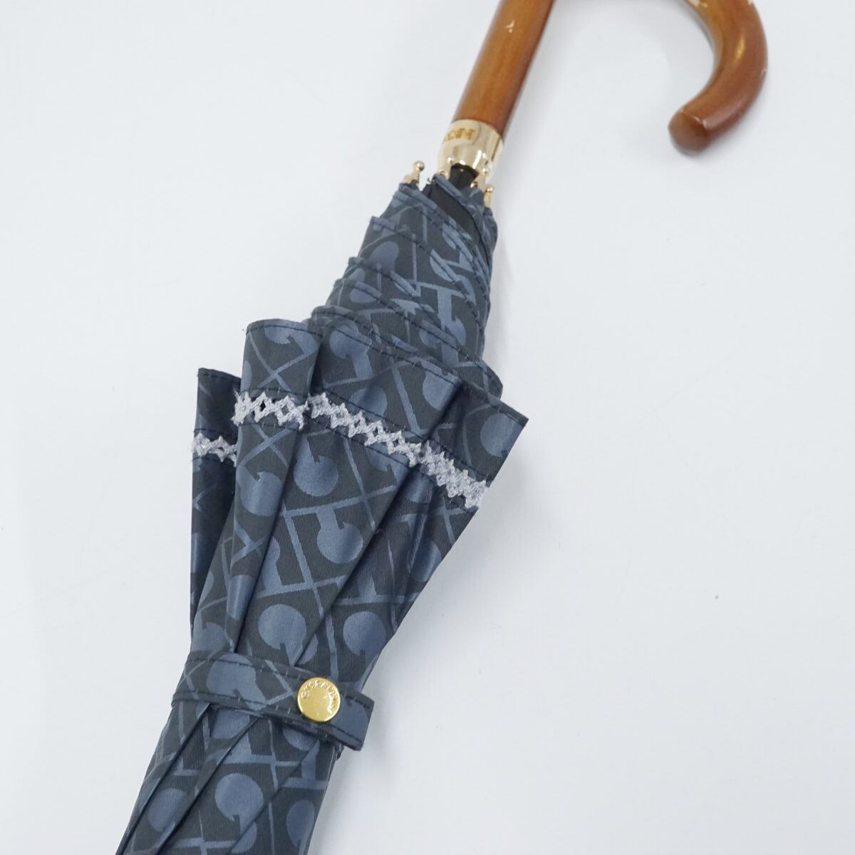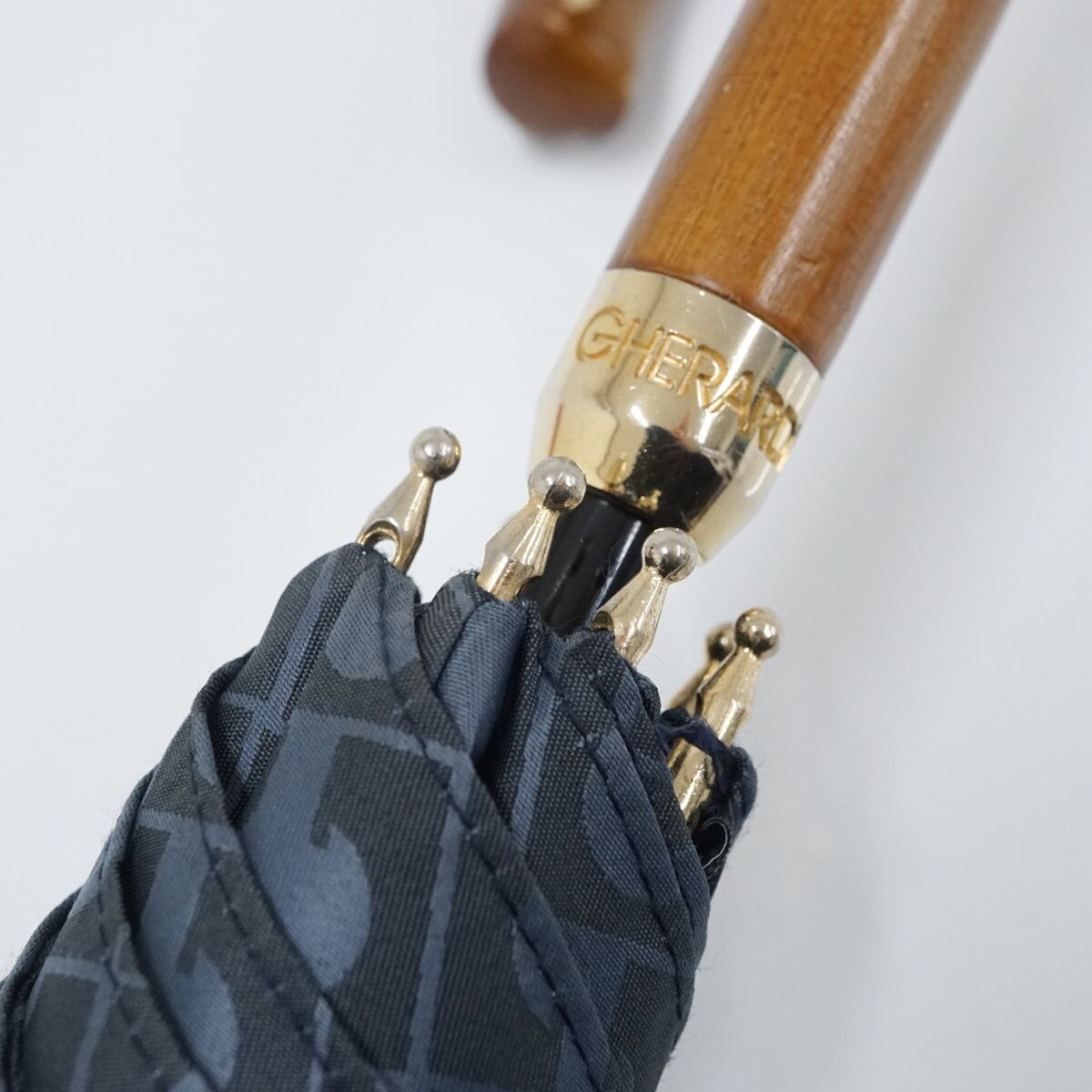 日傘 GHERARDINI ゲラルディーニ 晴雨兼用日傘 USED美品 ネイビー モノグラム ロゴ刺繍 遮光 グラス骨 軽量 50cm A2054